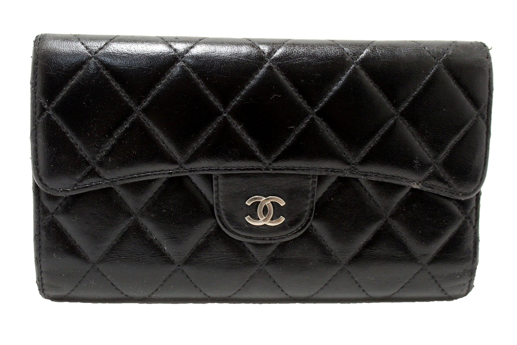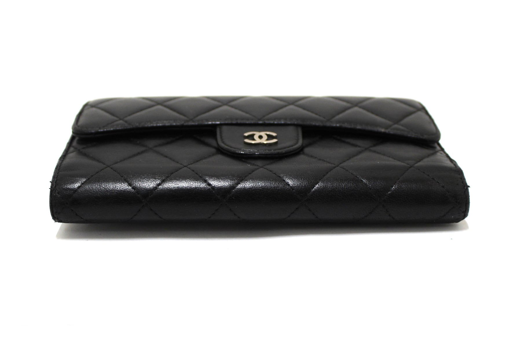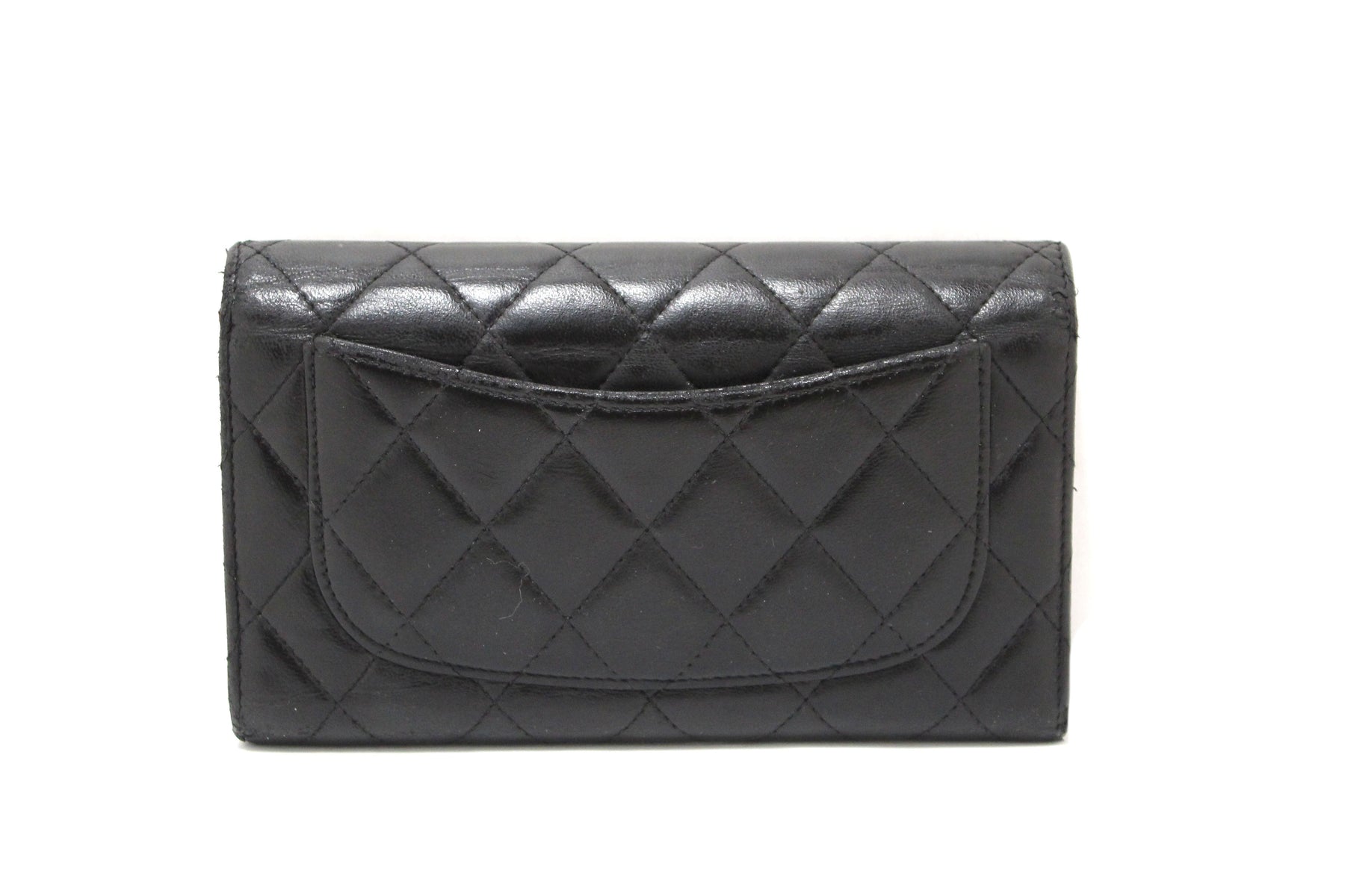 Chanel Black Quilted Lambskin Leather Trifold Flap Wallet