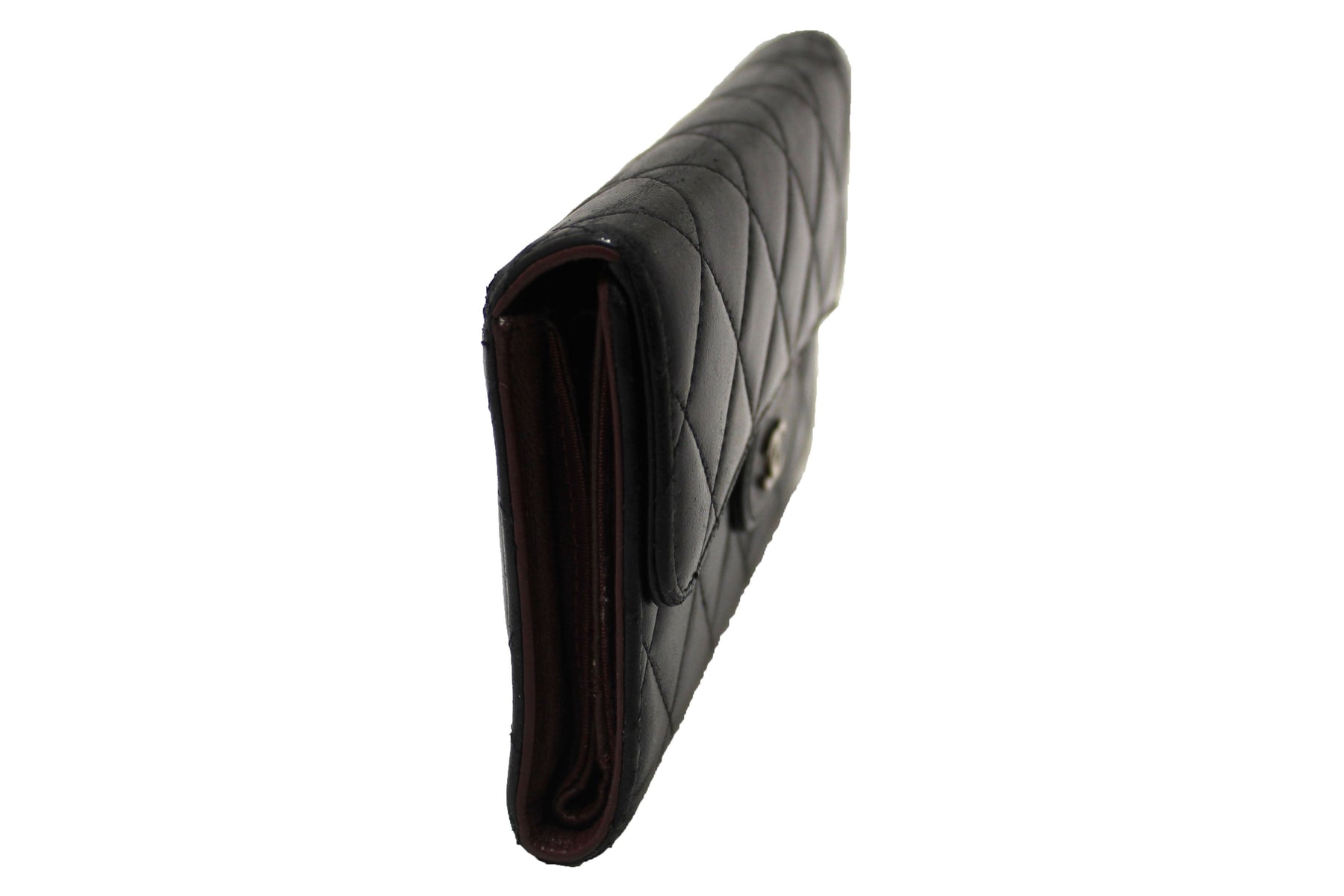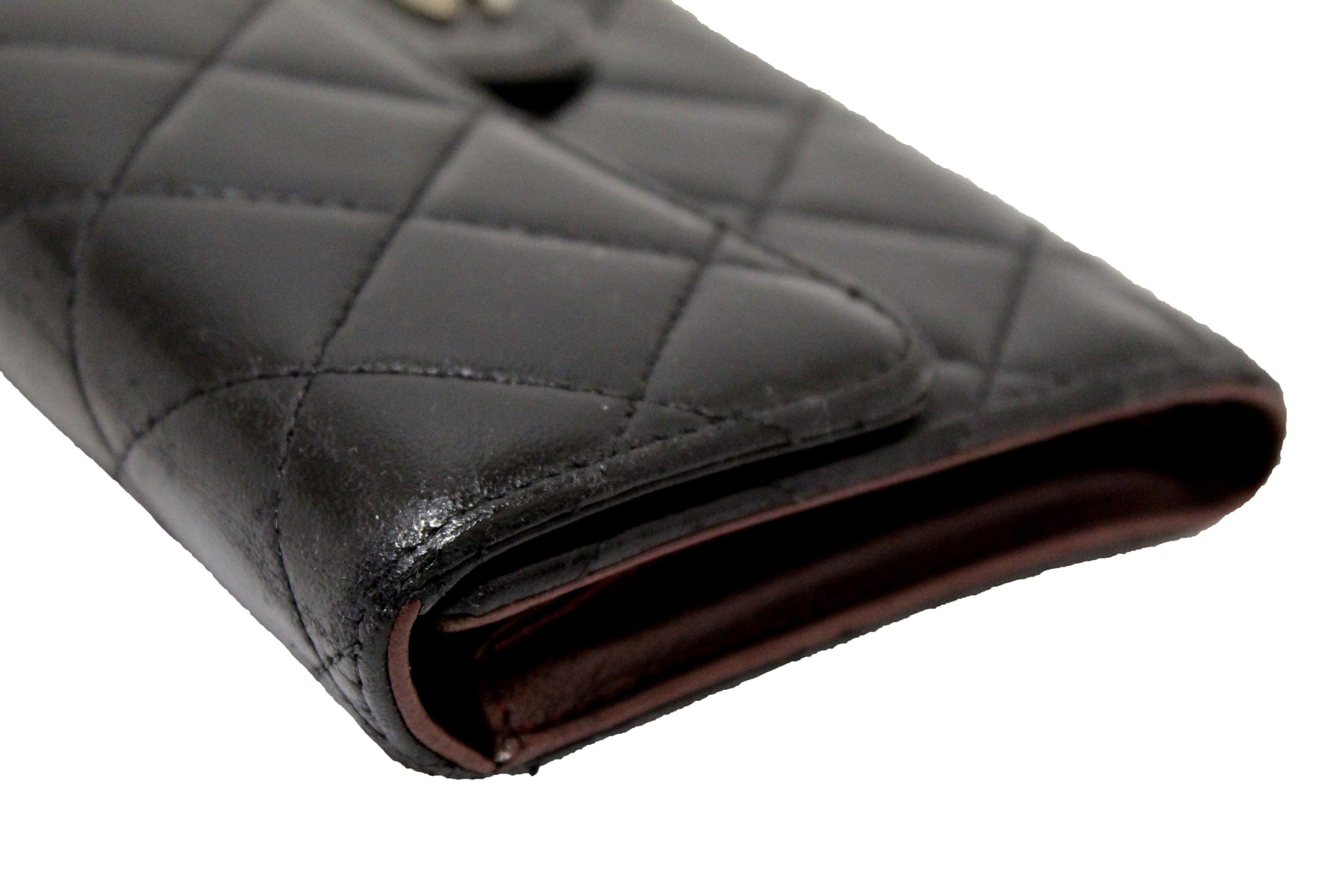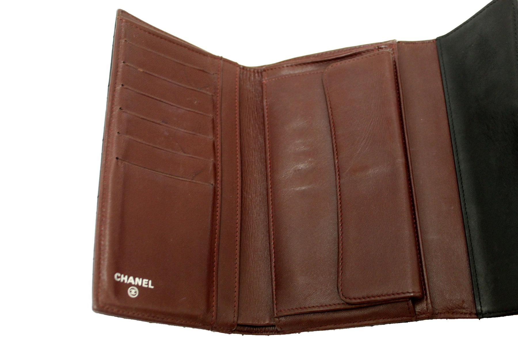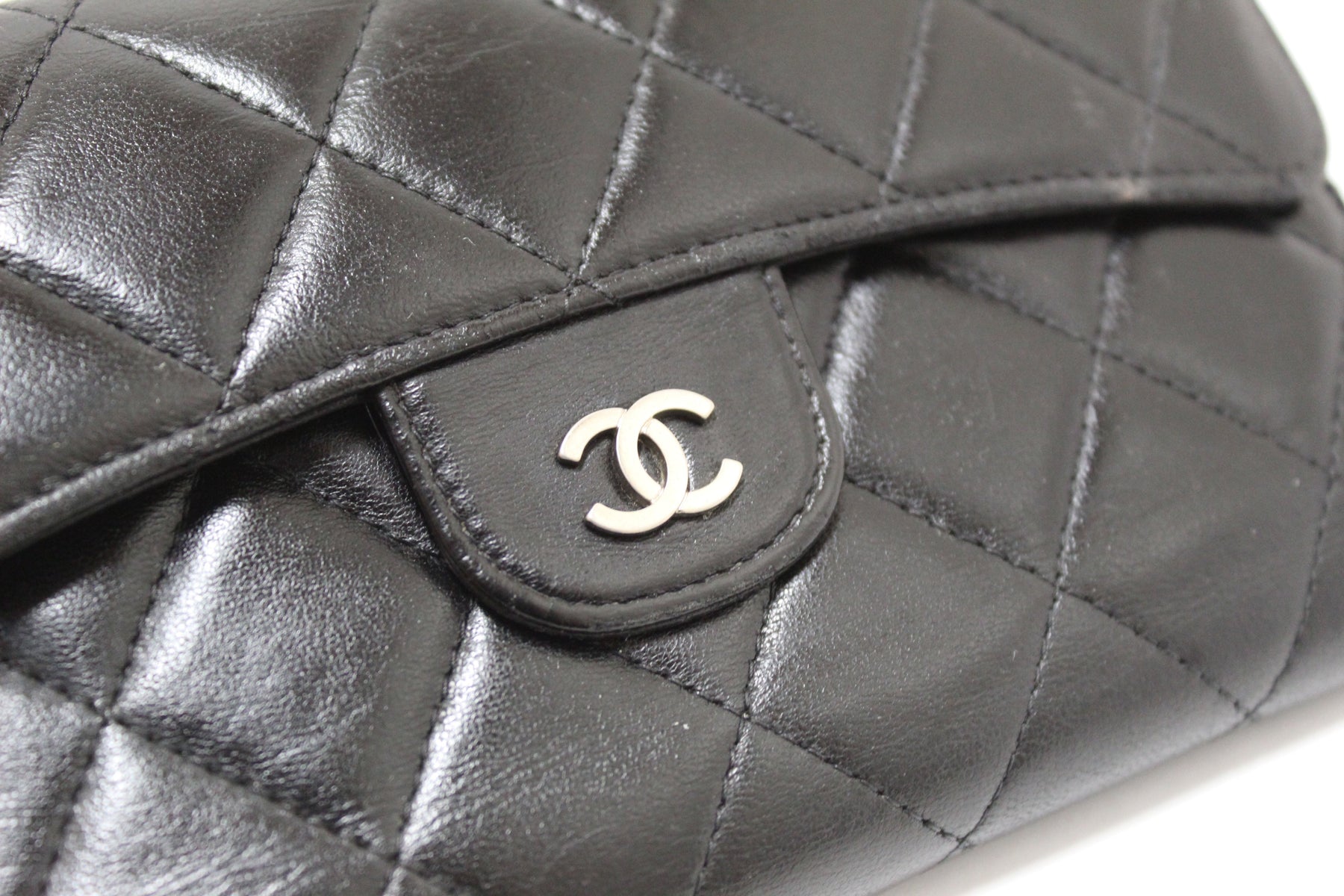 Chanel Black Quilted Lambskin Leather Trifold Flap Wallet