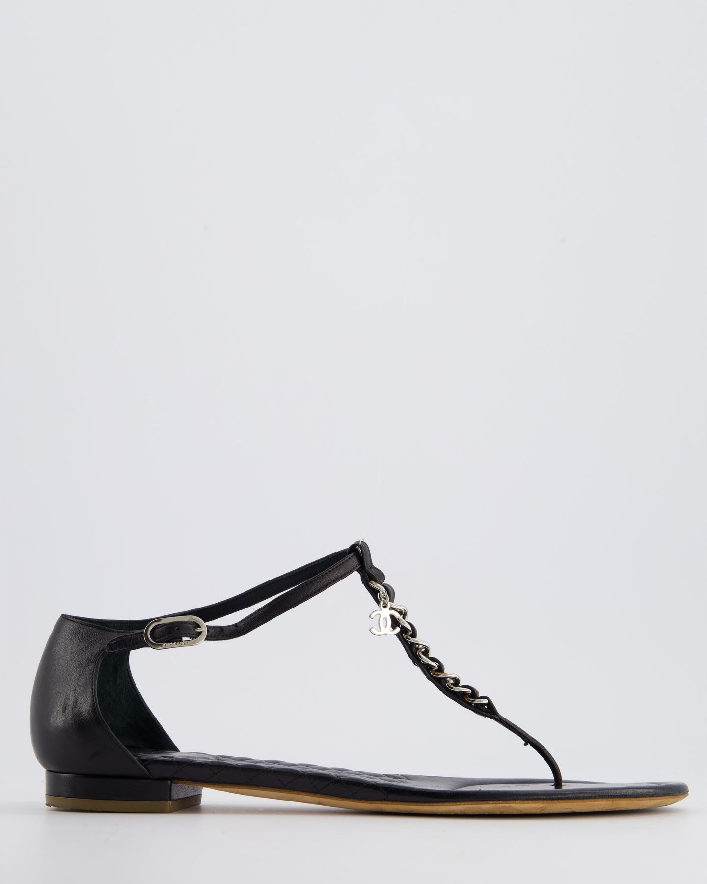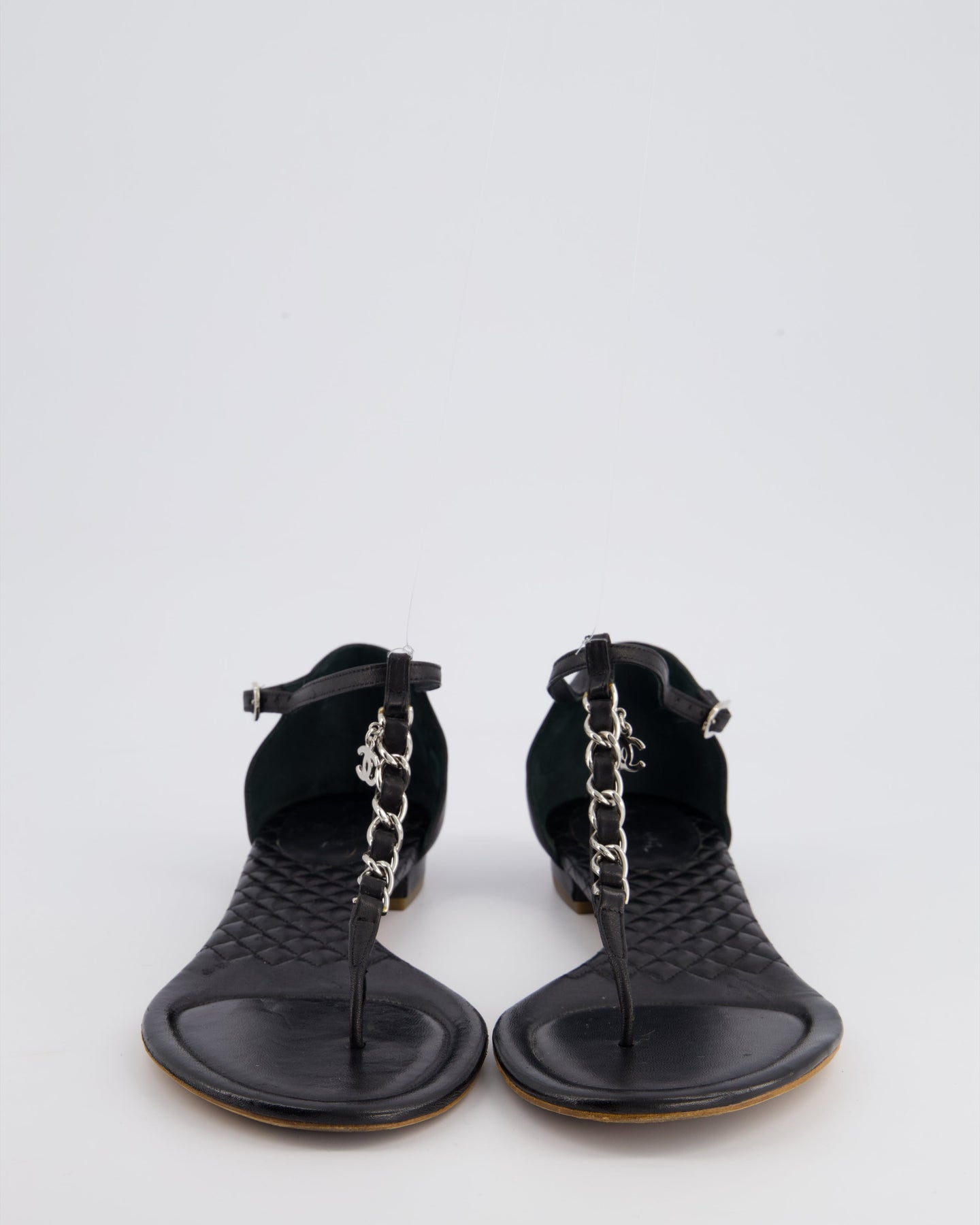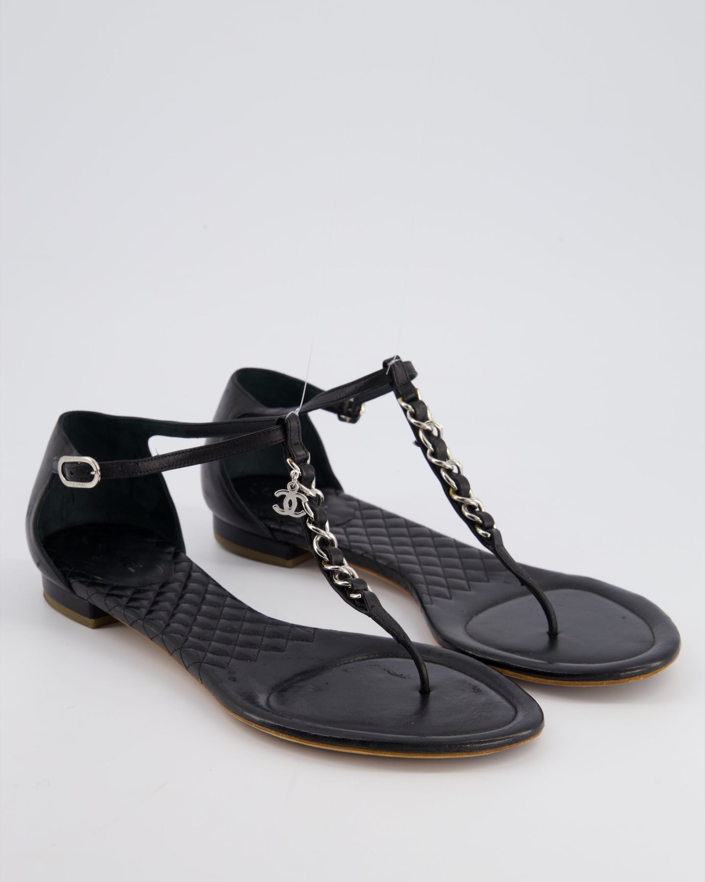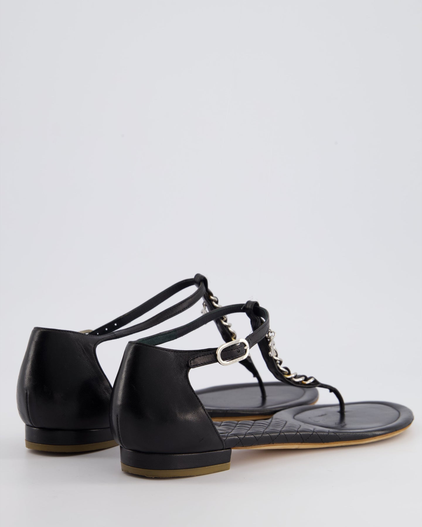 Chanel Black Leather Sandal with Chain CC Detail Size EU 40C