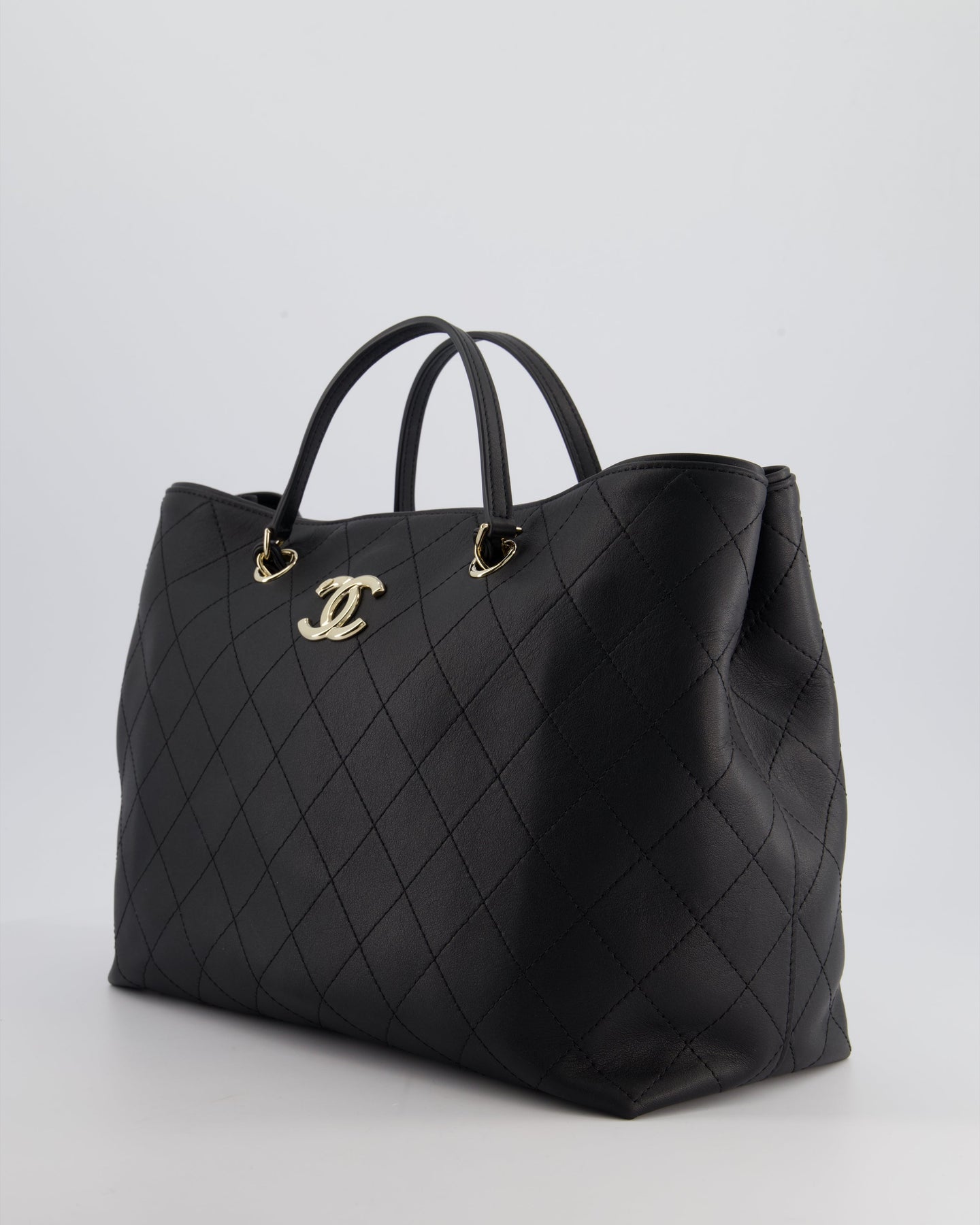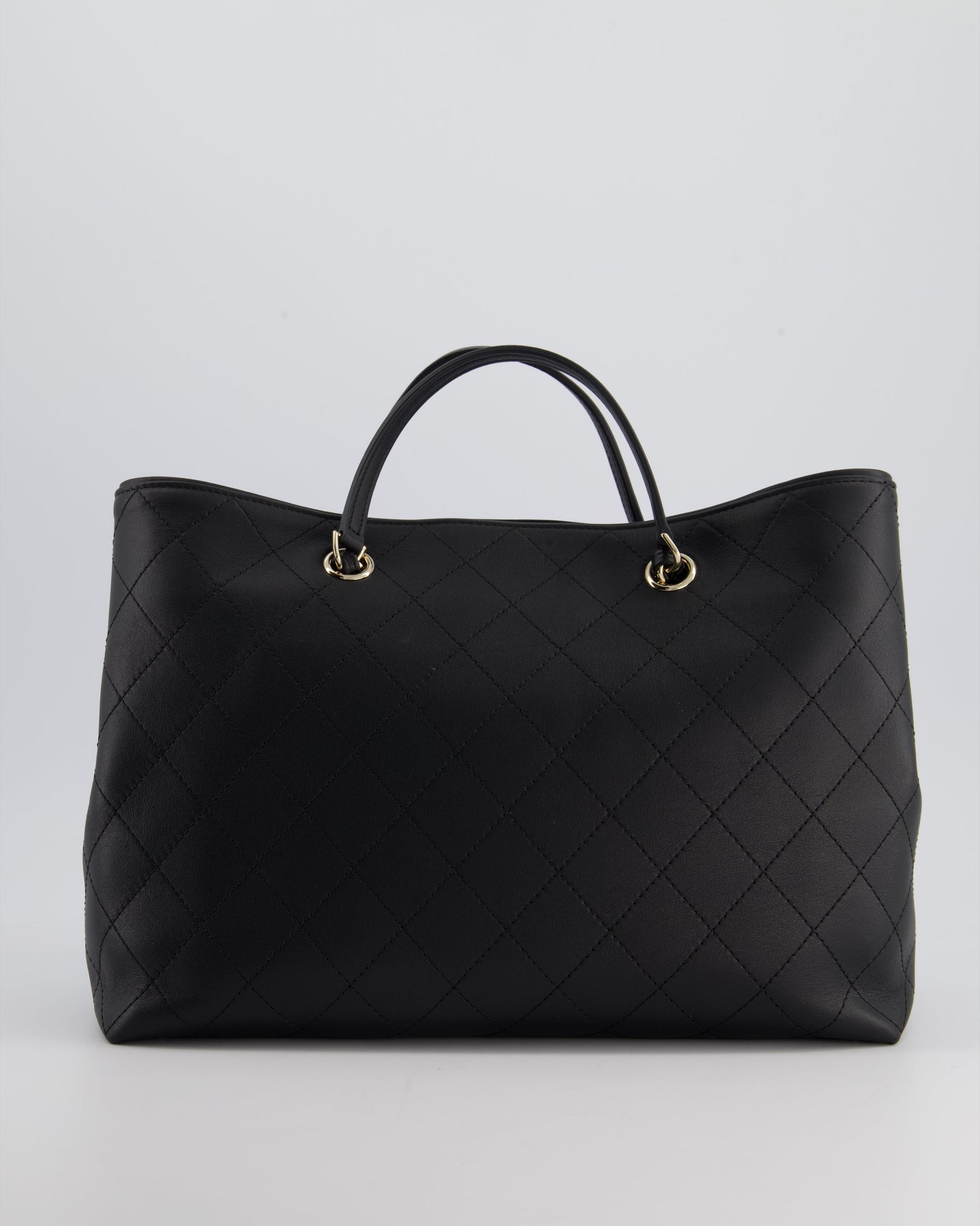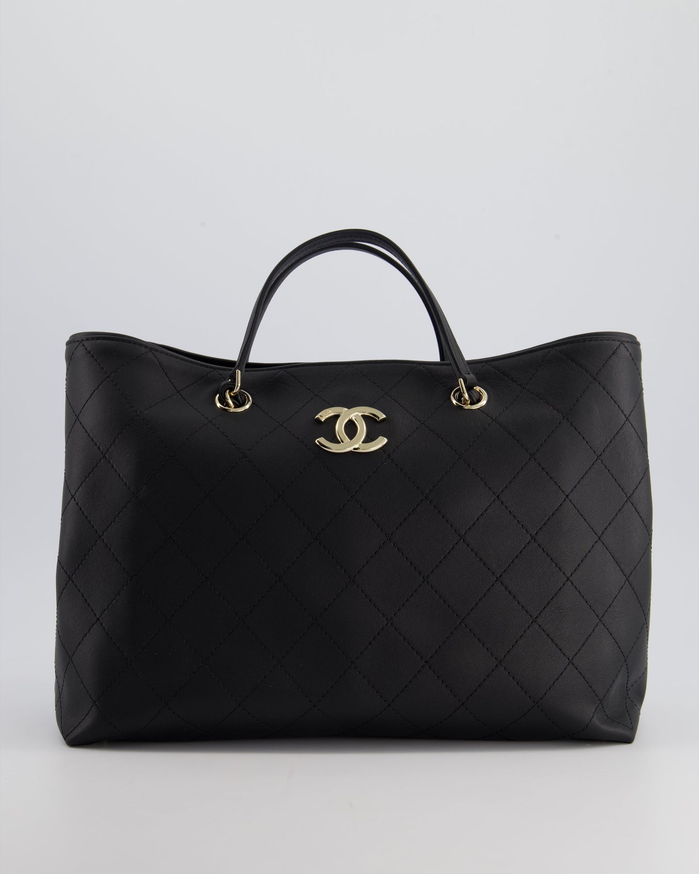 Chanel Black Quilted Tote Bag in Calfskin Leather with Champagne Hardware & CC Detail