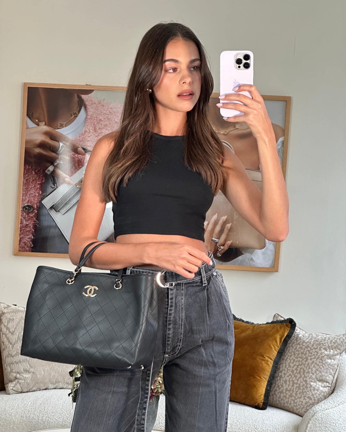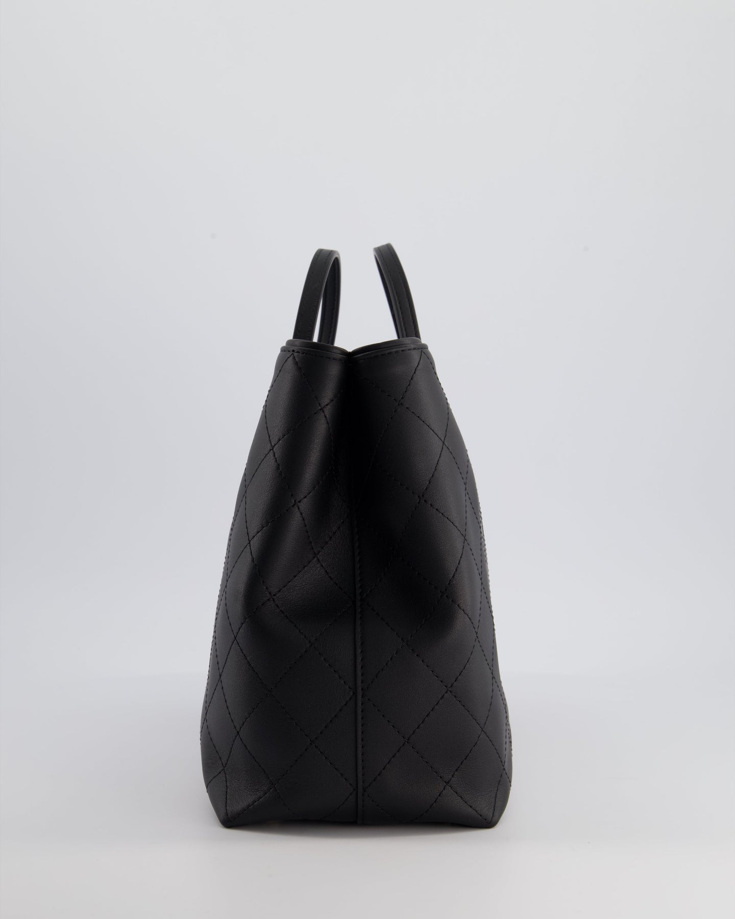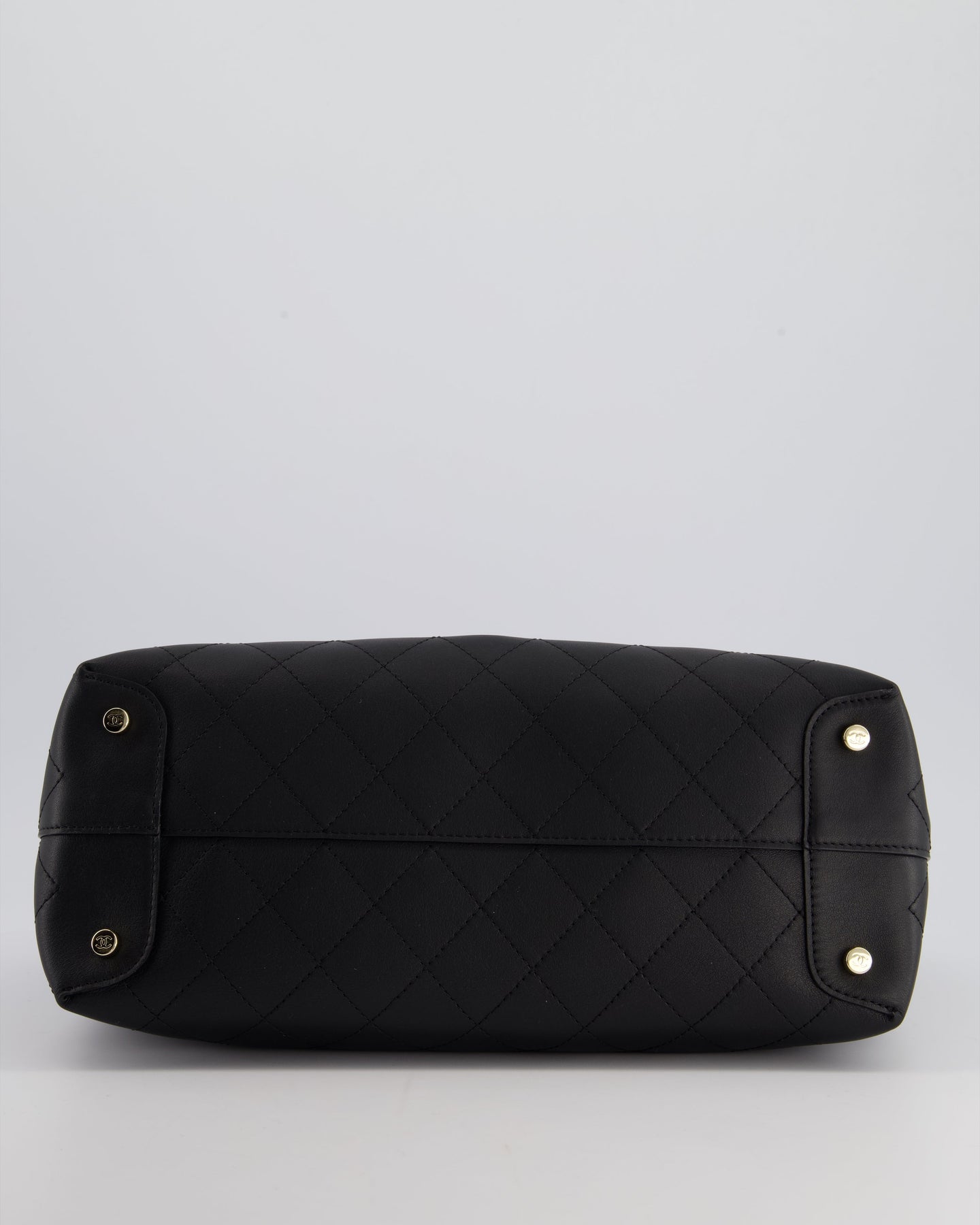 Chanel Black Quilted Tote Bag in Calfskin Leather with Champagne Hardware & CC Detail