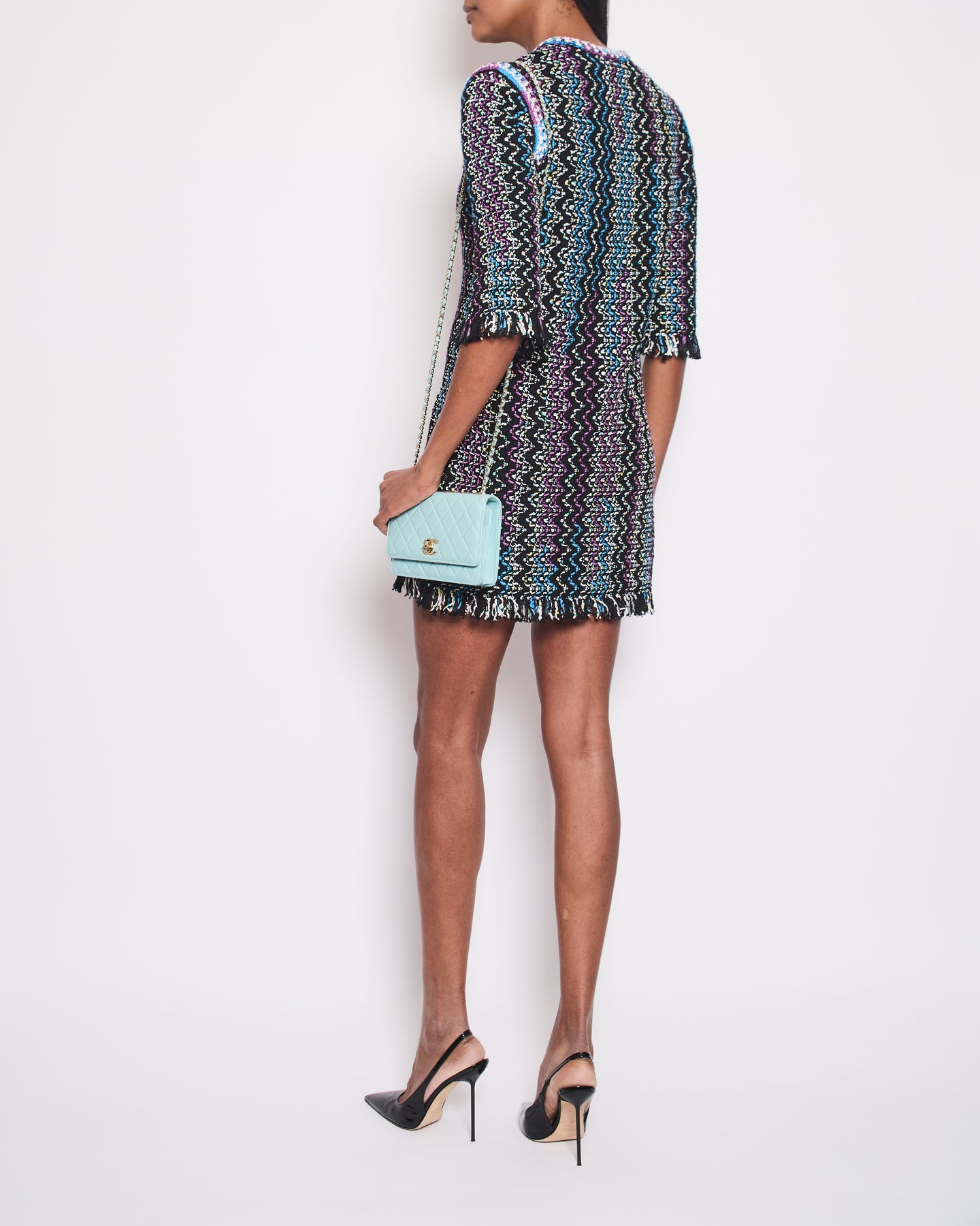 Chanel Black, Turquoise & Purple Zig Zag Dress with Frayed Edge Size FR 34 (UK 6)