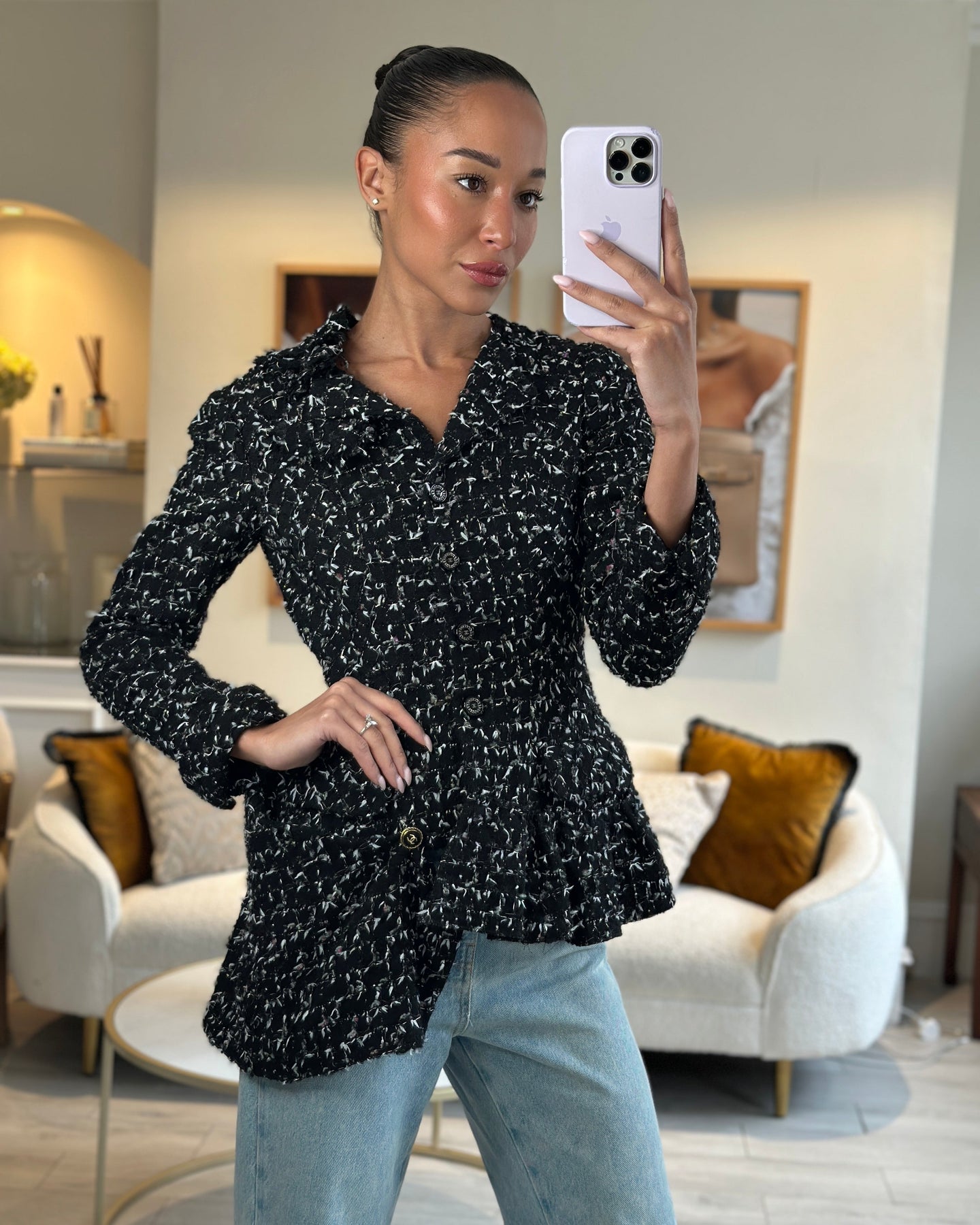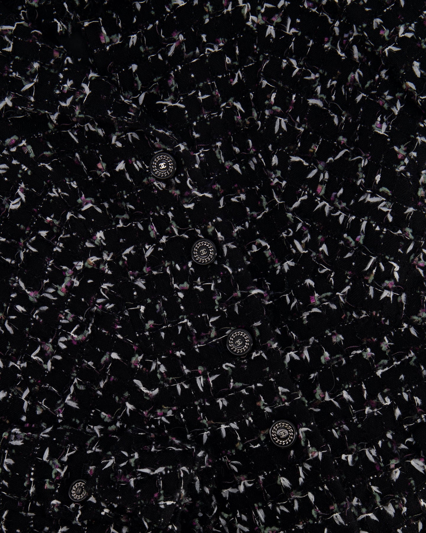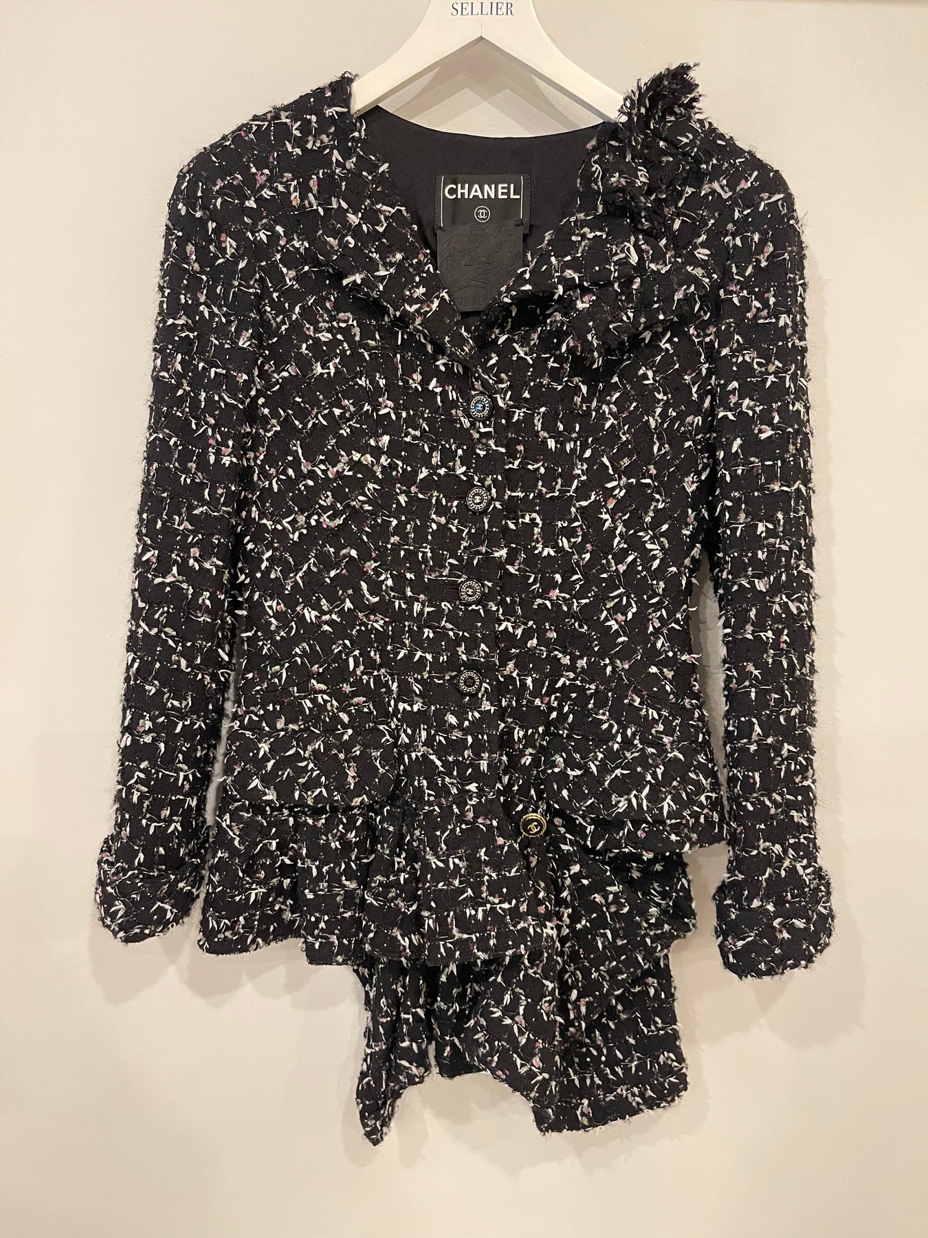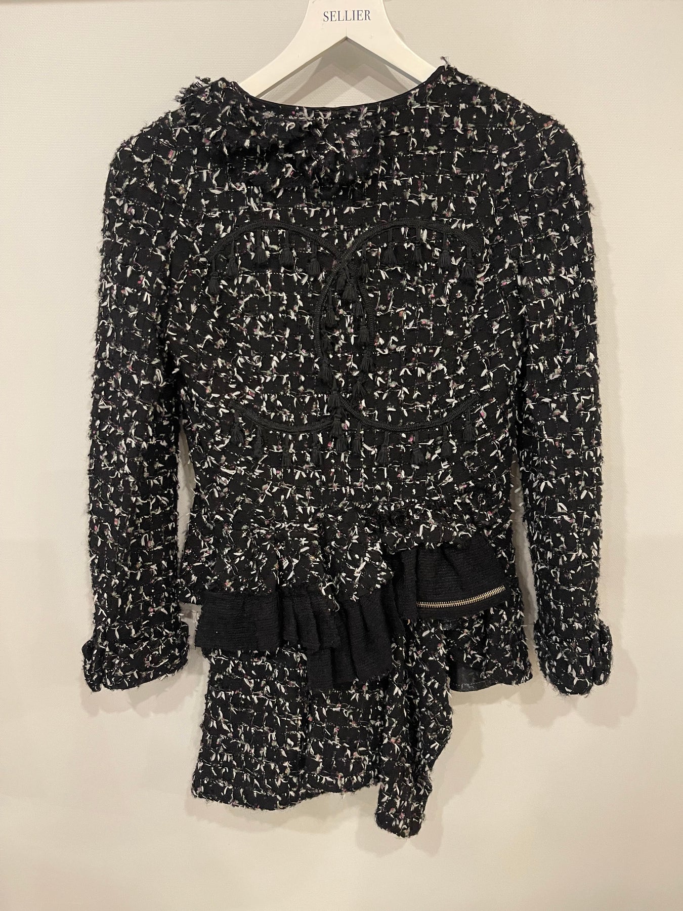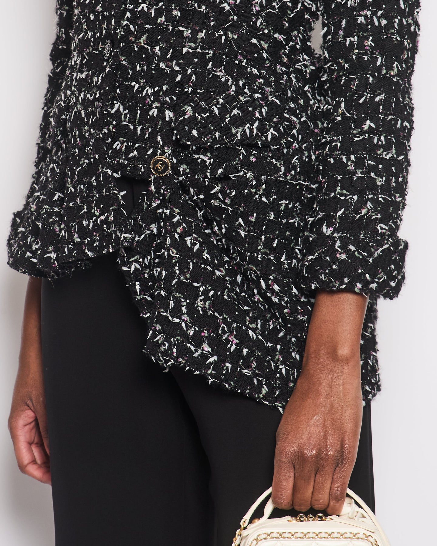 Chanel Black Wool Multicolour Threads Ruffle Asymmetric Jacket with CC Logo Button Details Size FR 36 (UK 8)