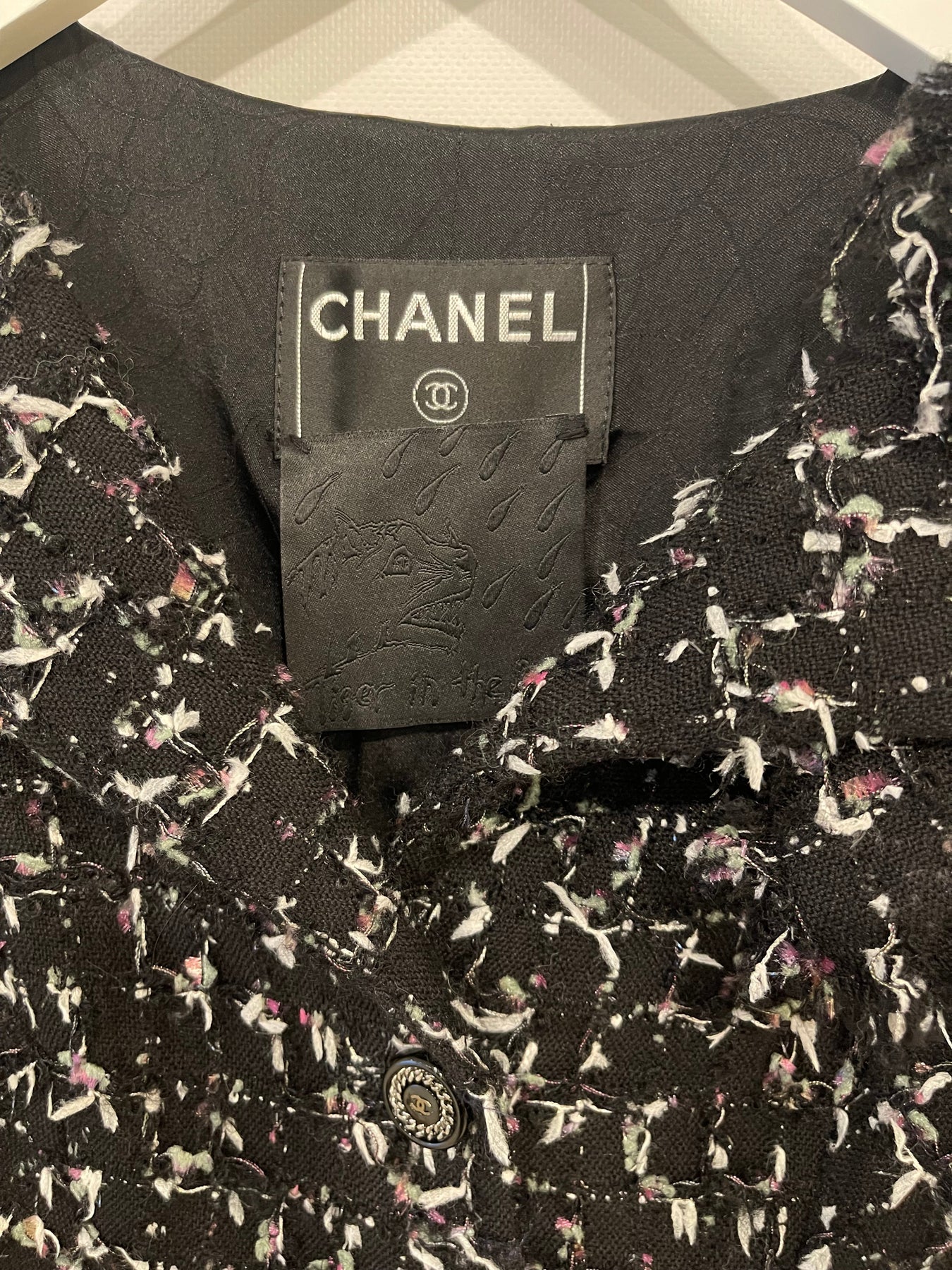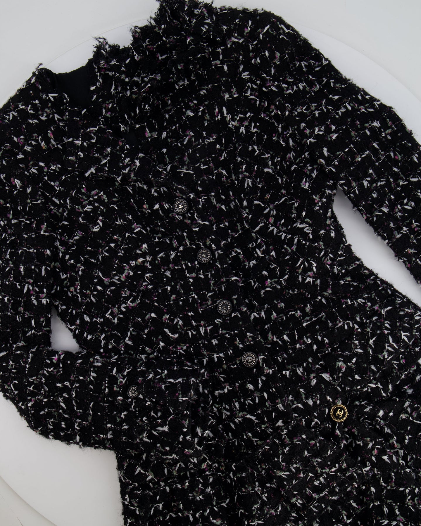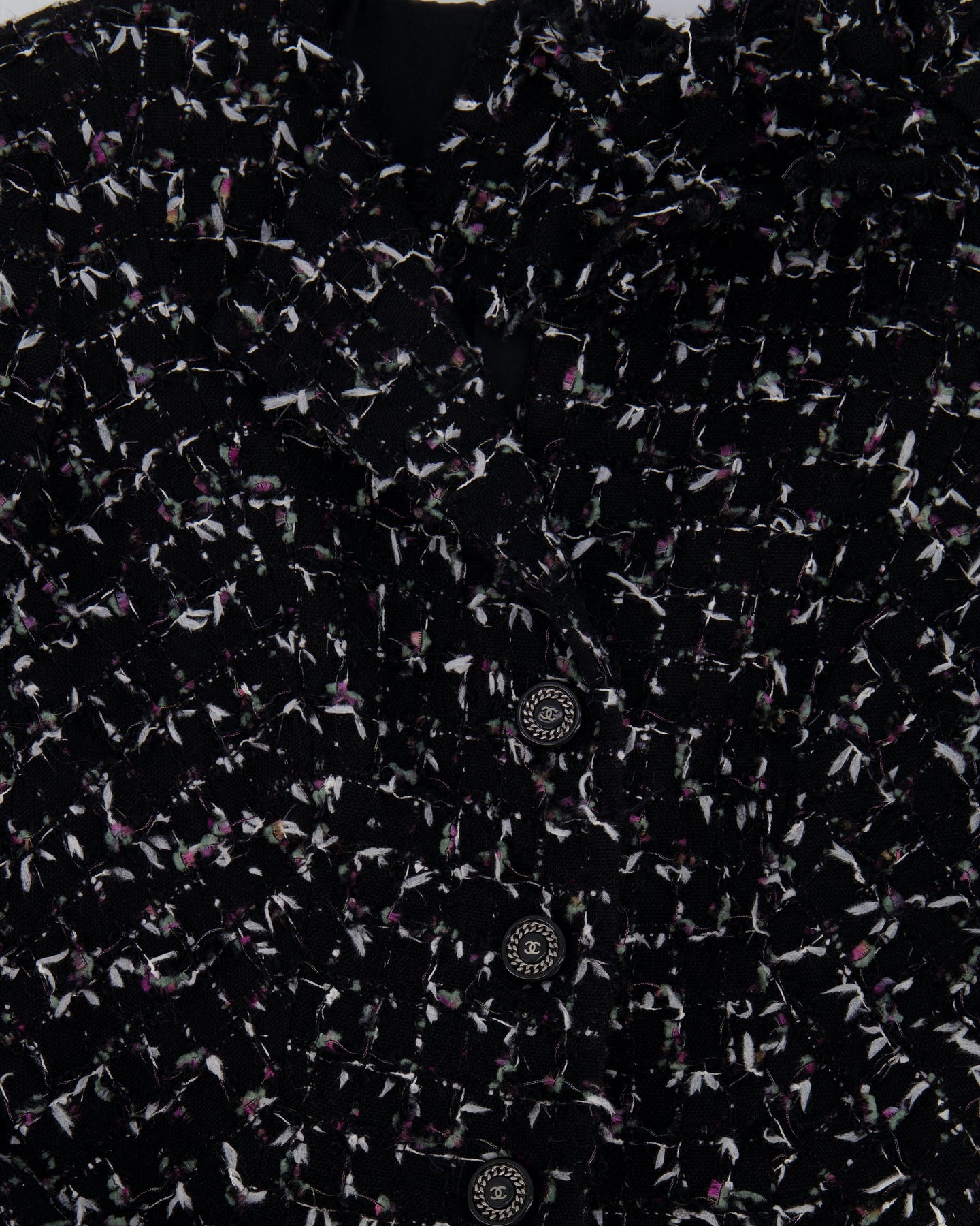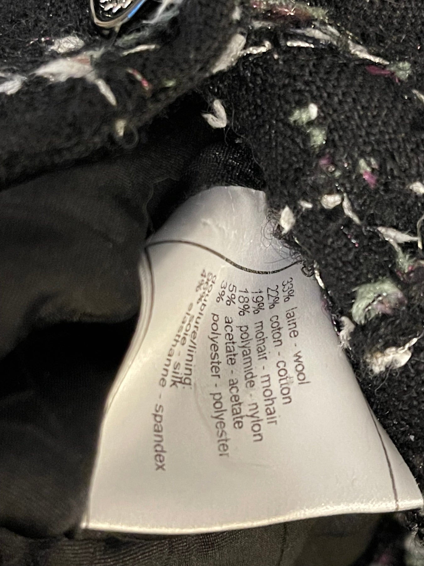 Top Quality Chanel Black Wool Multicolour Threads Ruffle Asymmetric Jacket with CC Logo Button Details Size FR 36 (UK 8)