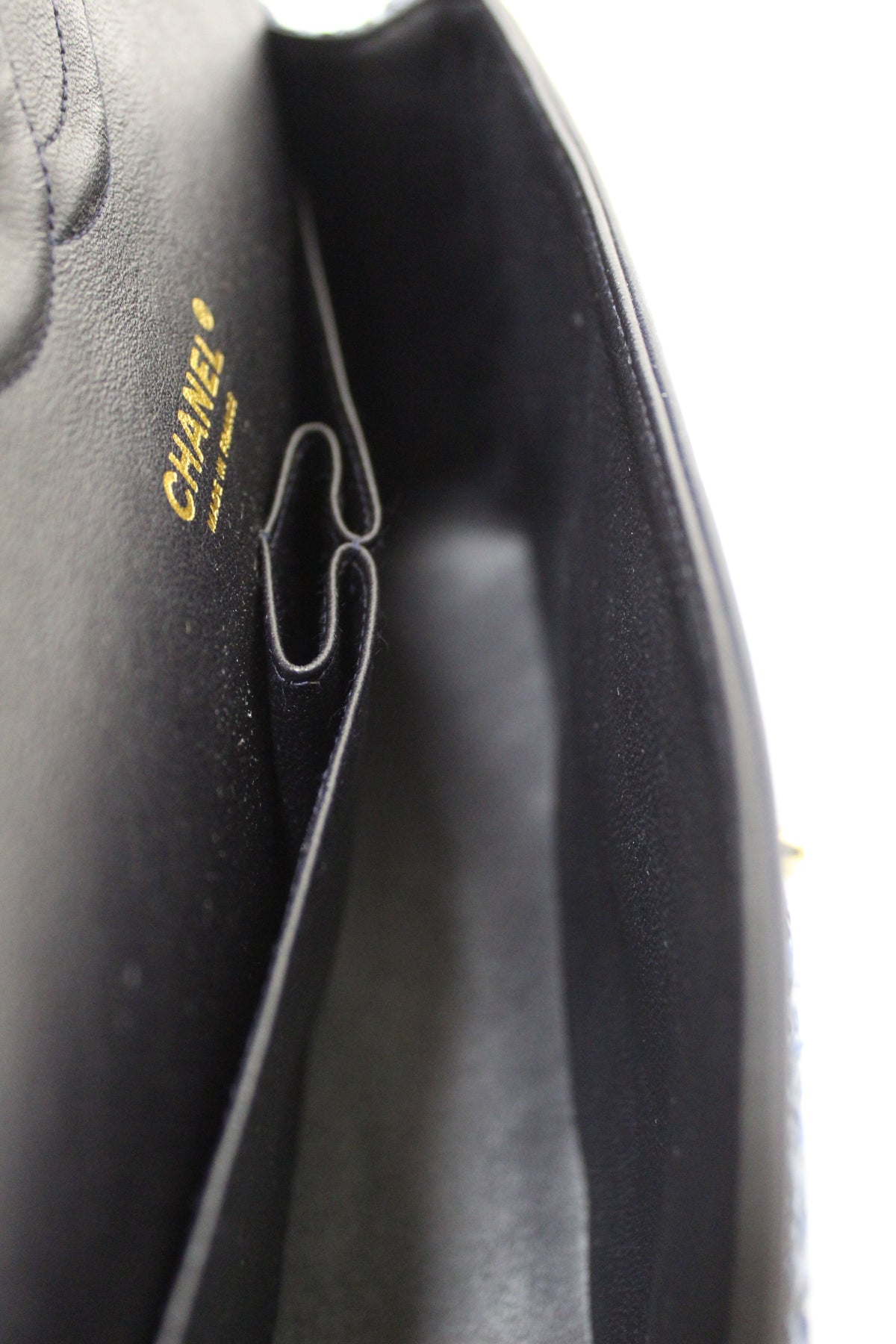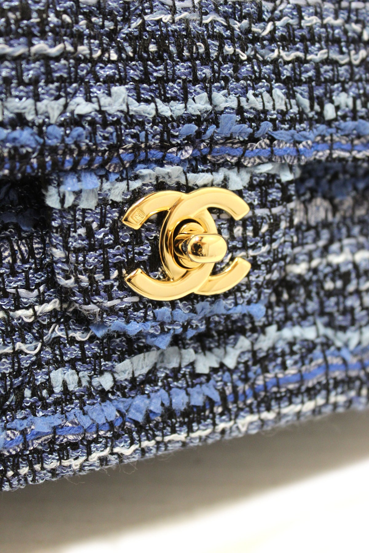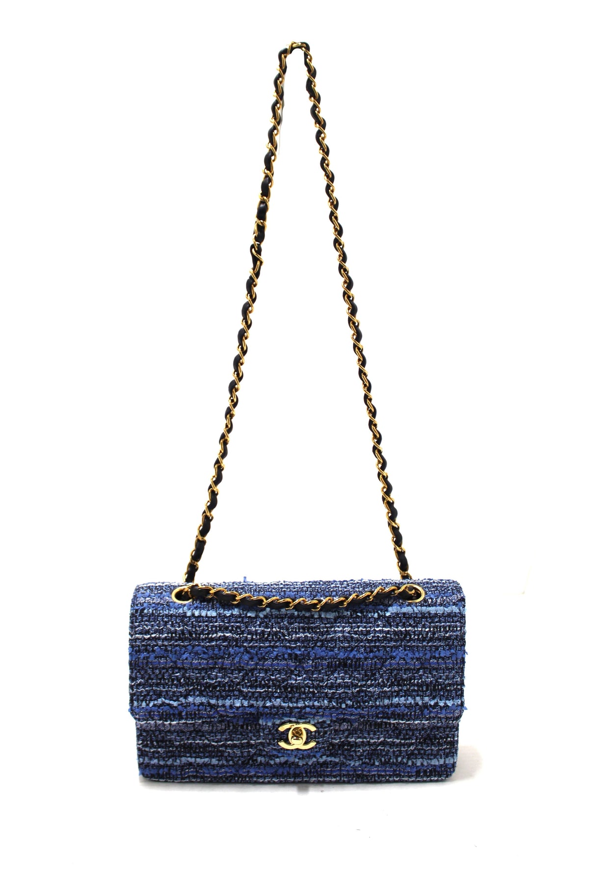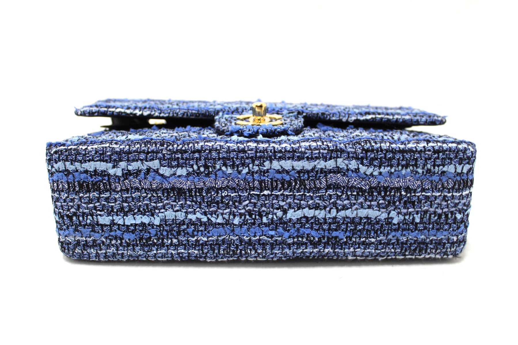 Chanel Blue Tweed and Leather Classic Medium Double Flap Shoulder Bag