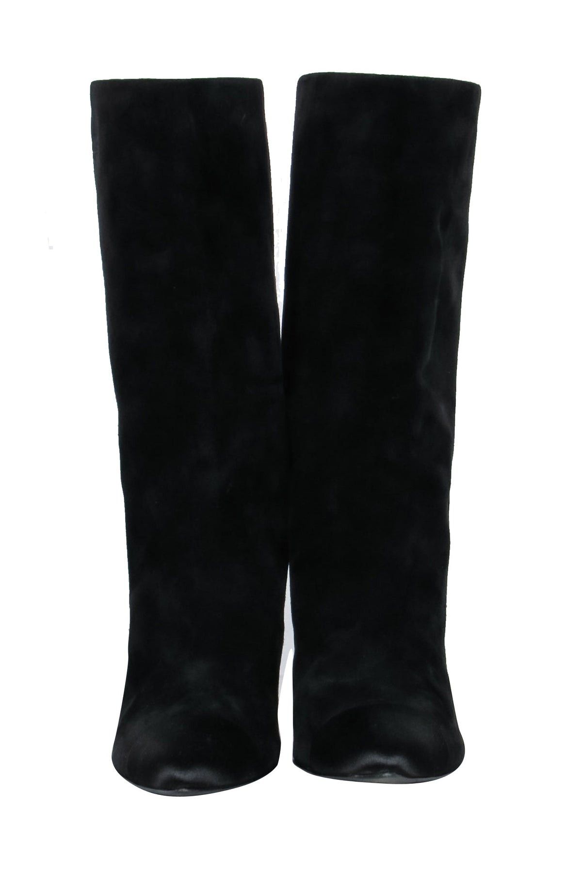 Top Quality Chanel - Cap Toe Mid-Calf Black Suede Boots w/ Embroidery Sz 8