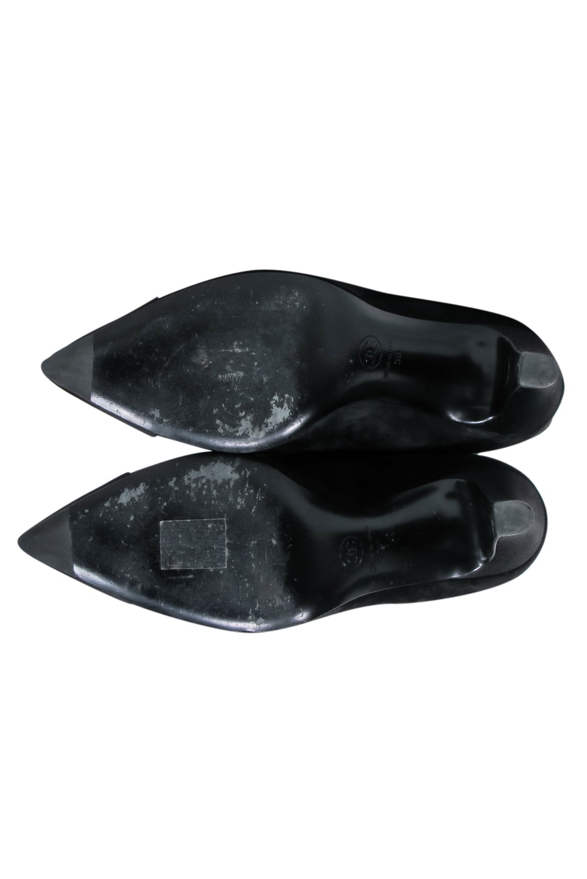 Elevate any outfit with these classic suede boots from Chanel, designed by Karl Lagerfeld in his 2017 collection as a tribute to one of Chanel’s beloved pieces. The black suede material is sophisticated, while the signature cap-toe and interlocking “CC” & Gabrielle Chanel “Coco” embroidery - a mark of a truly timeless piece. The pointed toe and 3.5” heel make these boots the perfect addition to a chic mini dress or dress like Chanel herself, and pair with an iconic tweed suit.