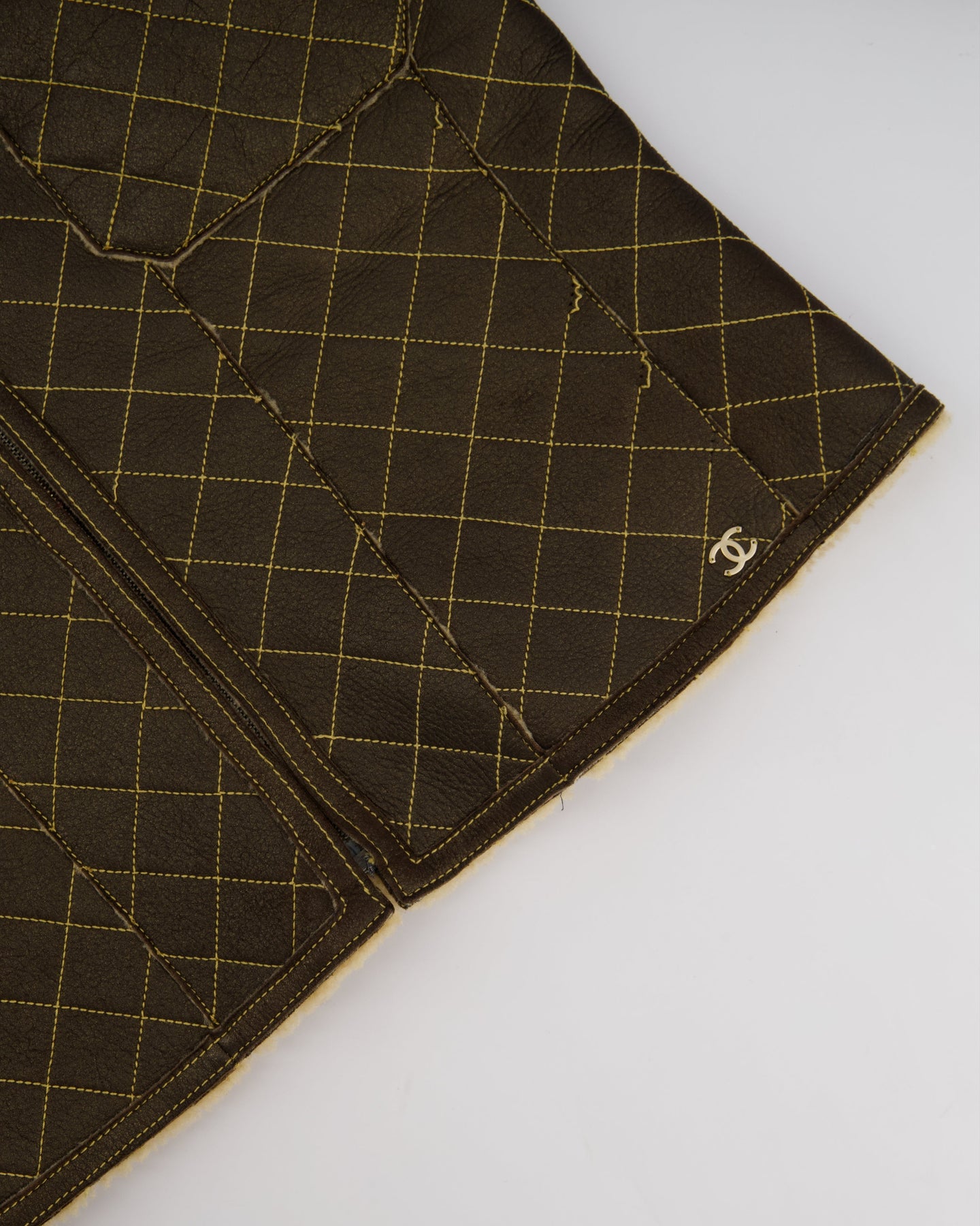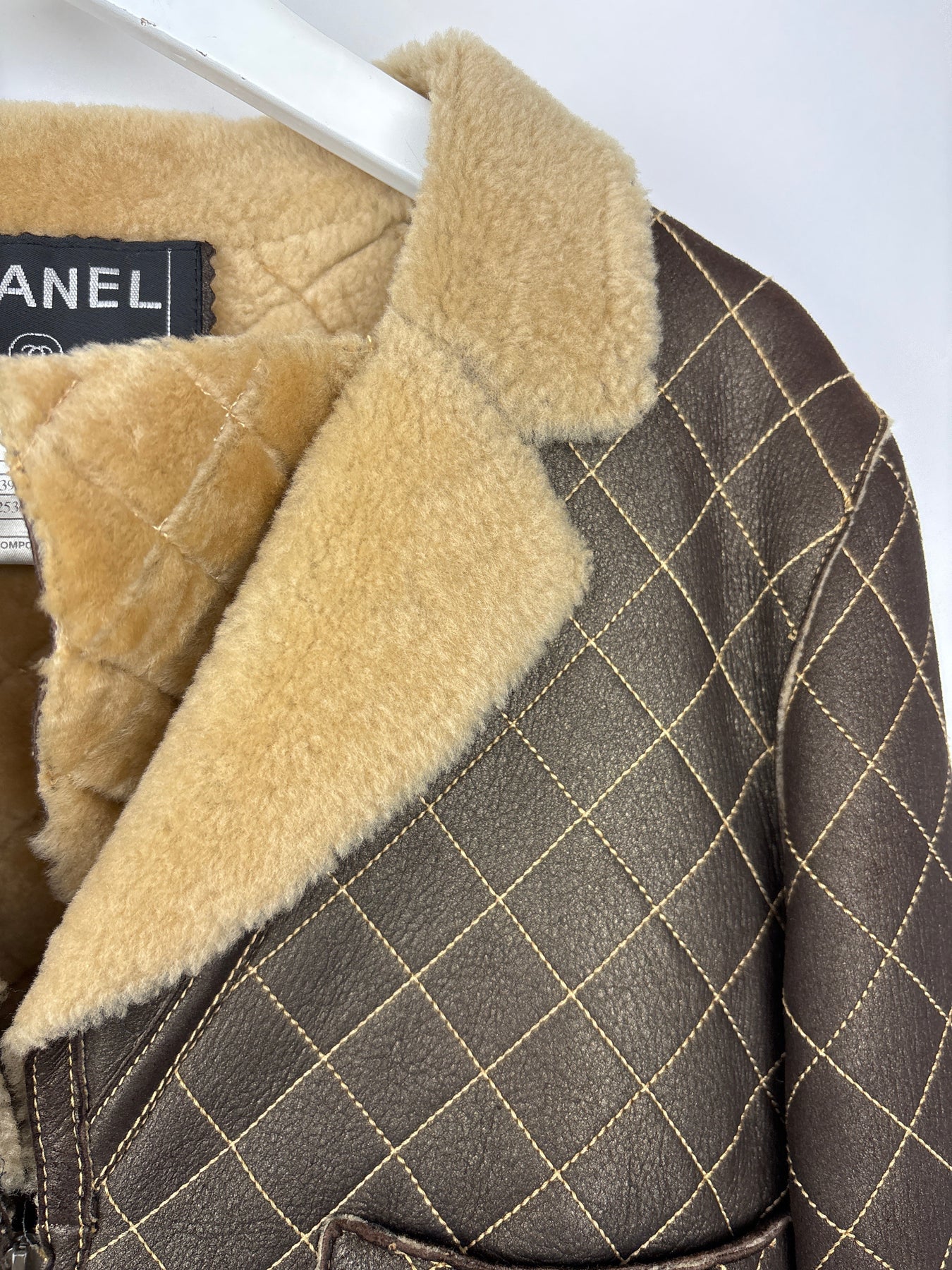 Chanel Brown Quilted Stitch Shearling Zip-Up Jacket With Double Collar Detail FR 36 (UK 8)