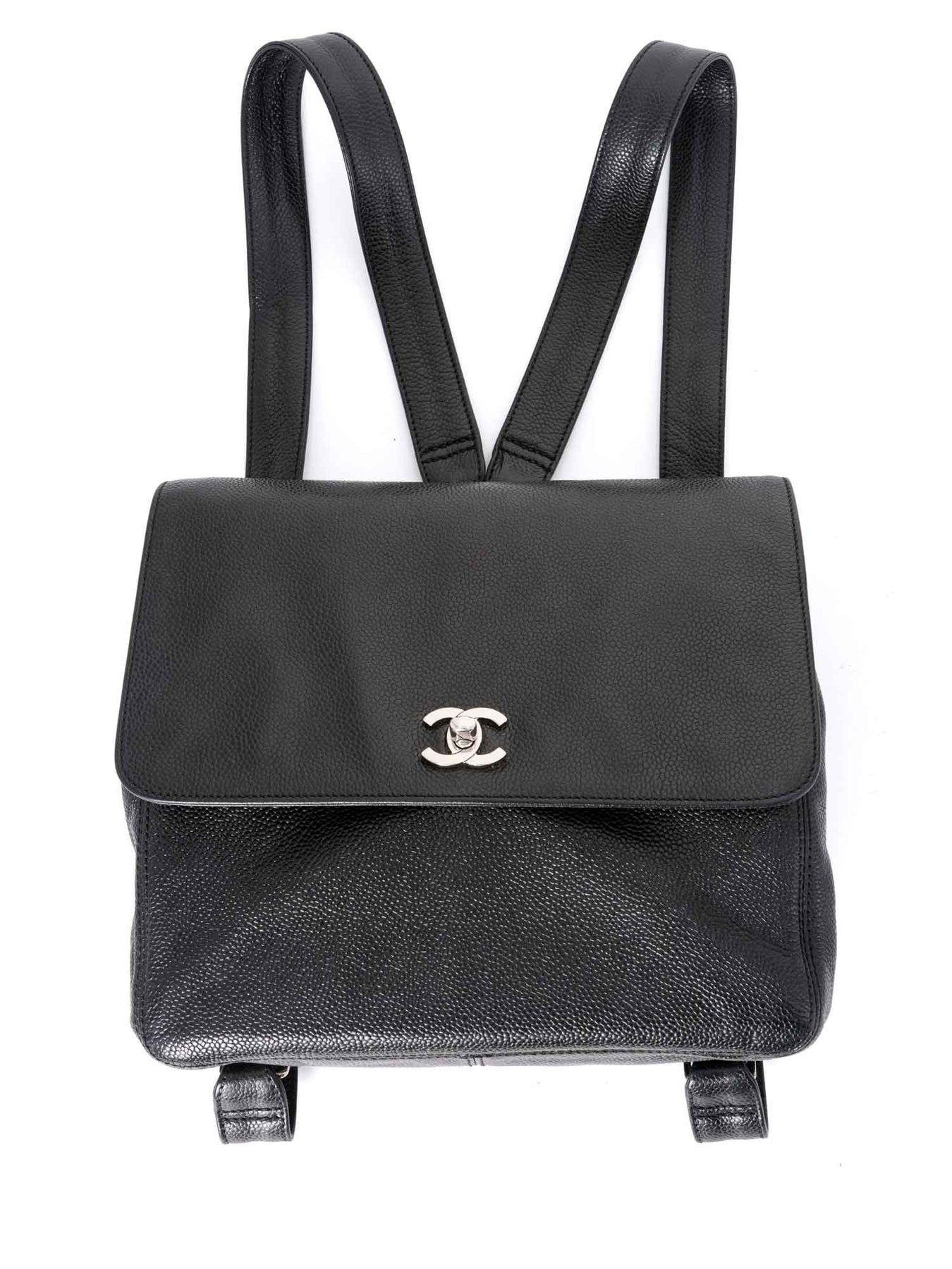 CHANEL Caviar Backpack or . This bag is crafted in black caviar leather, featuring silver hardware, signature CC logo twist closure, two interior zip pockets and one open pocket outside (perfect for your phone). The interior is in black leather to compliment the exterior
