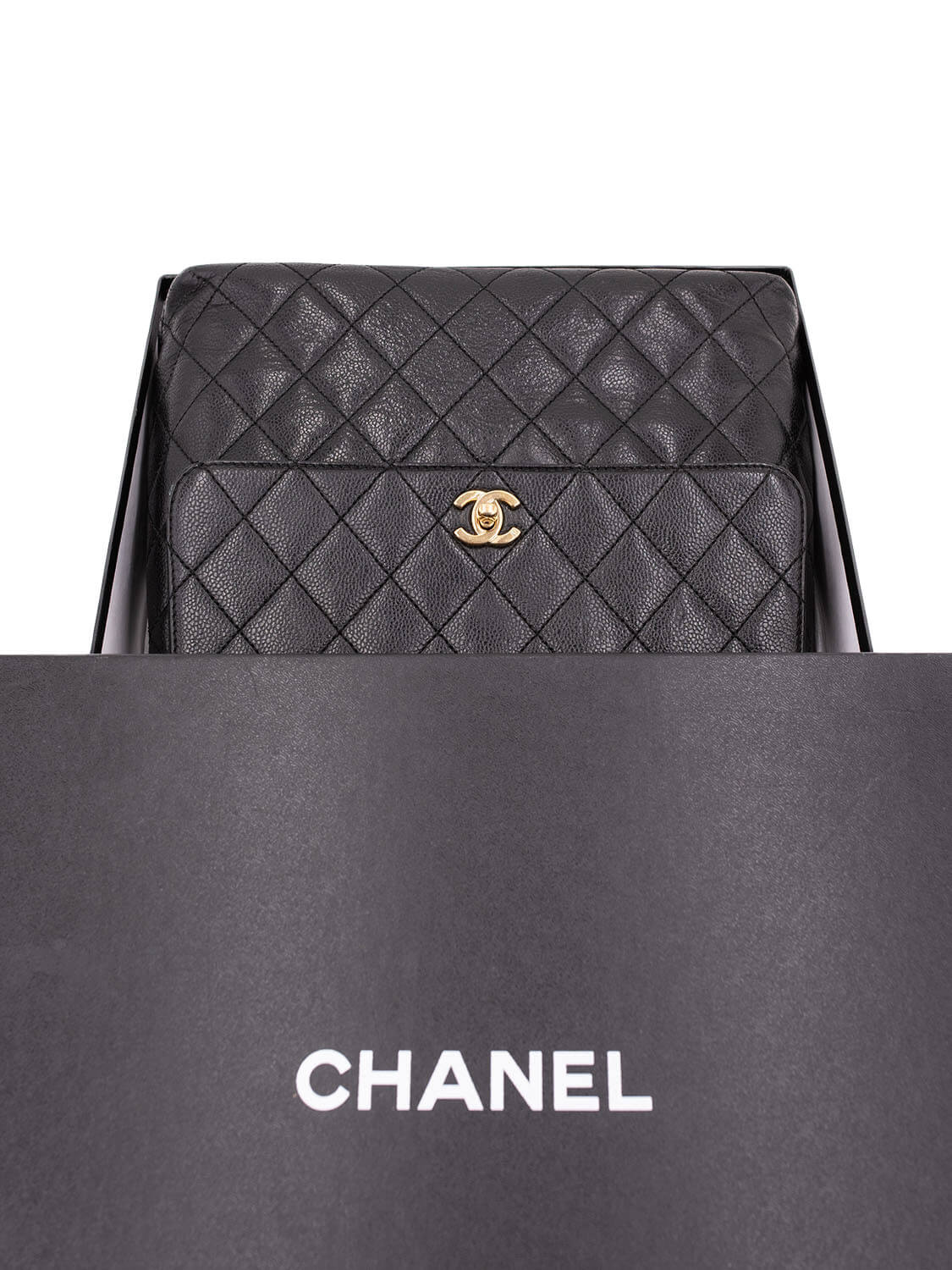 Chanel Large Coco Handle Flap Bag or . This Chanel bag is crafted with the finest black caviar leather featuring prominent gold-tone hardware with the signature CC logo on the front and black leather interior to complement the exterior.