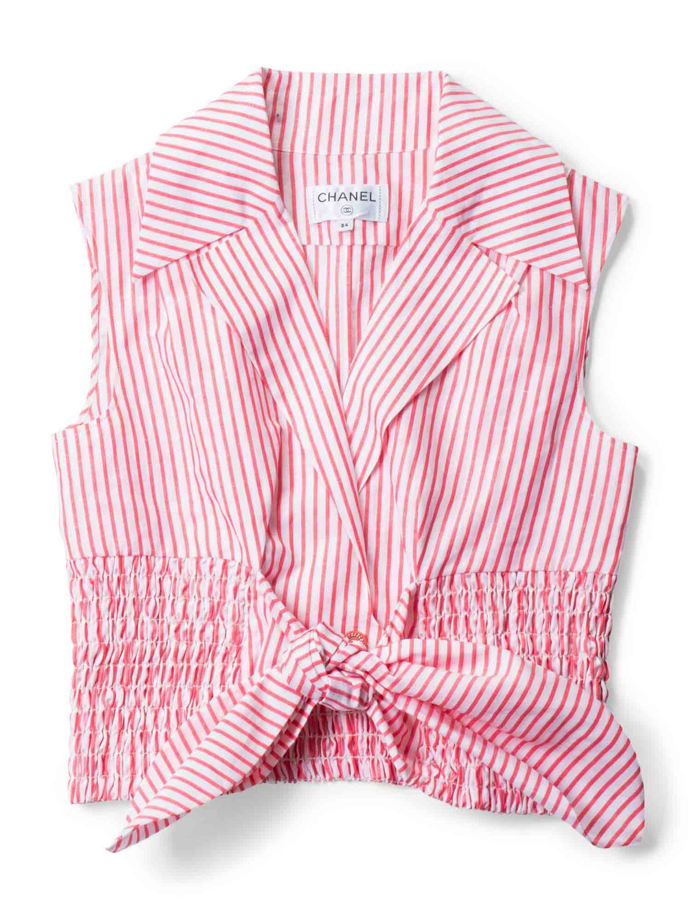 Chanel Cropped Top or . This top is in a cotton fabric, featuring elaborate CC logo buttons and a frontal tie.