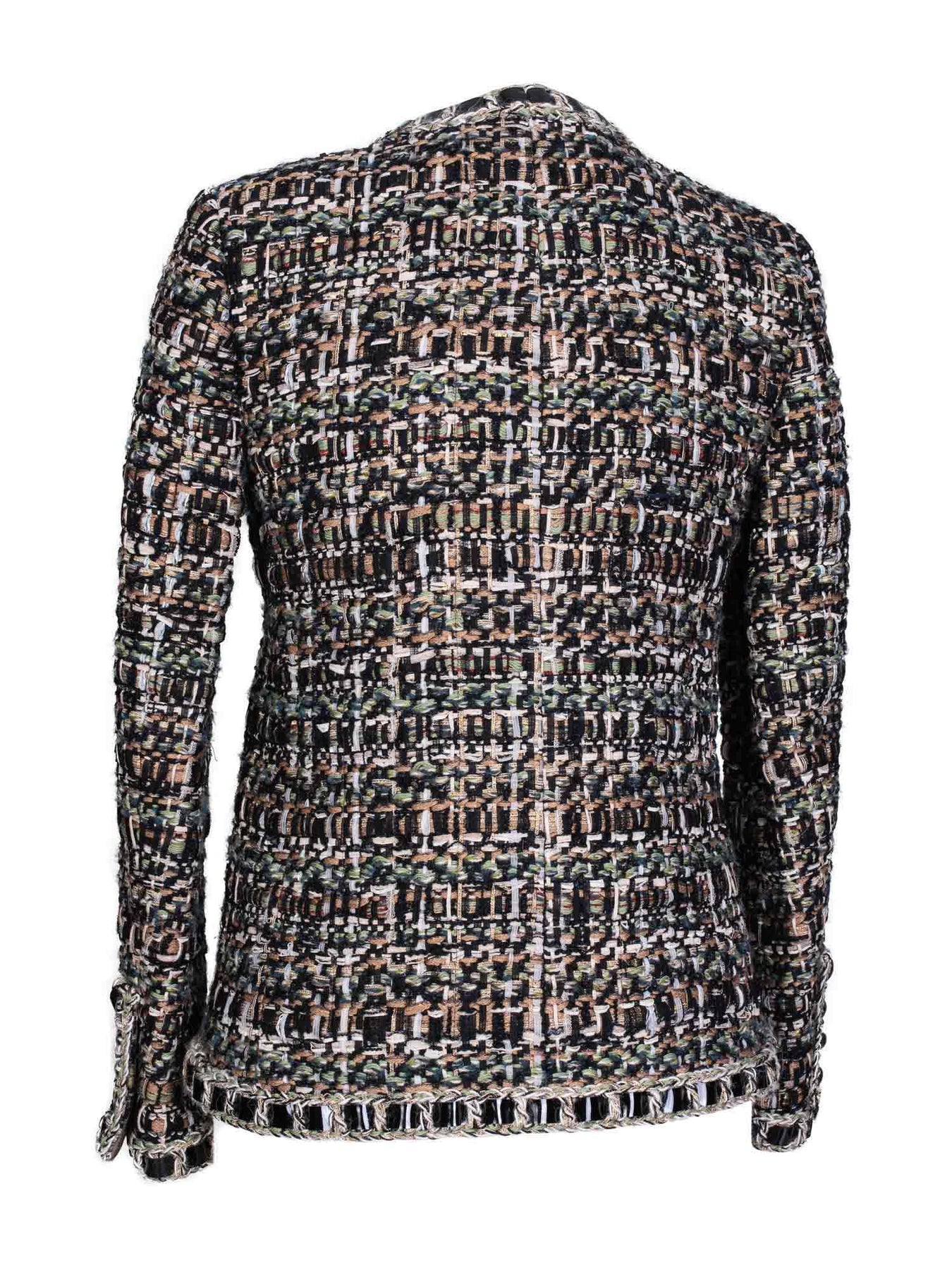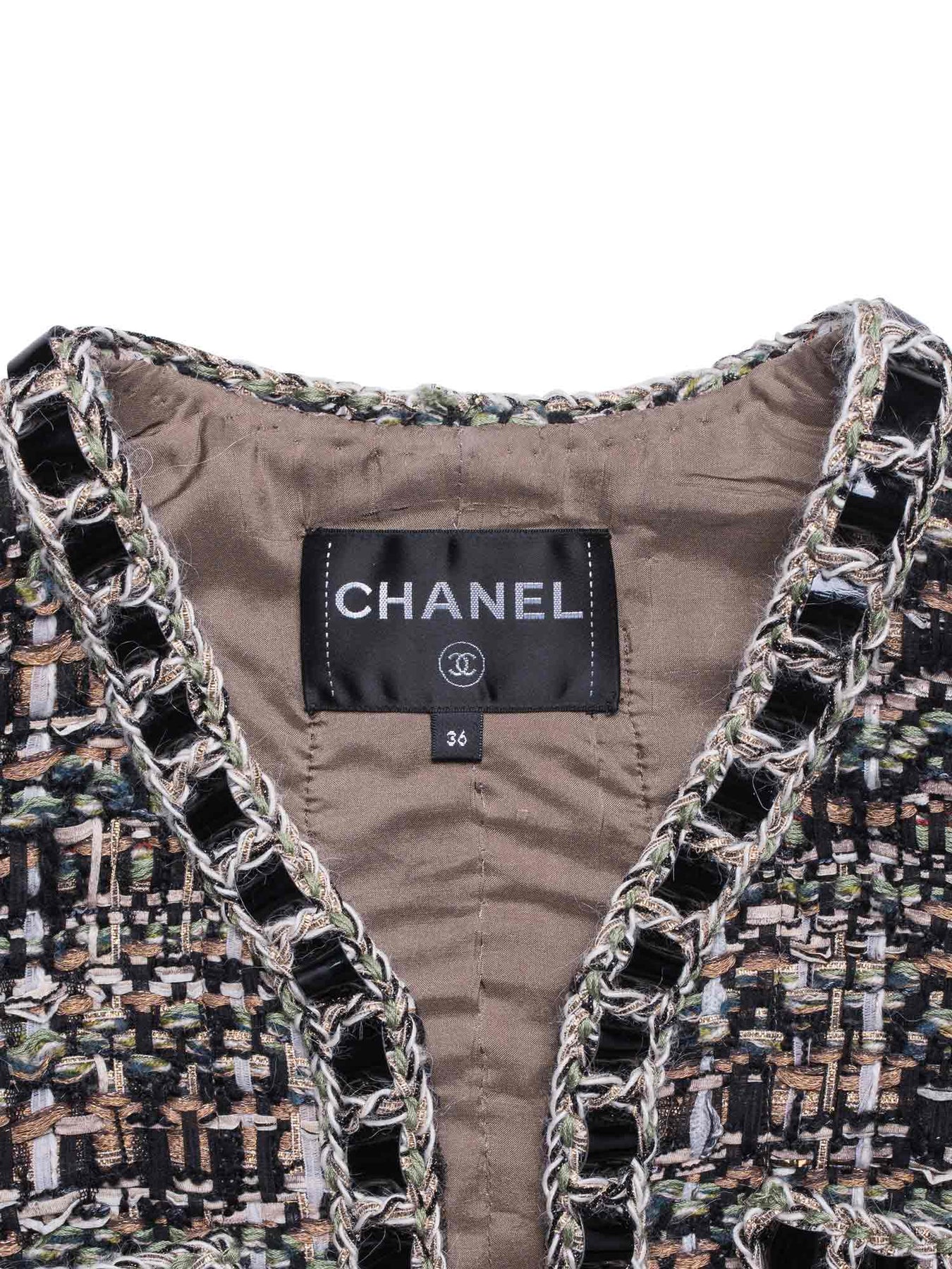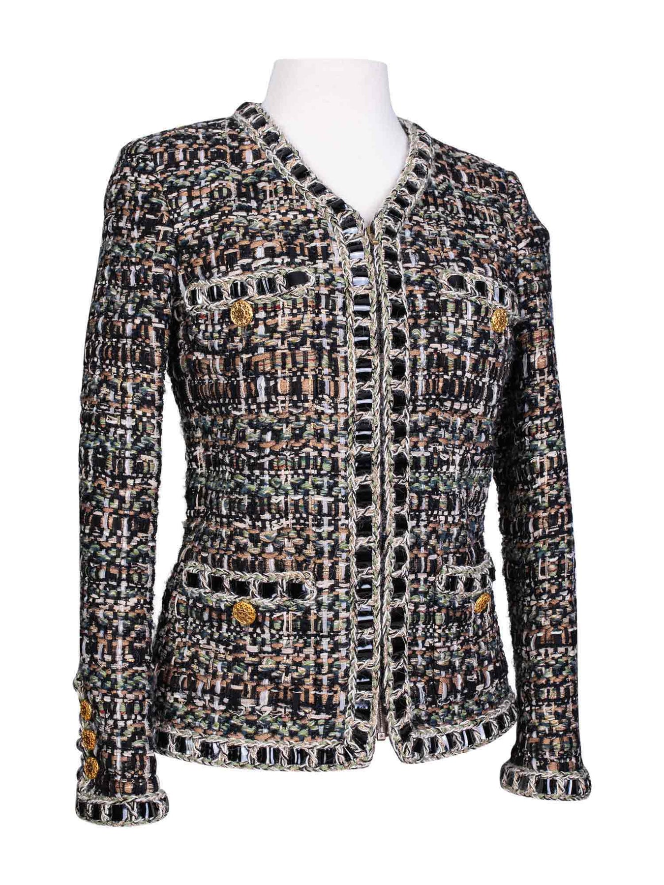 Chanel Lesage Tweed Fitted Jacket from the Spring/Summer 2007 collection or . This Chanel jacket is in multicolored lesage tweed and features gold CC logo buttons on the front four pockets and the sleeves, a front zipper closure, and quilted beige silk lining with interior chain trim.