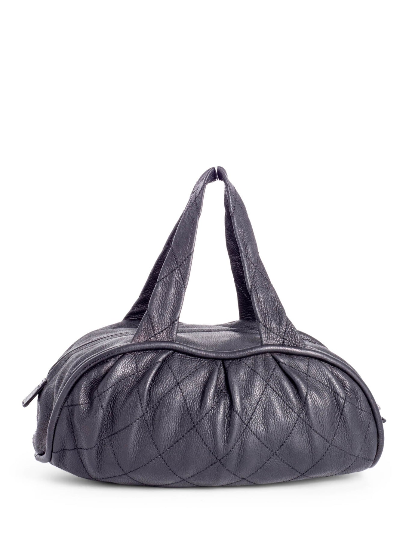 Chanel Bag or . This bag is in black caviar quilted leather and features a large CC logo zip charm closure. Its unique shape opens to a black fabric interior with Chanel insignia throughout and one pocket.