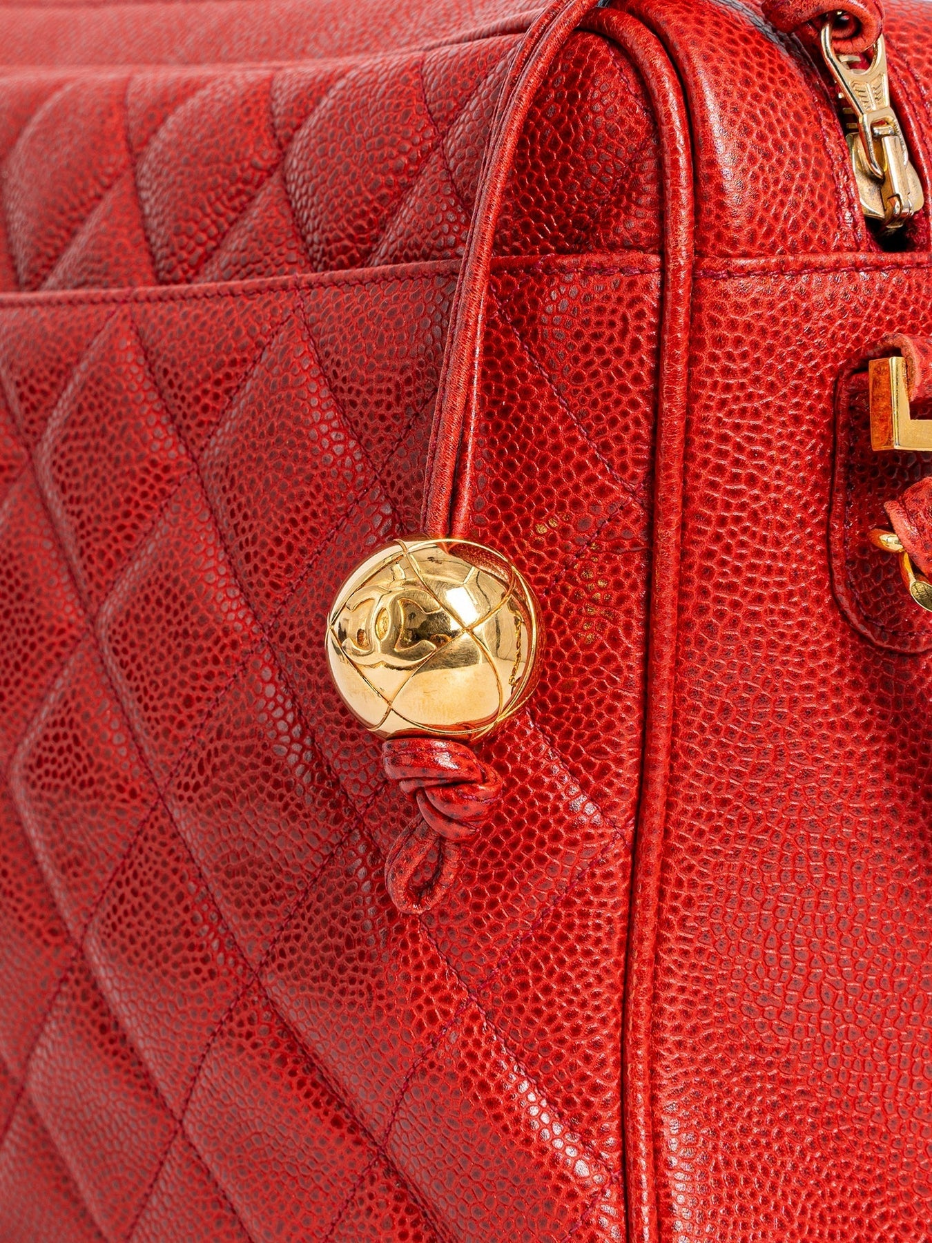 Chanel CC Logo Flap Messenger Bag or . It is in red quilted caviar leather, featuring a 24K gold plated prominent gold CC logo lock for the front pocket and one rear patch pocket. It has a top zippered closure that opens up to a spacious leather lined interior with two zipper pockets. The zipper pull is in red leather with a gold CC logo ornament and has a red leather cross body strap.