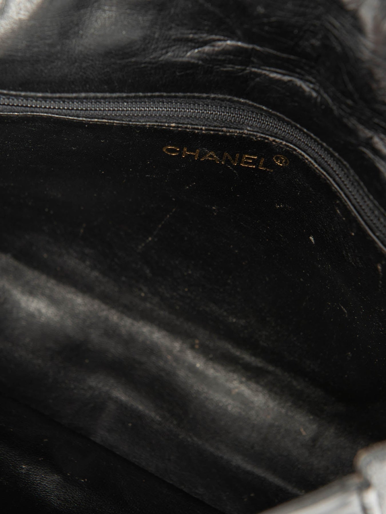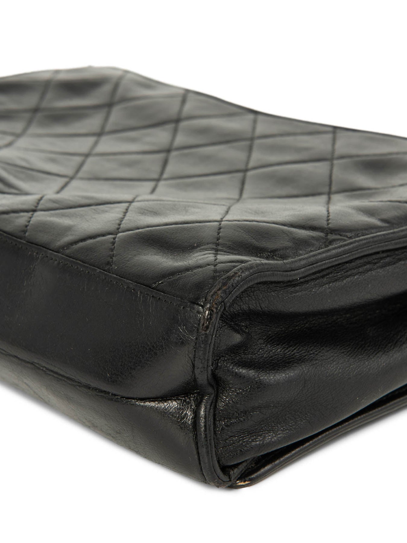 CHANEL CC Logo Quilted Leather Messenger Bag or . This CHANEL bag is in quilted black leather featuring stitched CC logo on the top. The bag has a magnetic snap button flap closure and leather lined interior with one zippered pocket. The bag features two patch pockets: one on the front and the back.