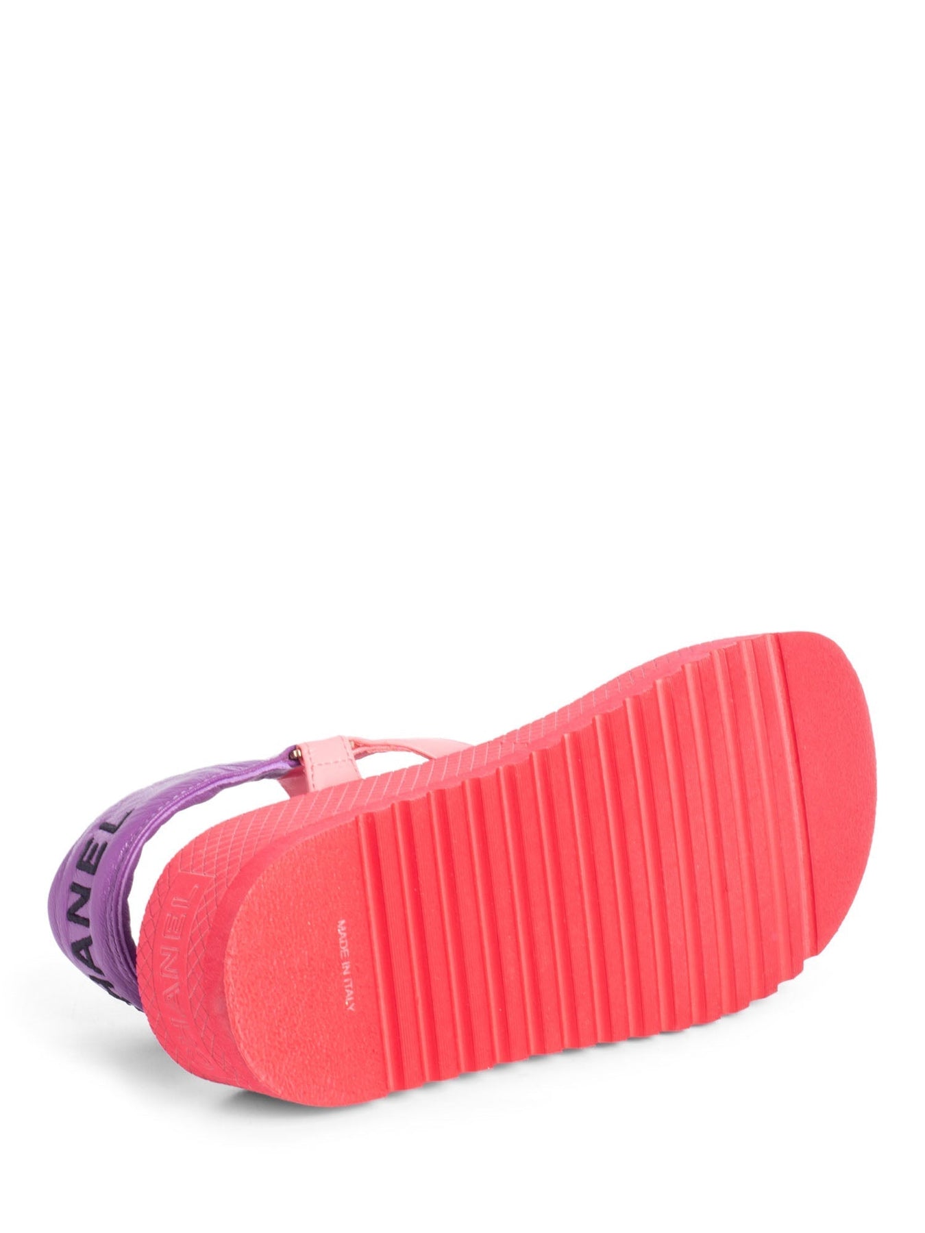 CHANEL Platform Sandals or . These platform sandals are in red leather with a gold toned CC Logo. They feature multicolor quilted leather straps & padding, CC logo on the heel, and a large red foam midsole on top of a textured synthetic outsole.