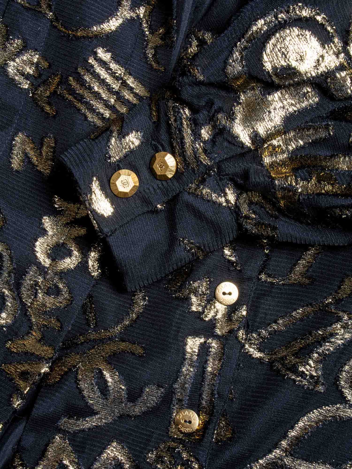 Top Quality Chanel CC Logo Silk New York Graffiti Button Up Blouse Black Gold
