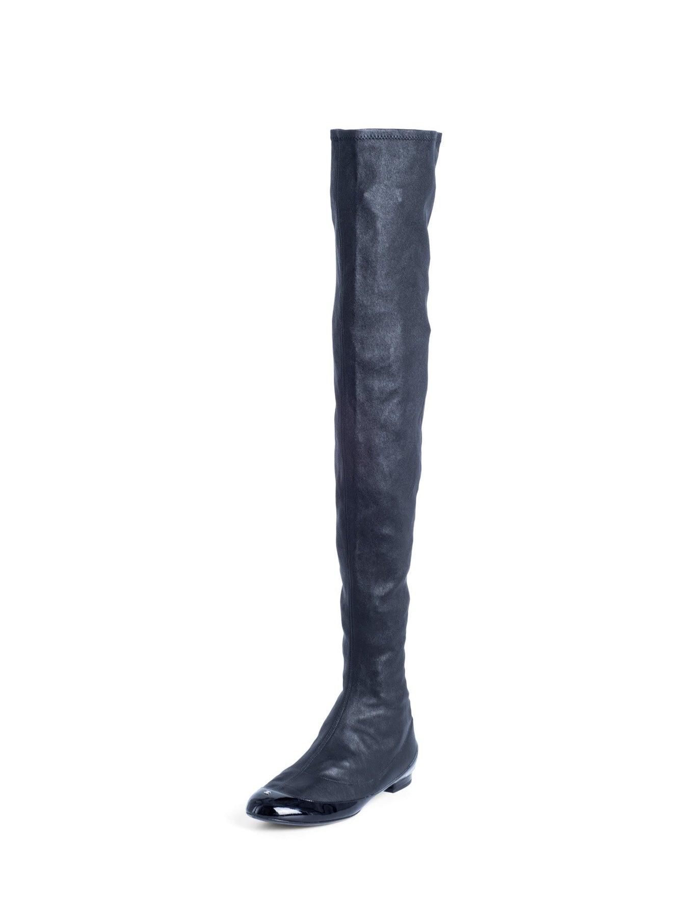 Top Quality Chanel CC Logo Stretchy Leather Cap Toe Over The Knee Boots Black