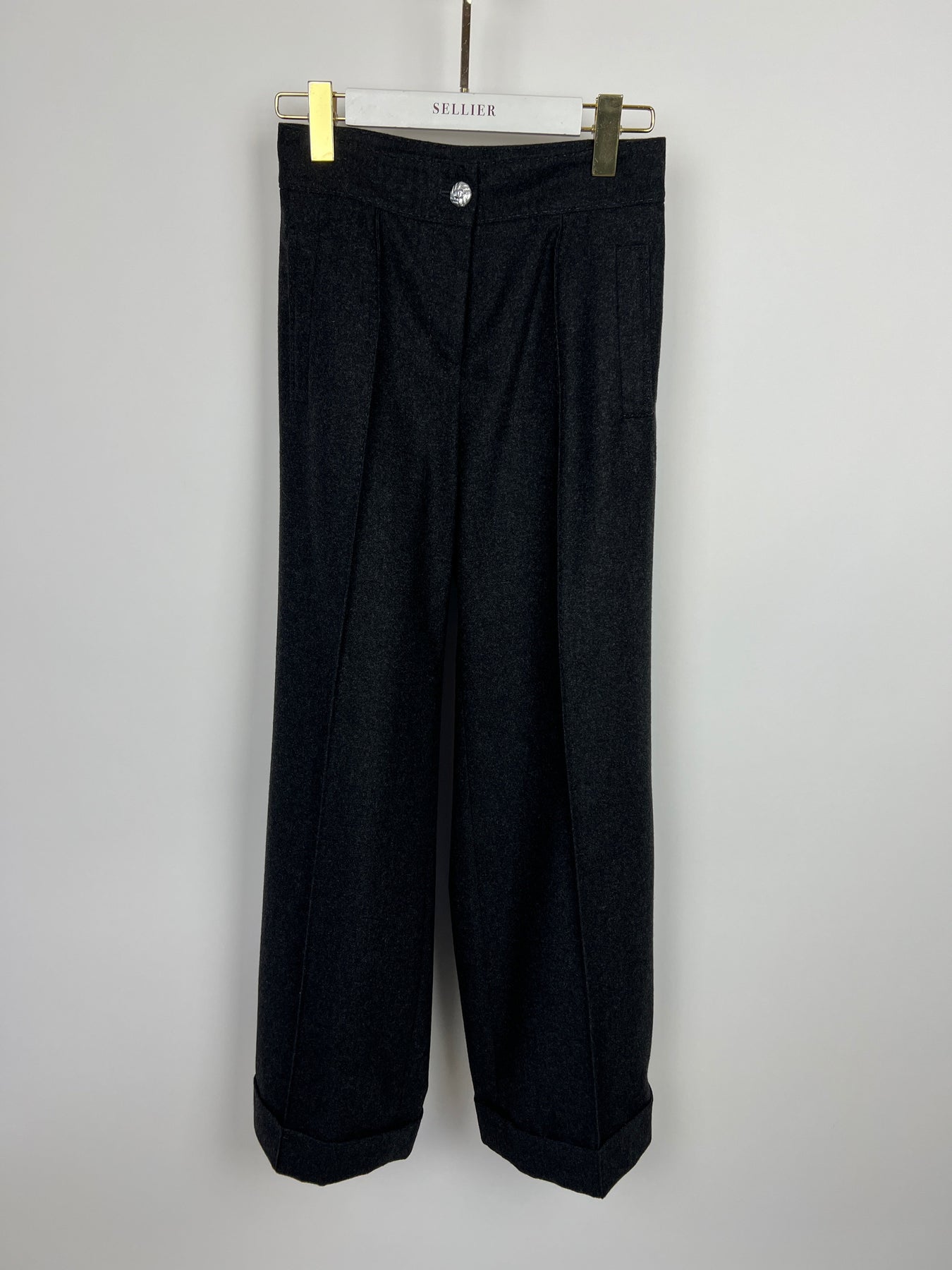 Chanel Charcoal High-Waisted Wool Trousers Size FR 34 (UK 6)