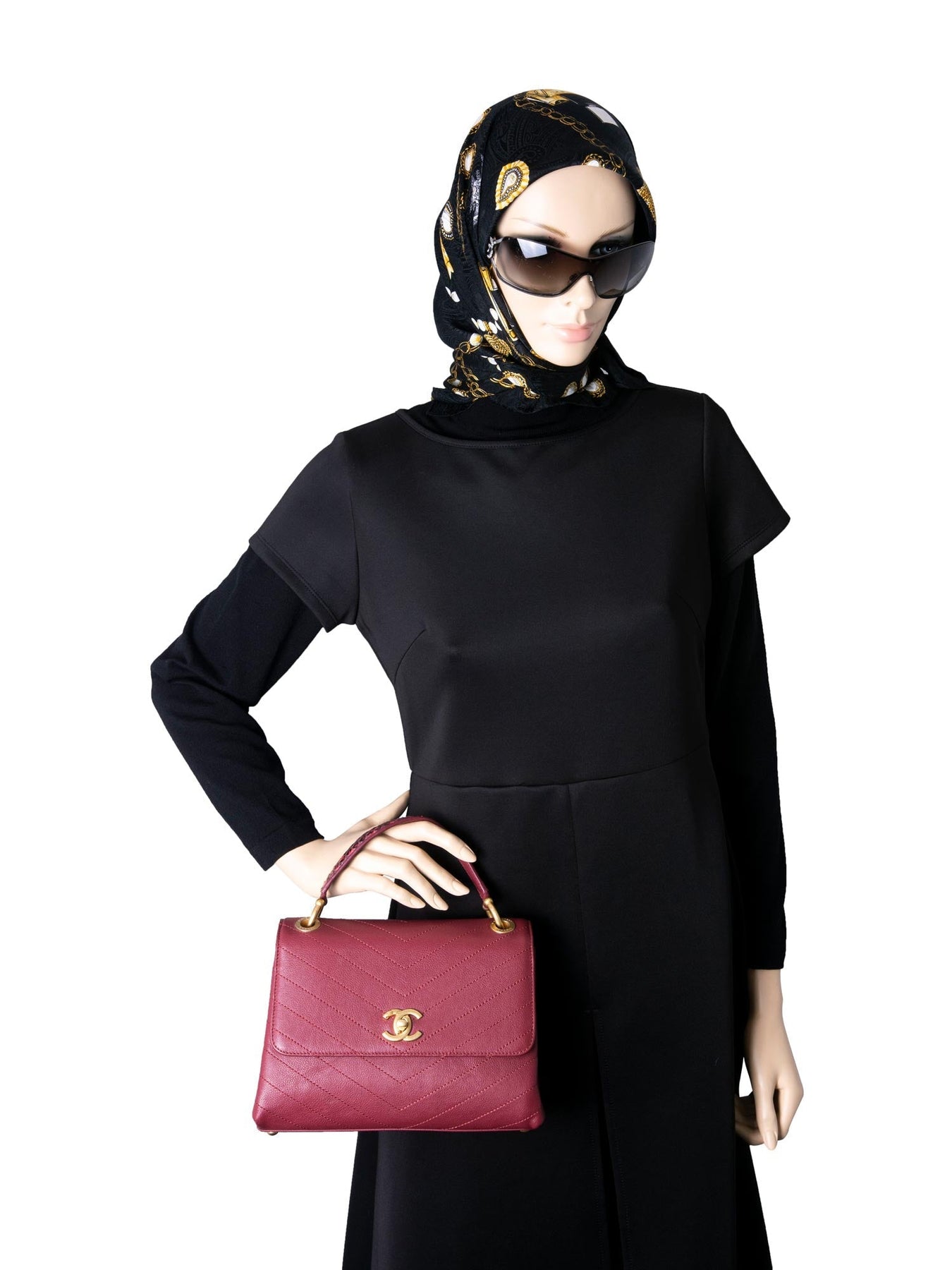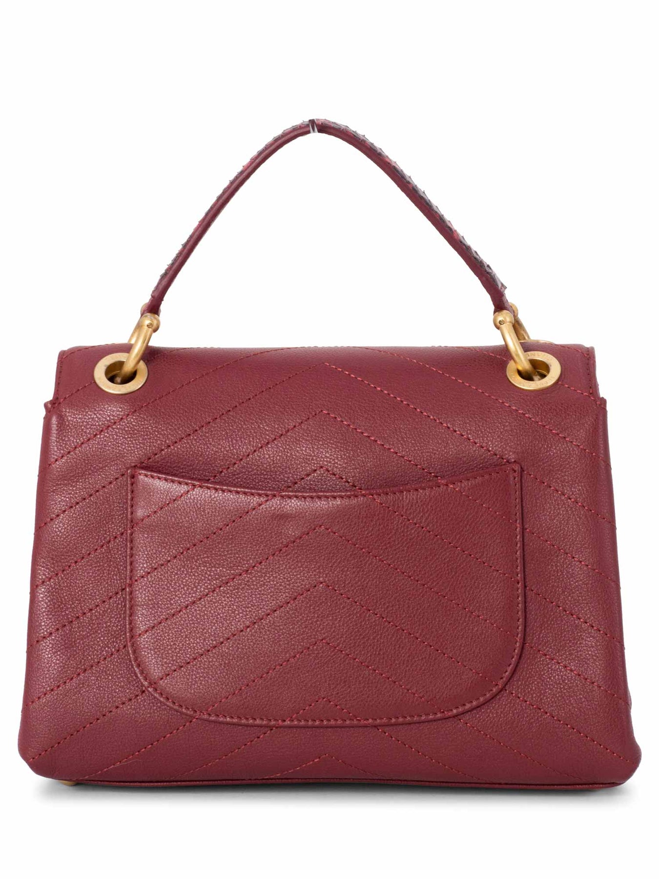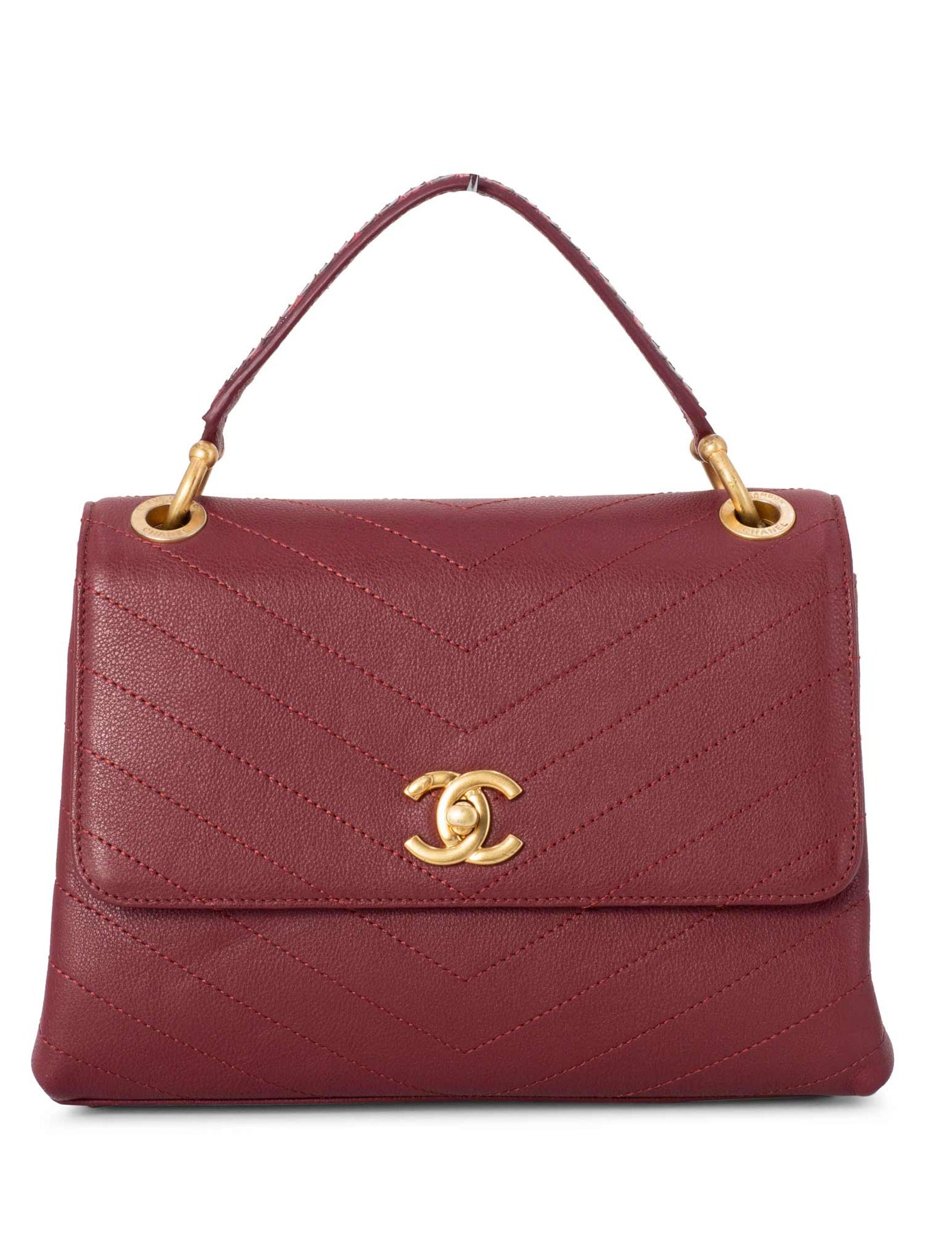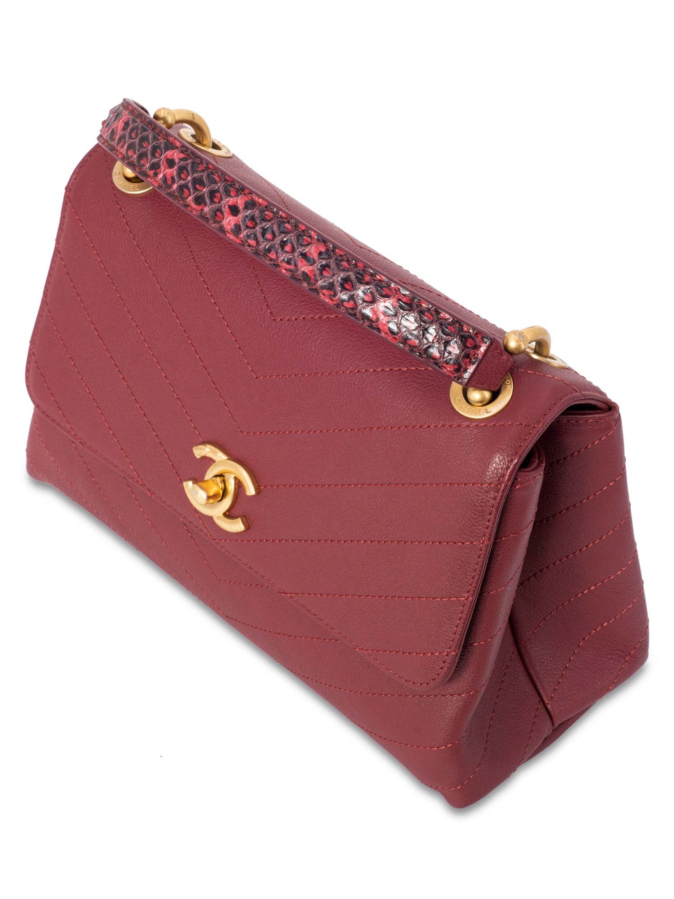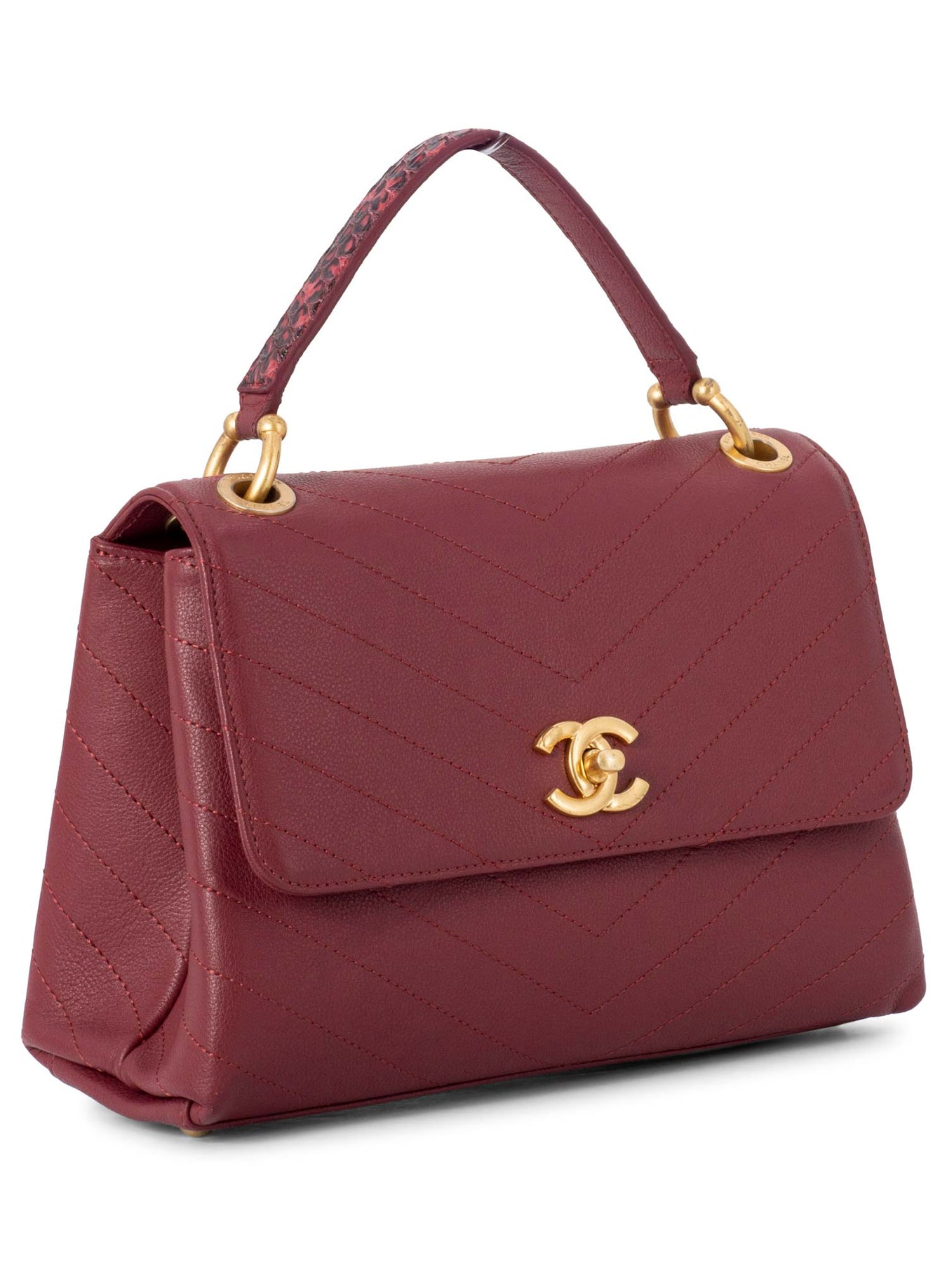 Chanel Top Handle Bag or . This bag is in burgundy quilted chevron caviar leather with gold hardware. It features a beautiful handle in python skin, cc logo front closure, single patch pocket at back, burgundy lining, two interior sections and one zipped pocket.