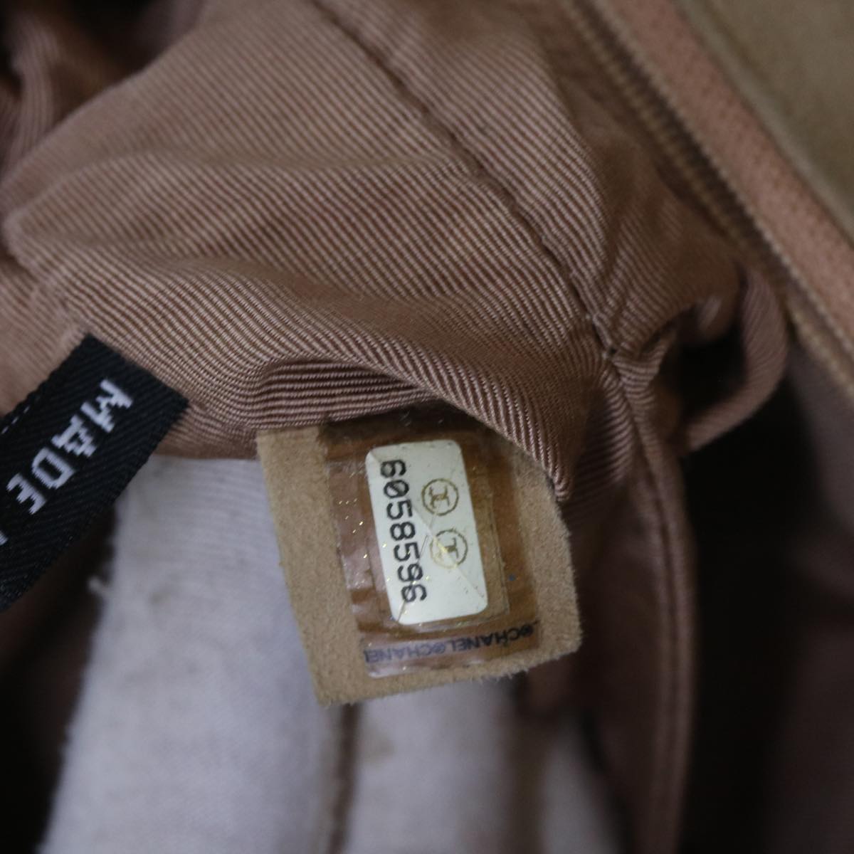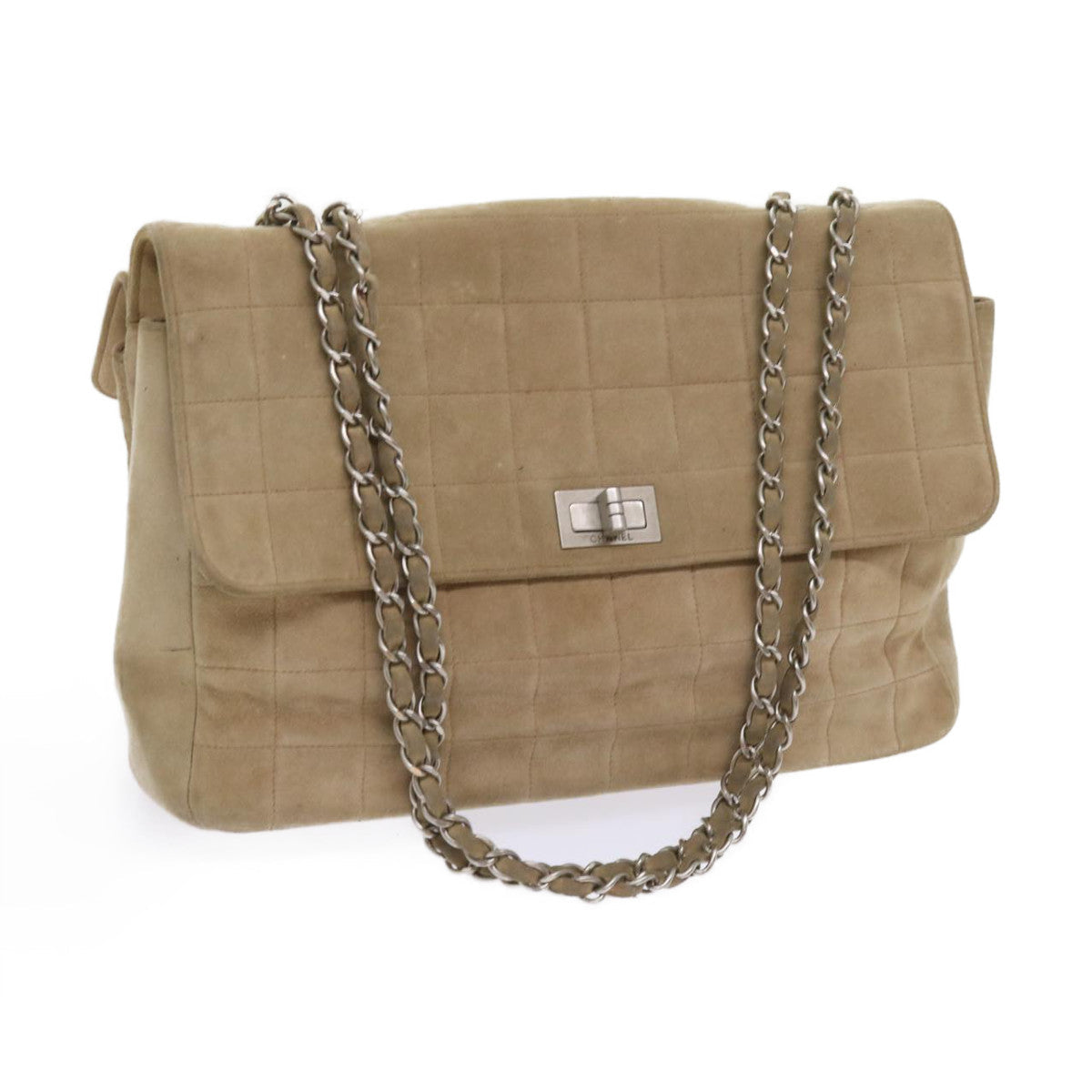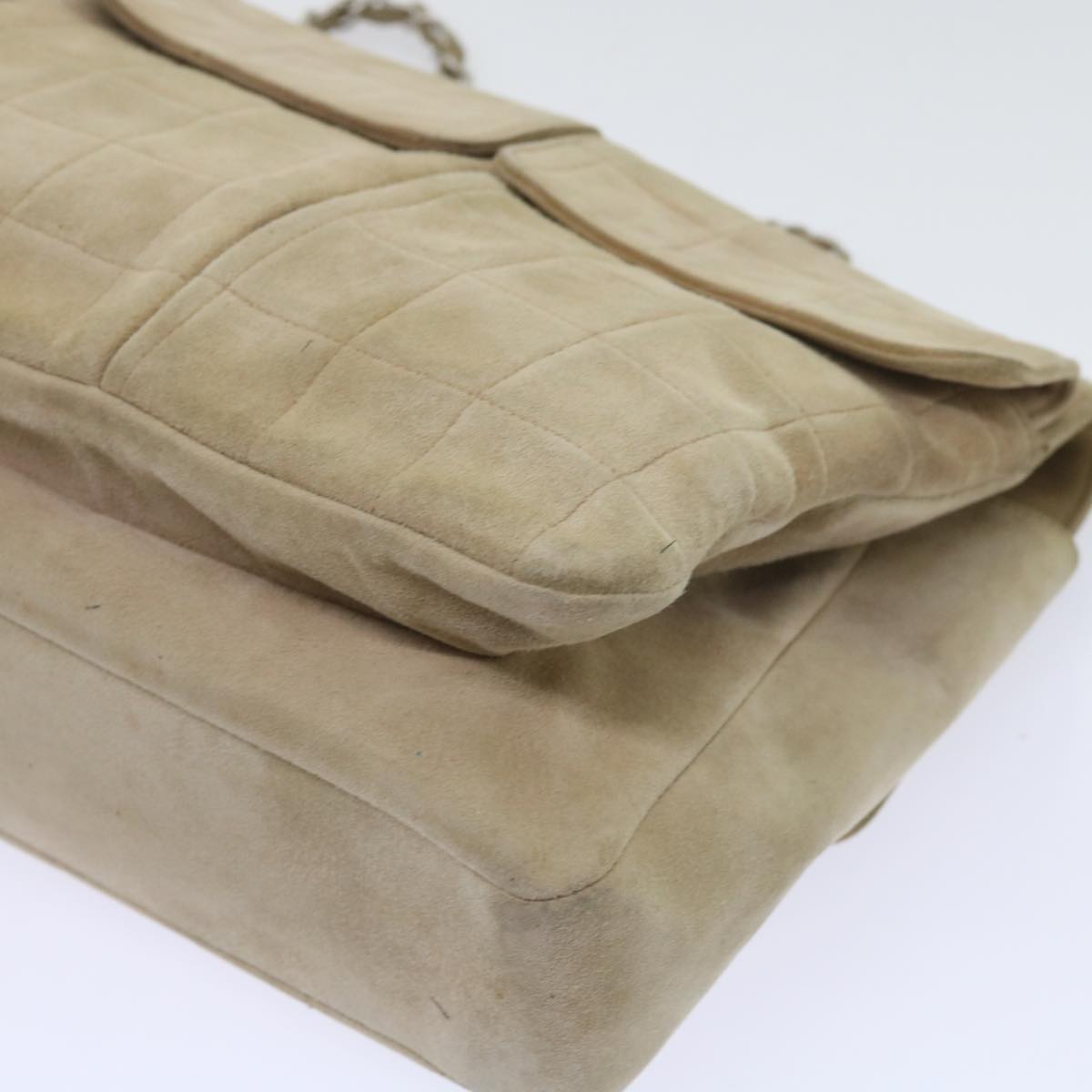 CHANEL Choco Bar Chain Shoulder Bag Suede Beige CC Auth bs11679