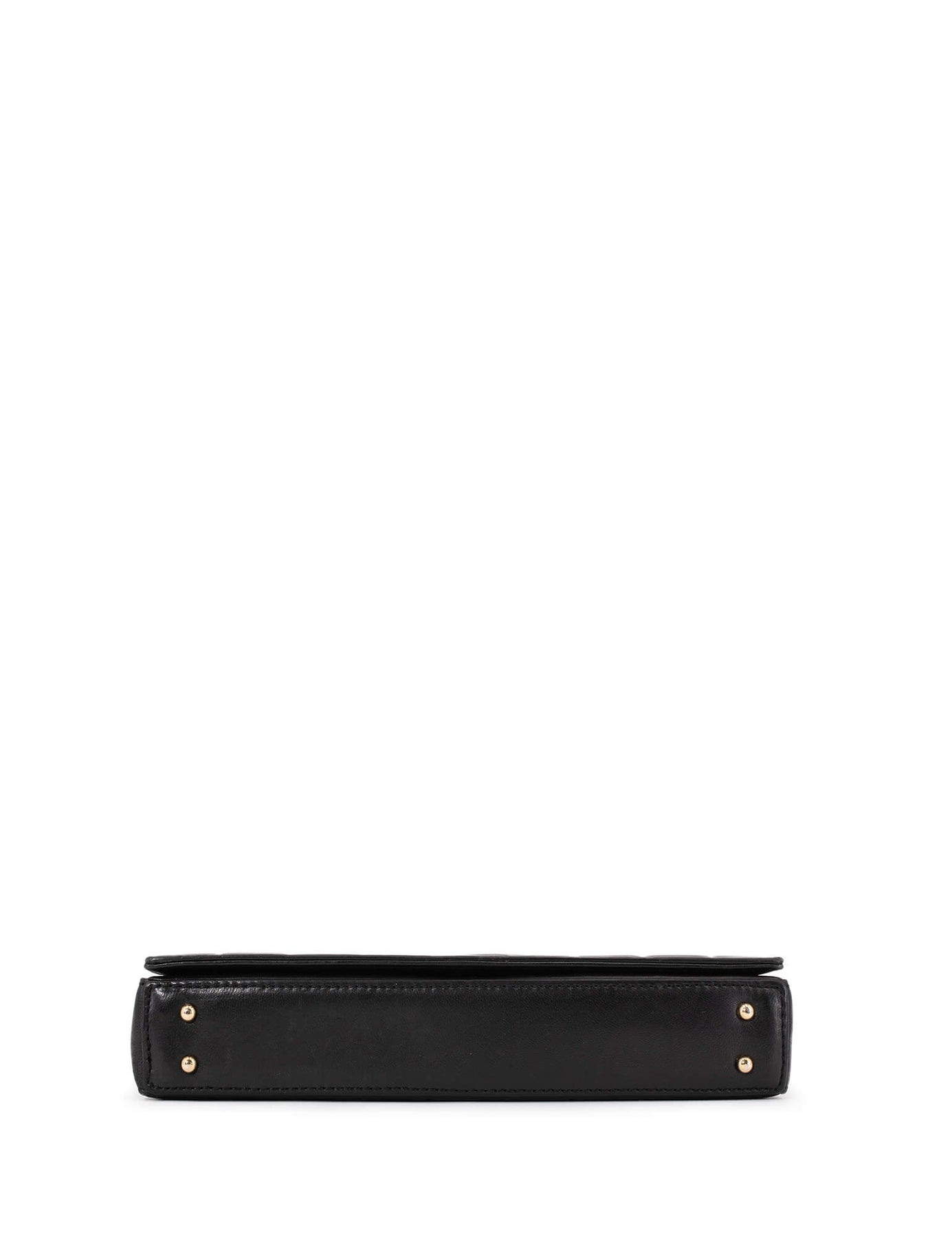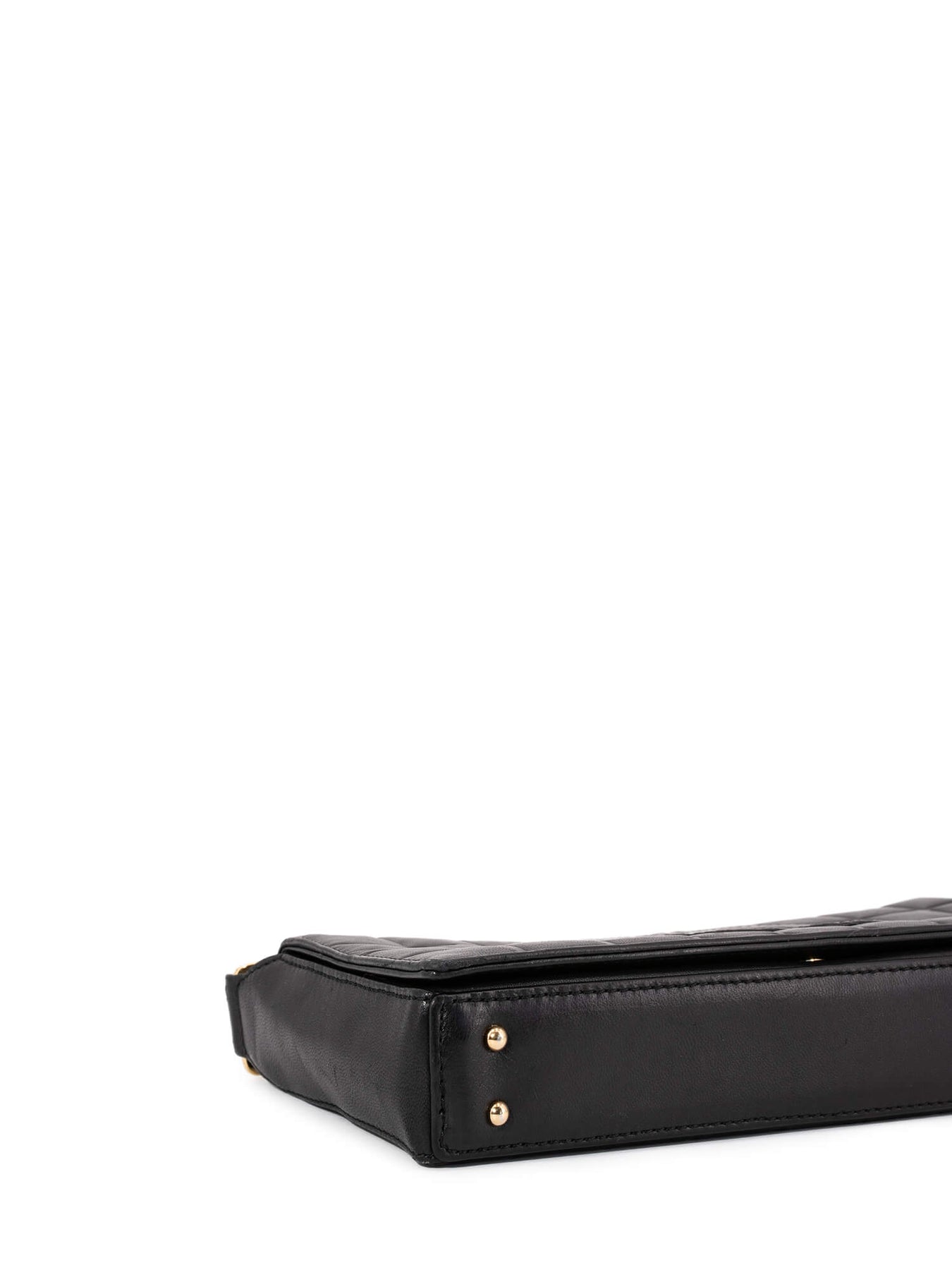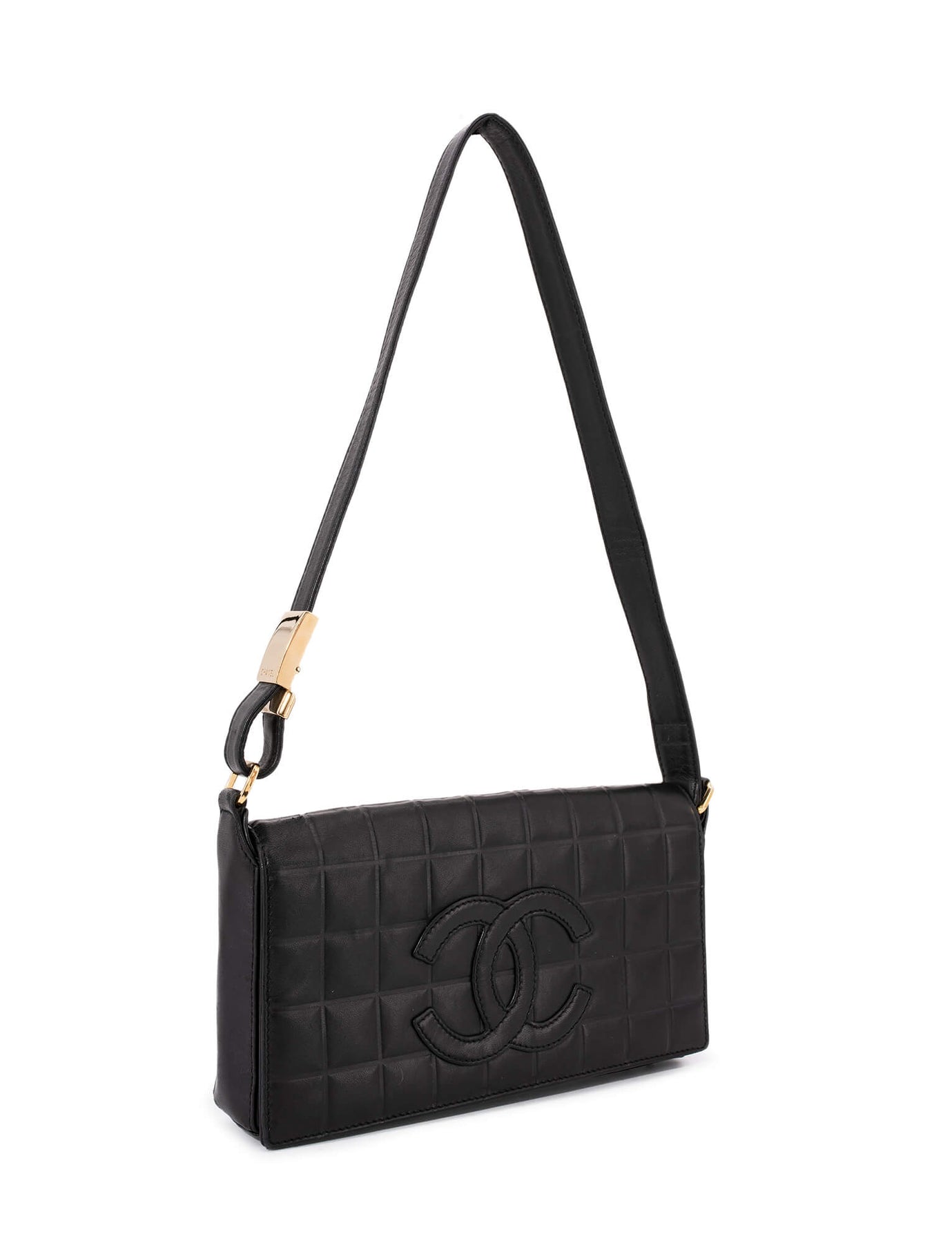 Chanel Chocolate Bar Flap Bag or . This bag is in black quilted calfskin leather with gold tone hardware. It features frontal stitched CC logo, snap closure, adjustable shoulder strap, and a black interior with one zipped pocket and patch pockets.