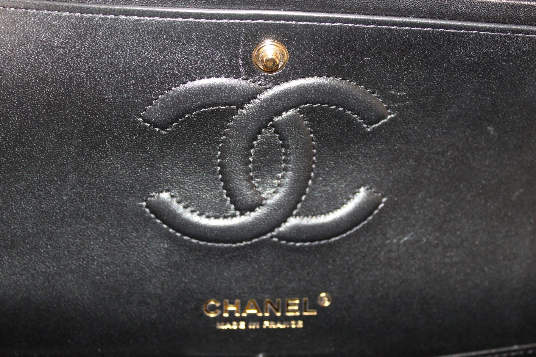 Iconic CC logo twist lock outer Flap with snap button second inner flap