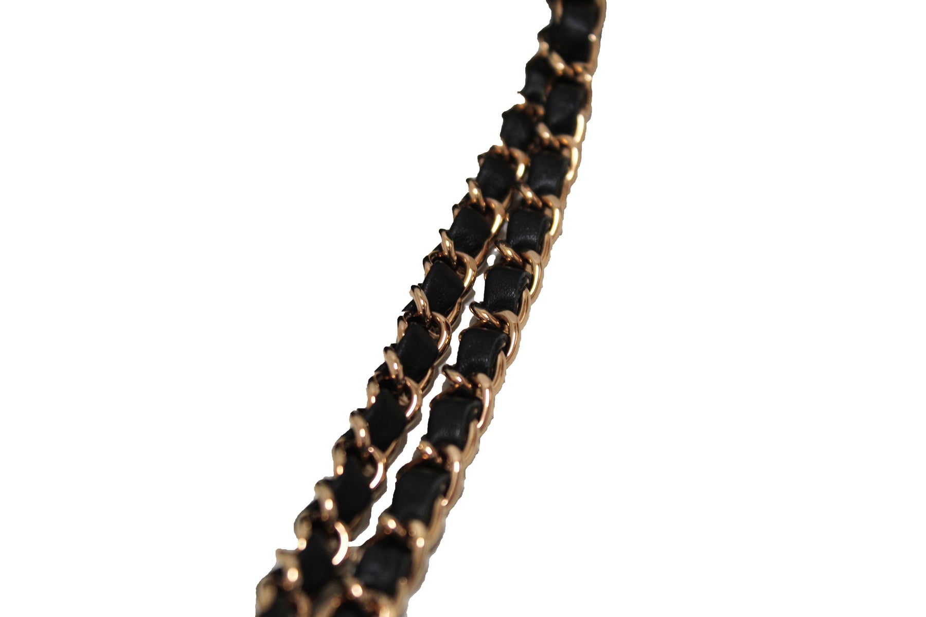 Leather and silver chain intertwined shoulder strap; 9-16" shoulder drop
