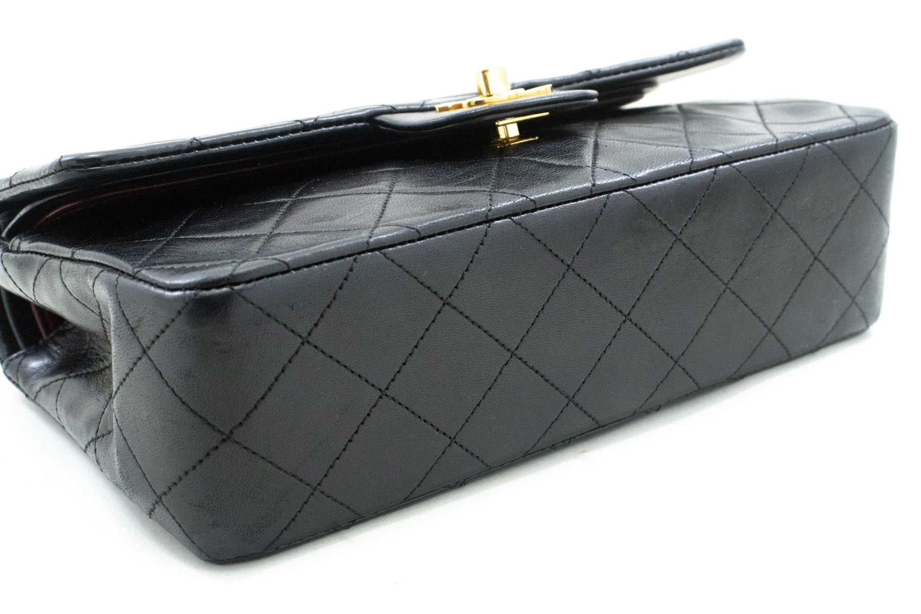 An CHANEL Classic Double New 9" Chain Shoulder Bag Black made of black Lambskin.
