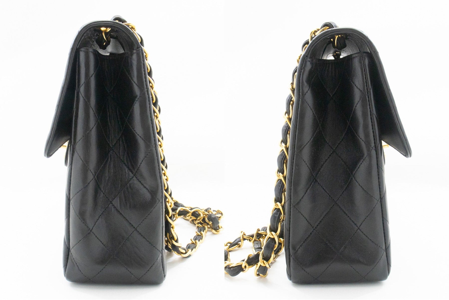 An CHANEL Classic Large 11" Chain Shoulder Bag New Black made of black Lambskin.