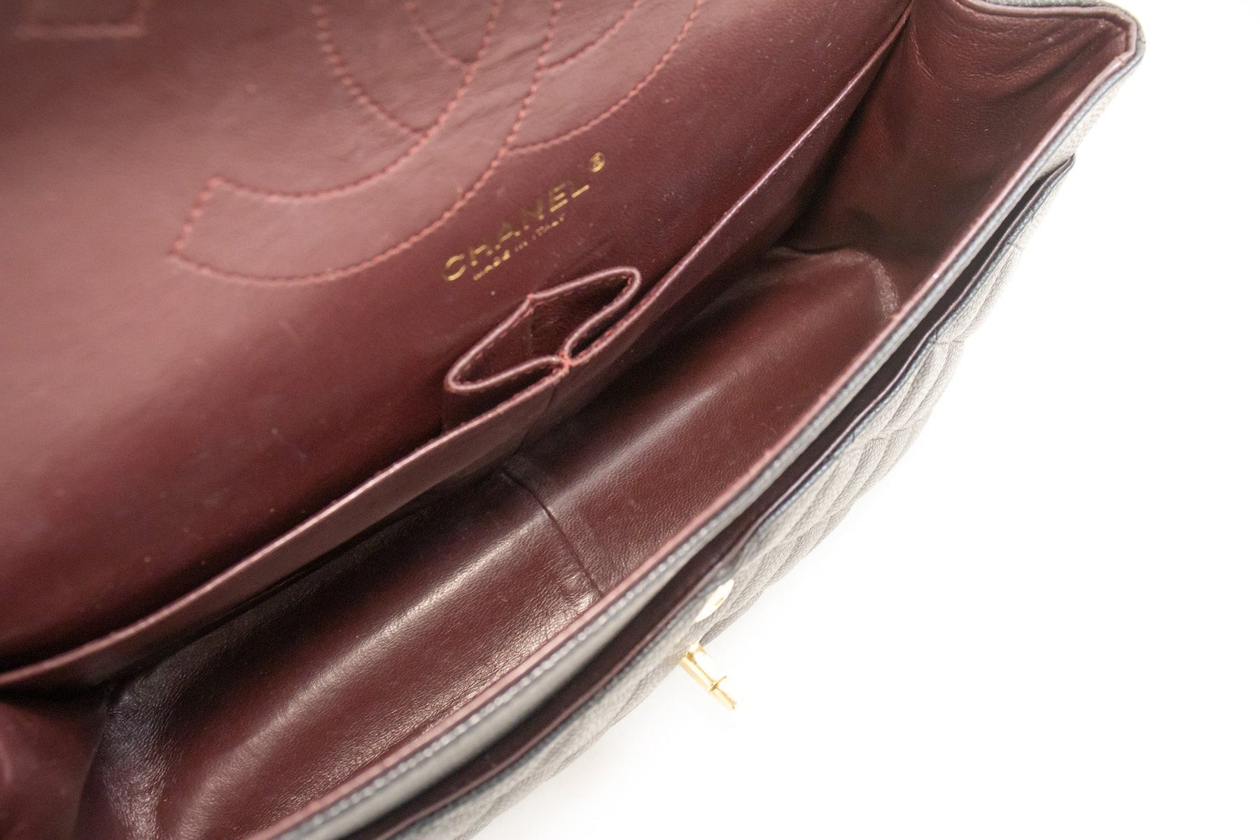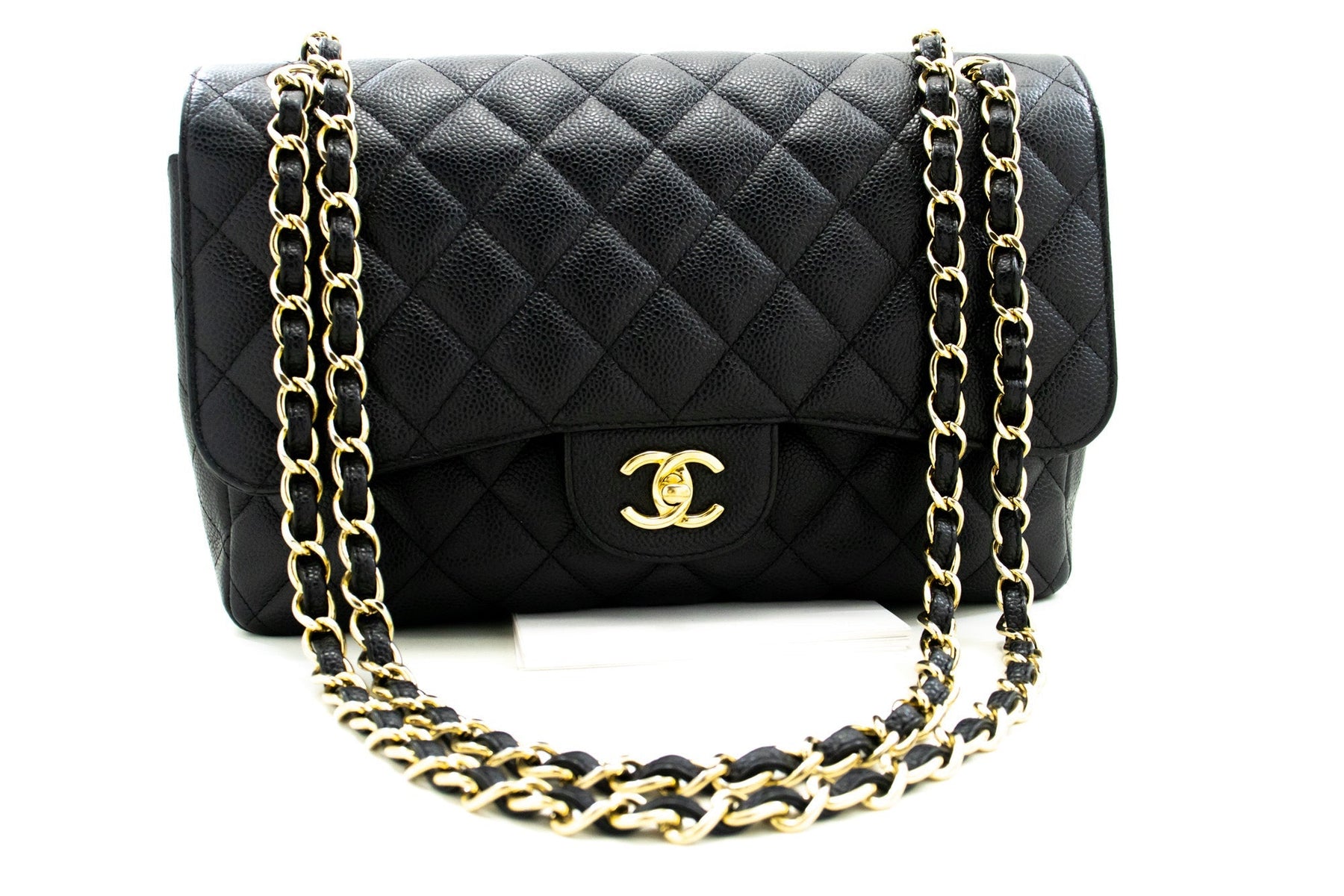 An CHANEL Classic Large 11" Chain Shoulder Bag W New Black Caviar.