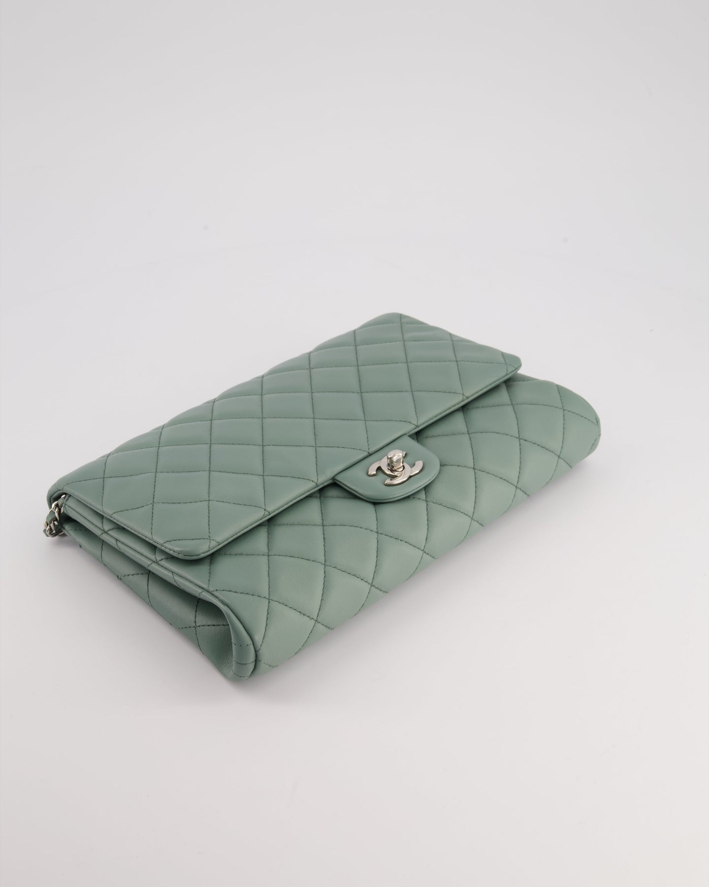 Chanel Cloudy Grey Timeless Clutch on Chain in Lambskin Leather with Silver Hardware