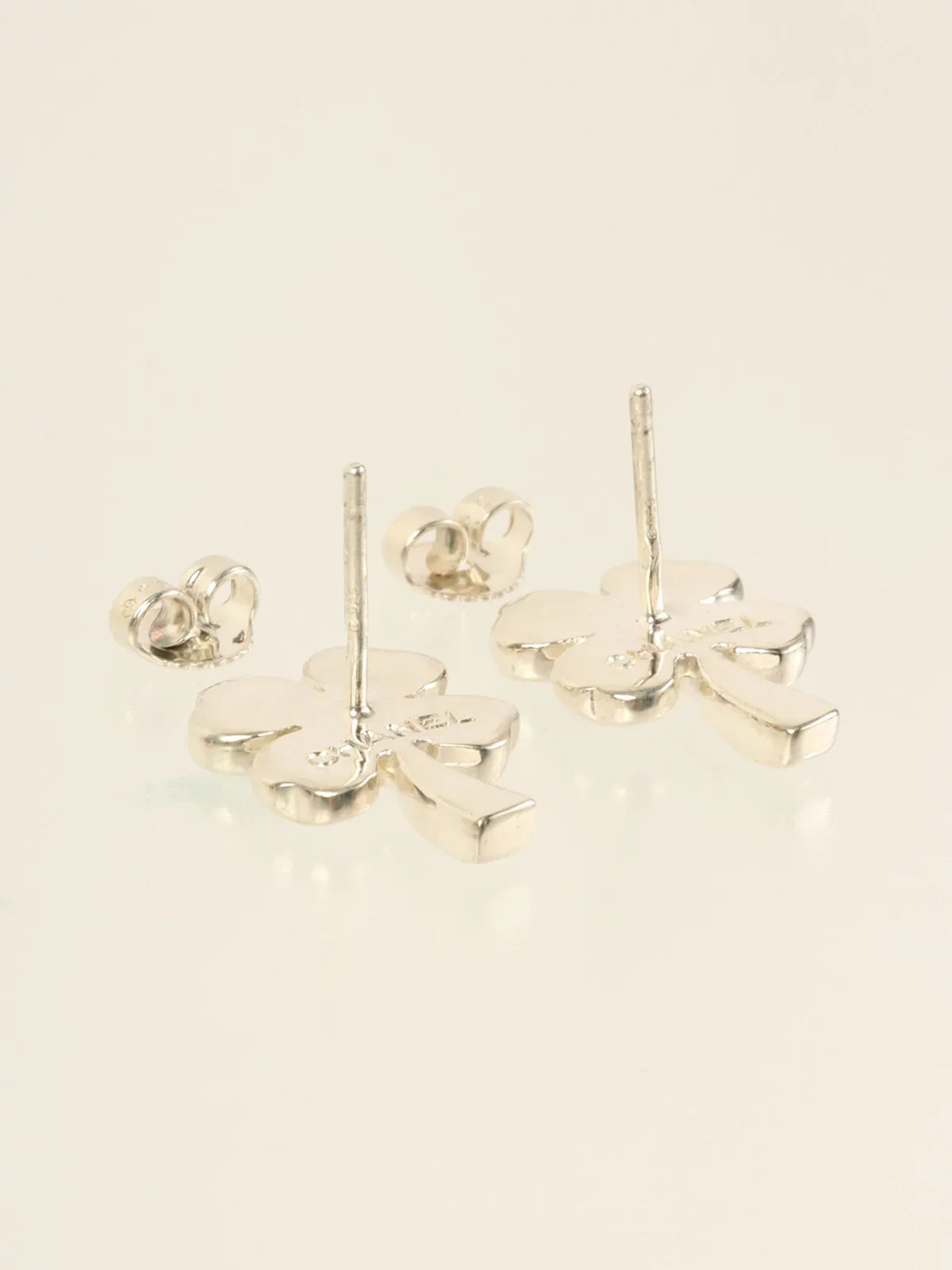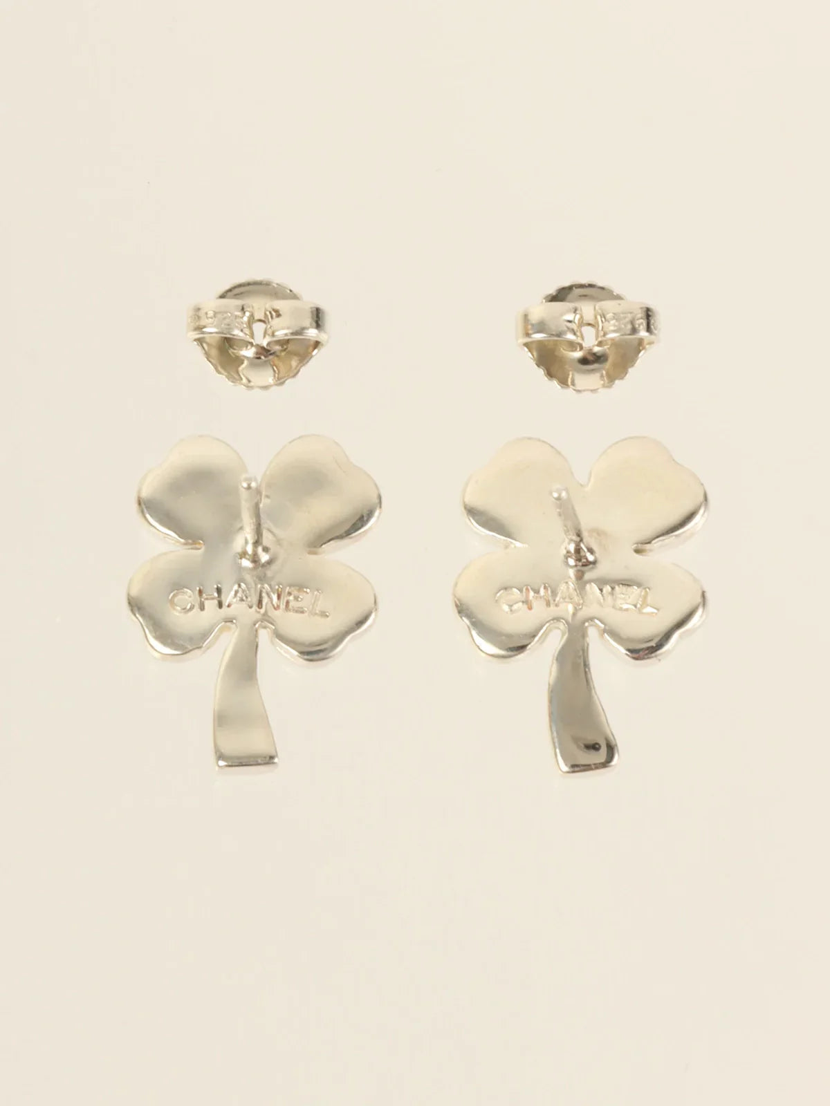 CHANEL Clover Pierced Earrings Silver