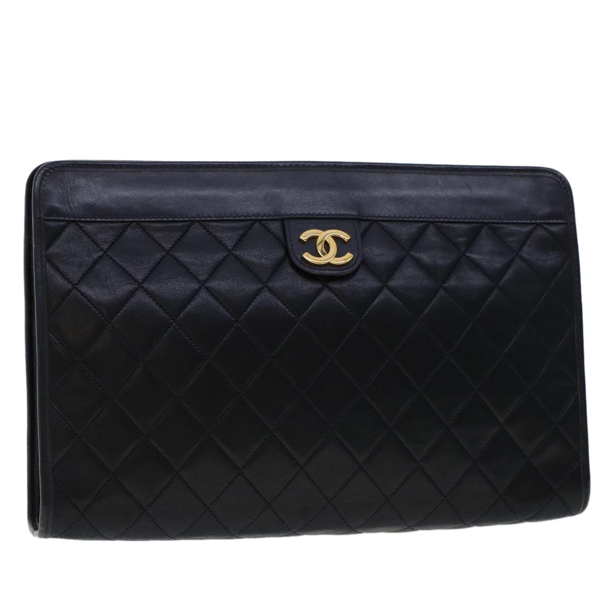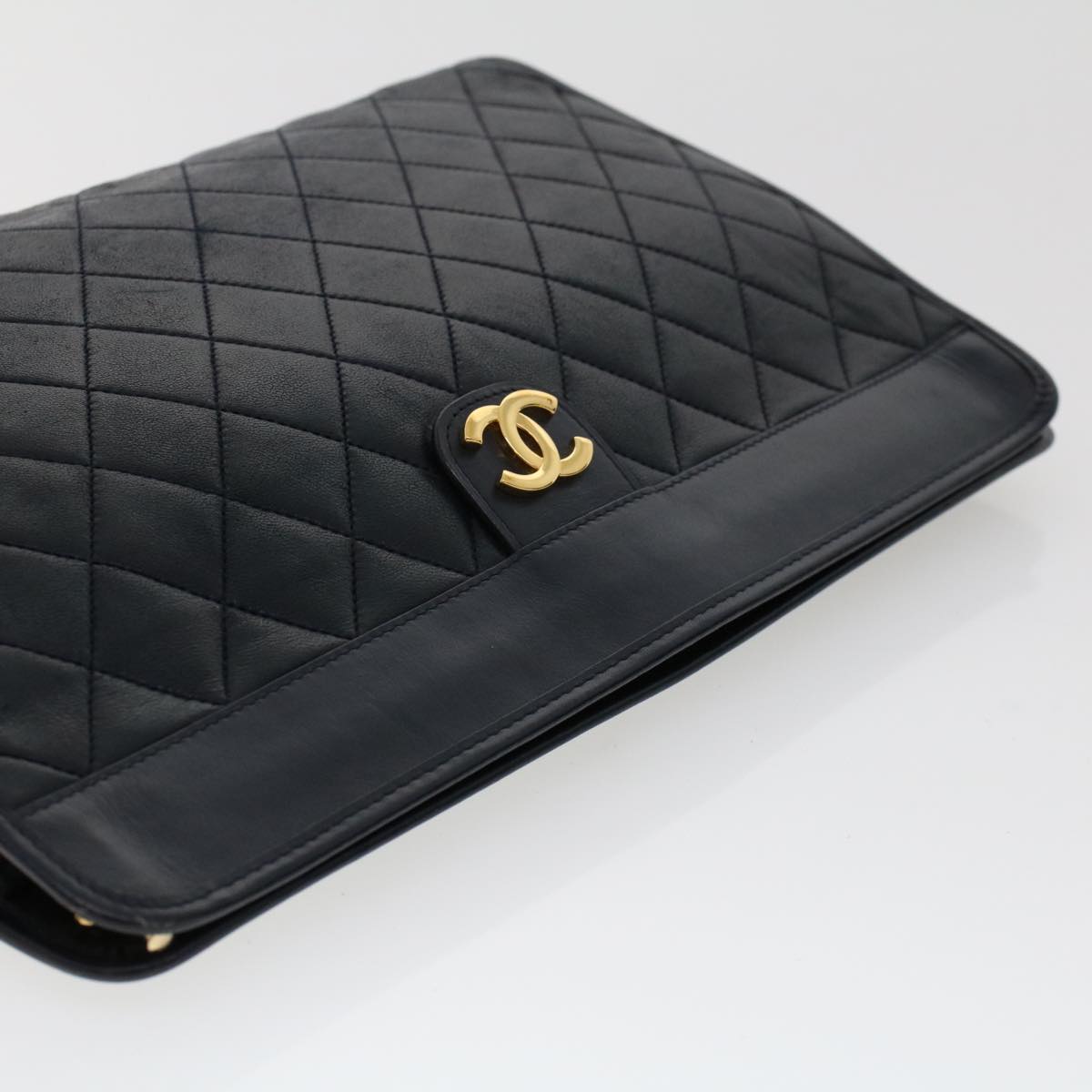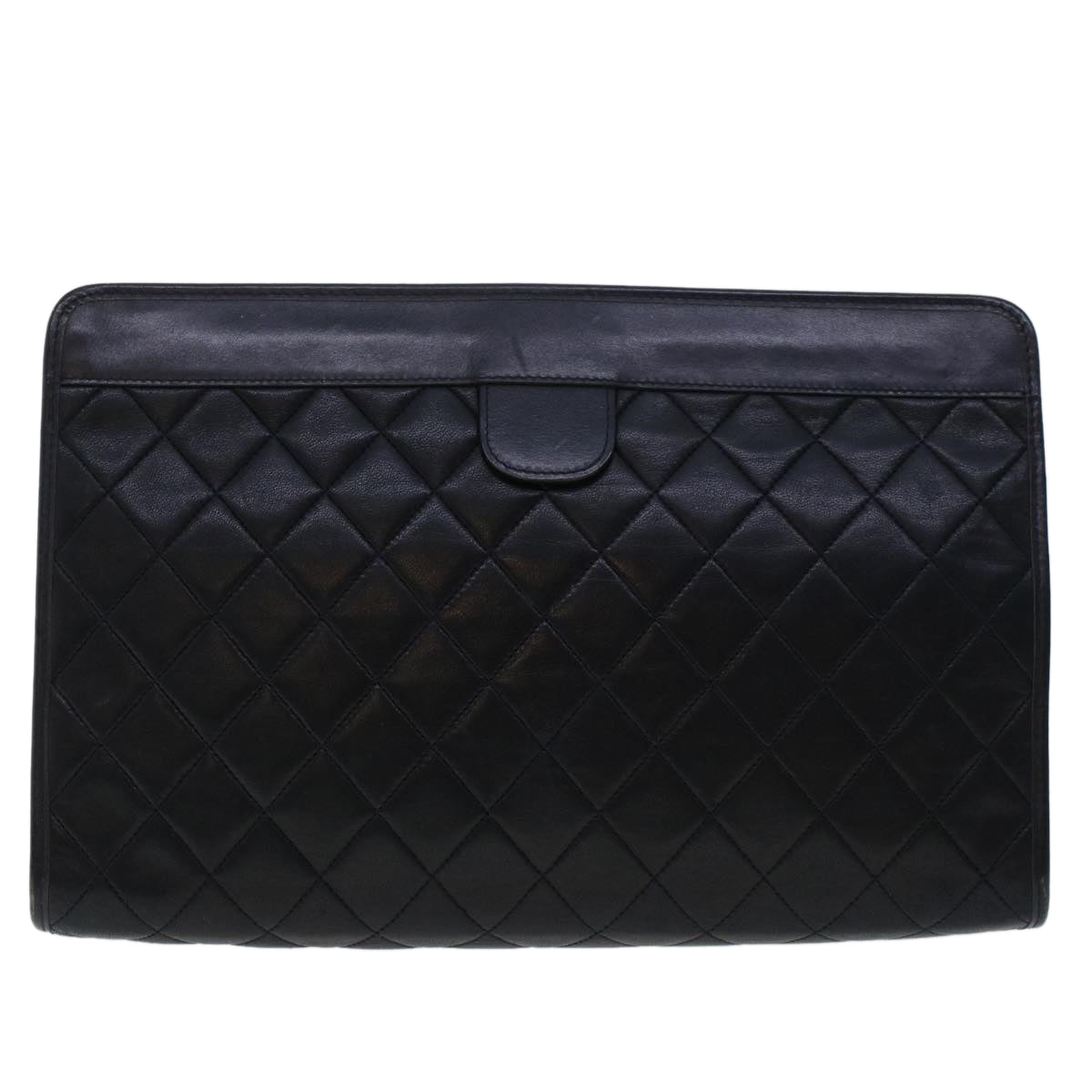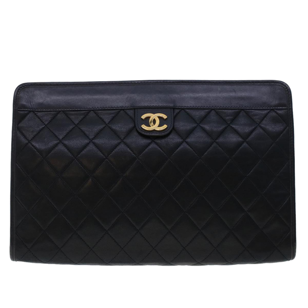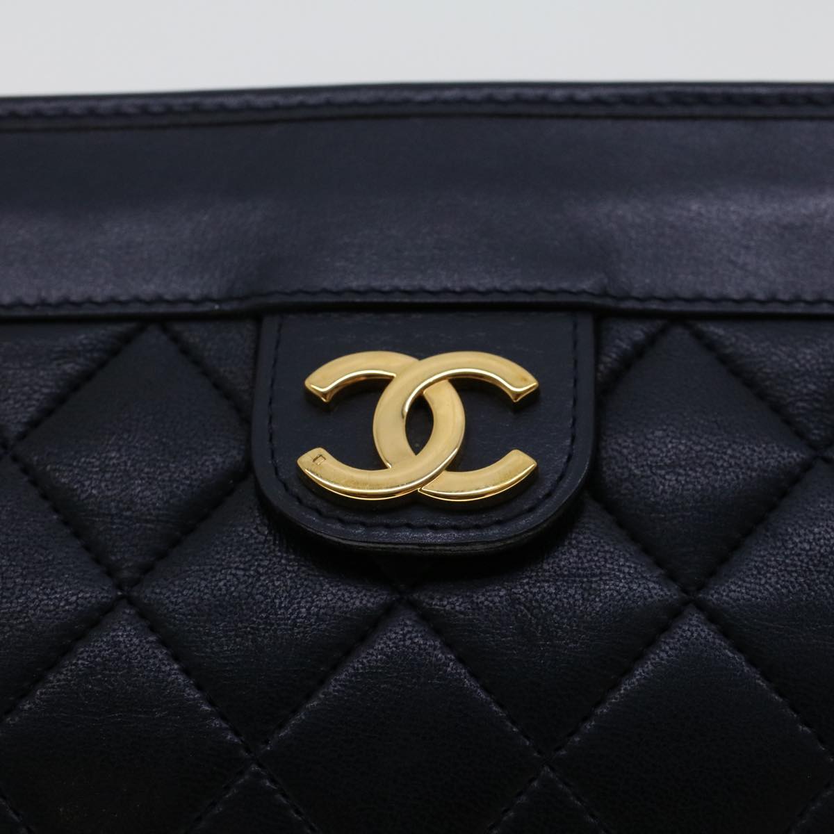 CHANEL Clutch Bag Lamb Skin Black CC Auth am4611