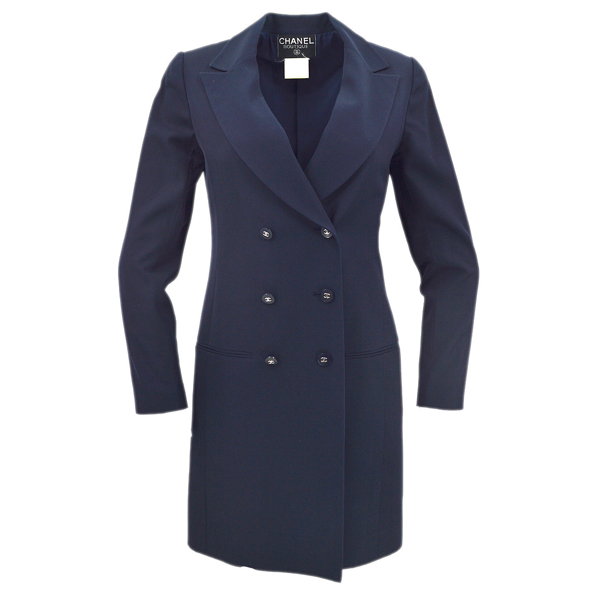 Chanel Coat Navy #36 Engraved / Number Unclear Size Notation size : #36