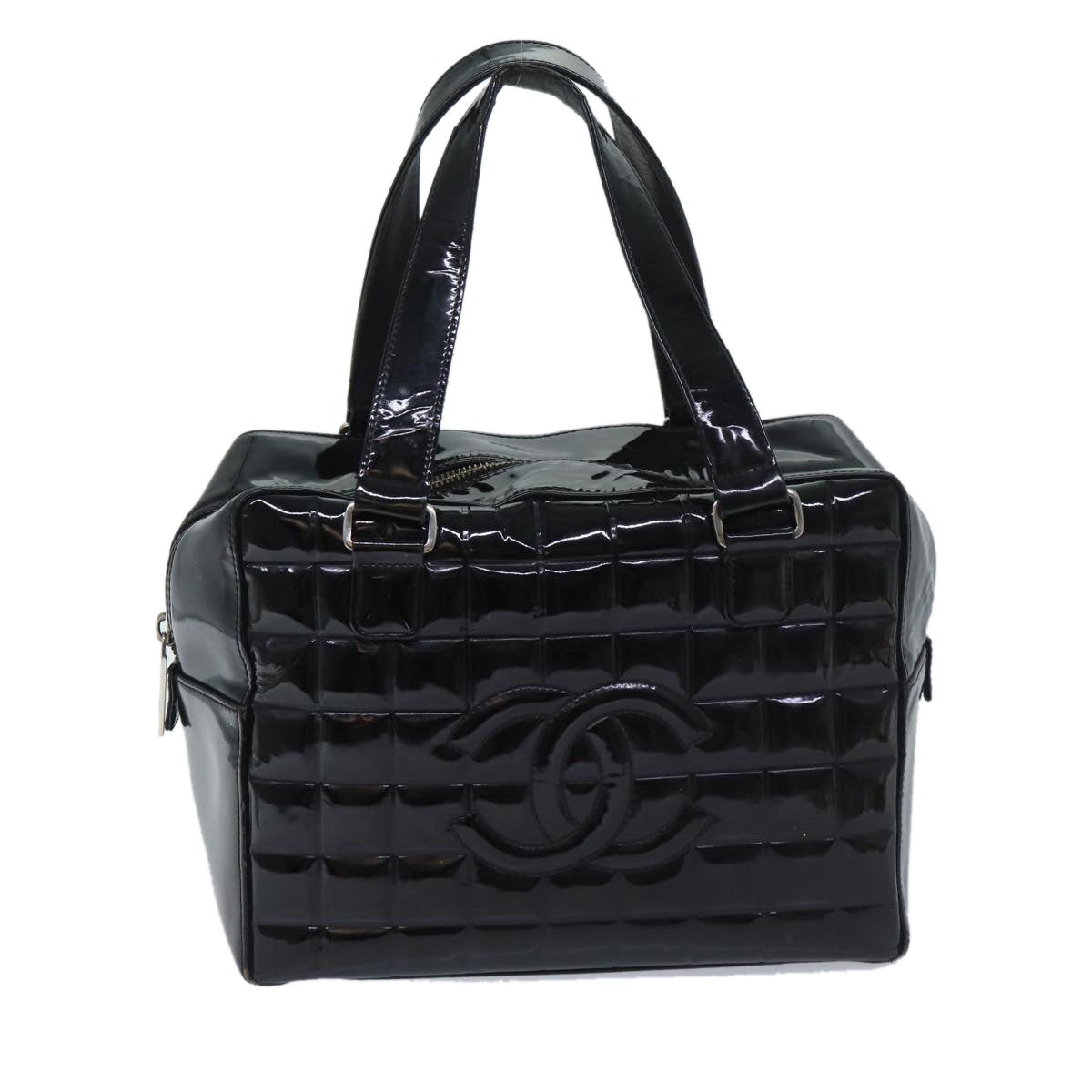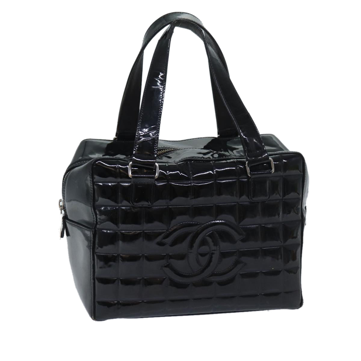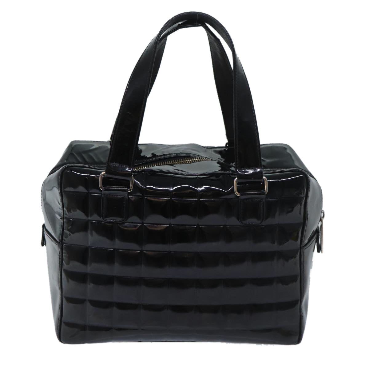 CHANEL COCO Mark Choco Bar Hand Bag Patent leather Black CC Auth bs13238