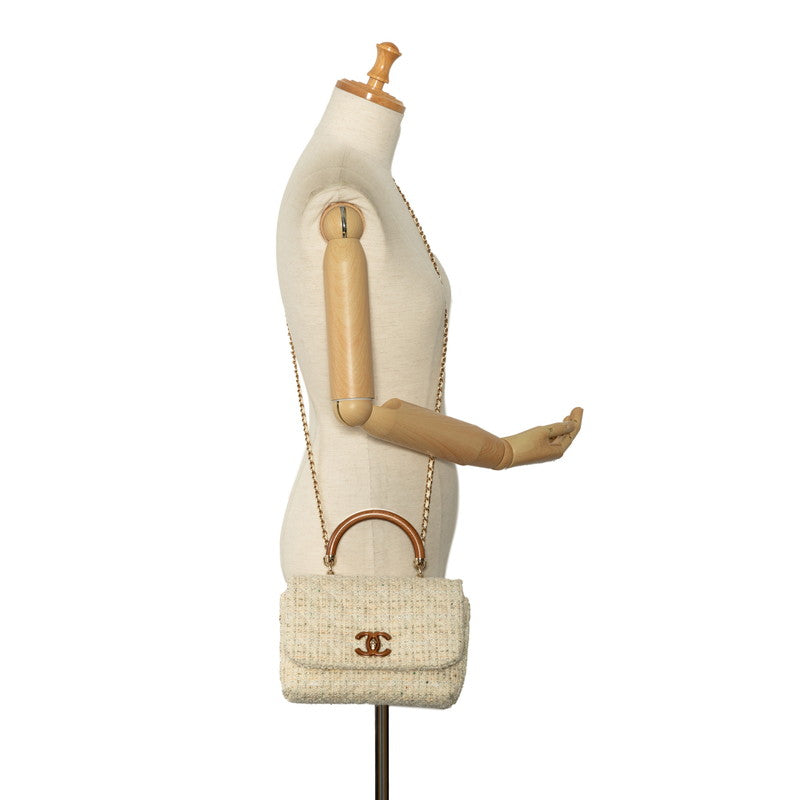 Top Quality Chanel Coco Top Handle Chain Shoulder Bag White Multicolor Tweed Bamboo