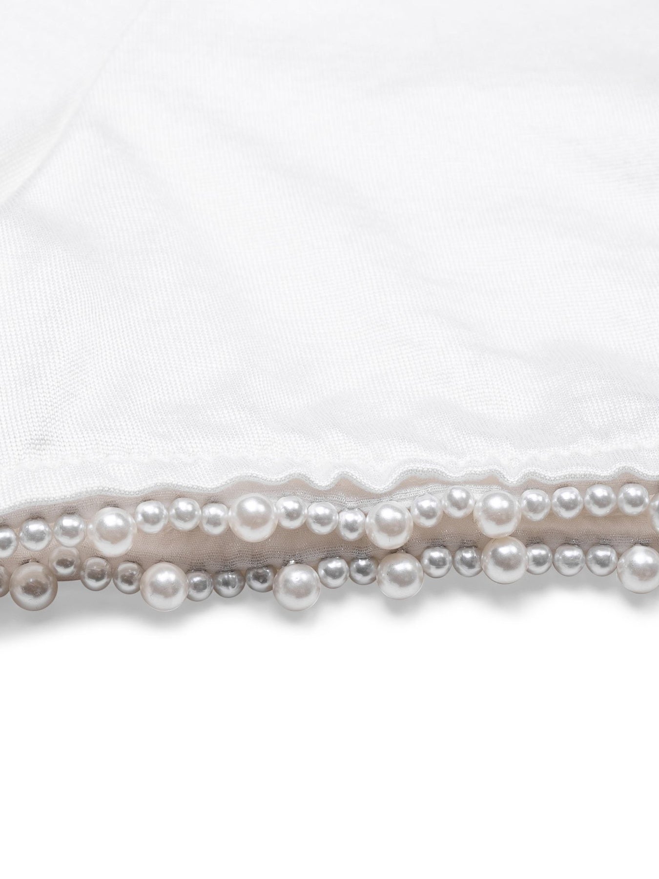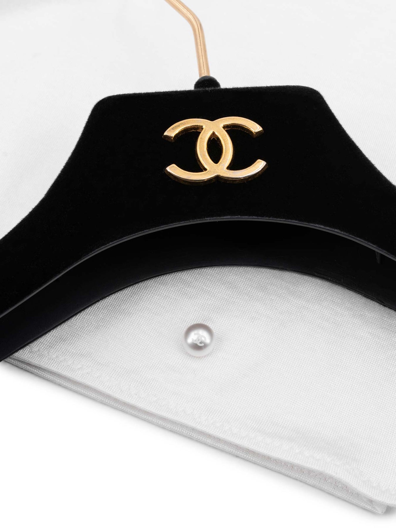 Chanel Top or . This top is in cotton with pearl fringe. It features a scoop neckline, pearl fringed sleeves, and a pearl CC logo at the bottom right. Effortless chic only from Chanel!