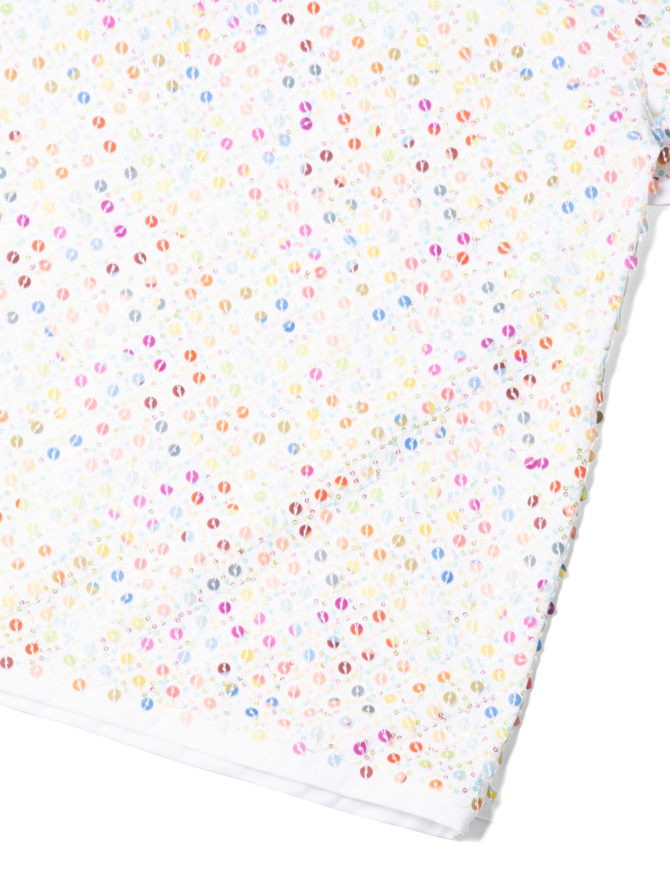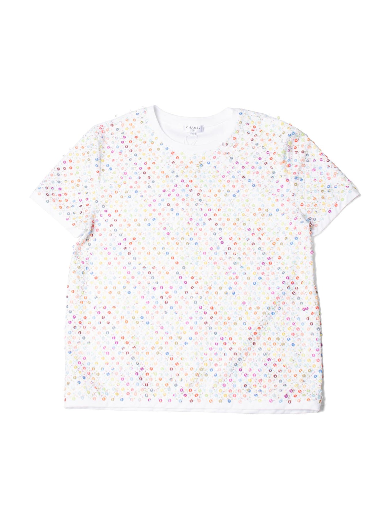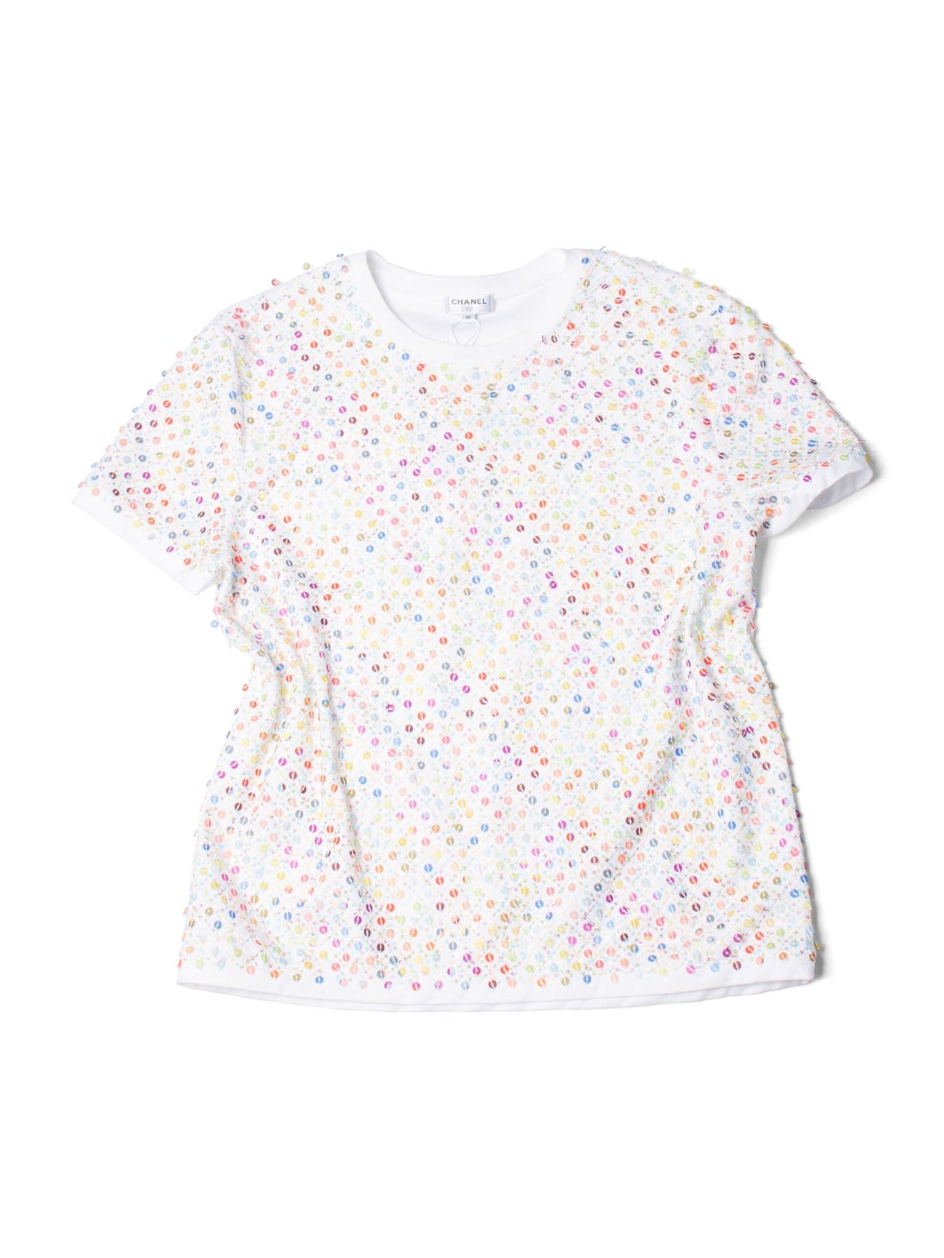 Chanel Cotton Sequin Top or . This top is in white cotton and multi colored sequin. It features scoop neckline, and a large CC logo on the back. The perfect gift for Chanel lovers. Pairs perfectly with leather leggings or jeans!