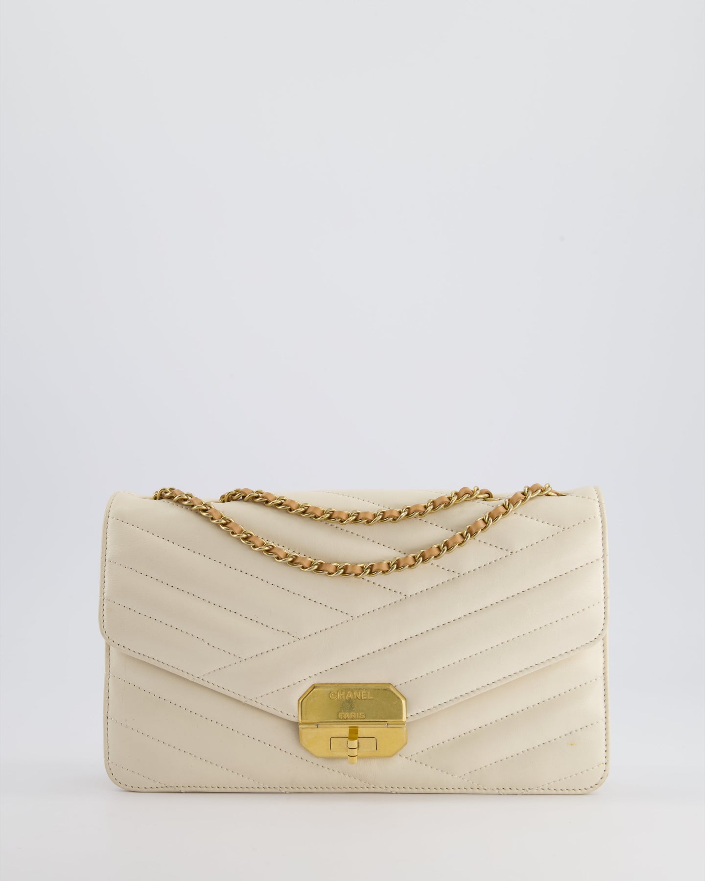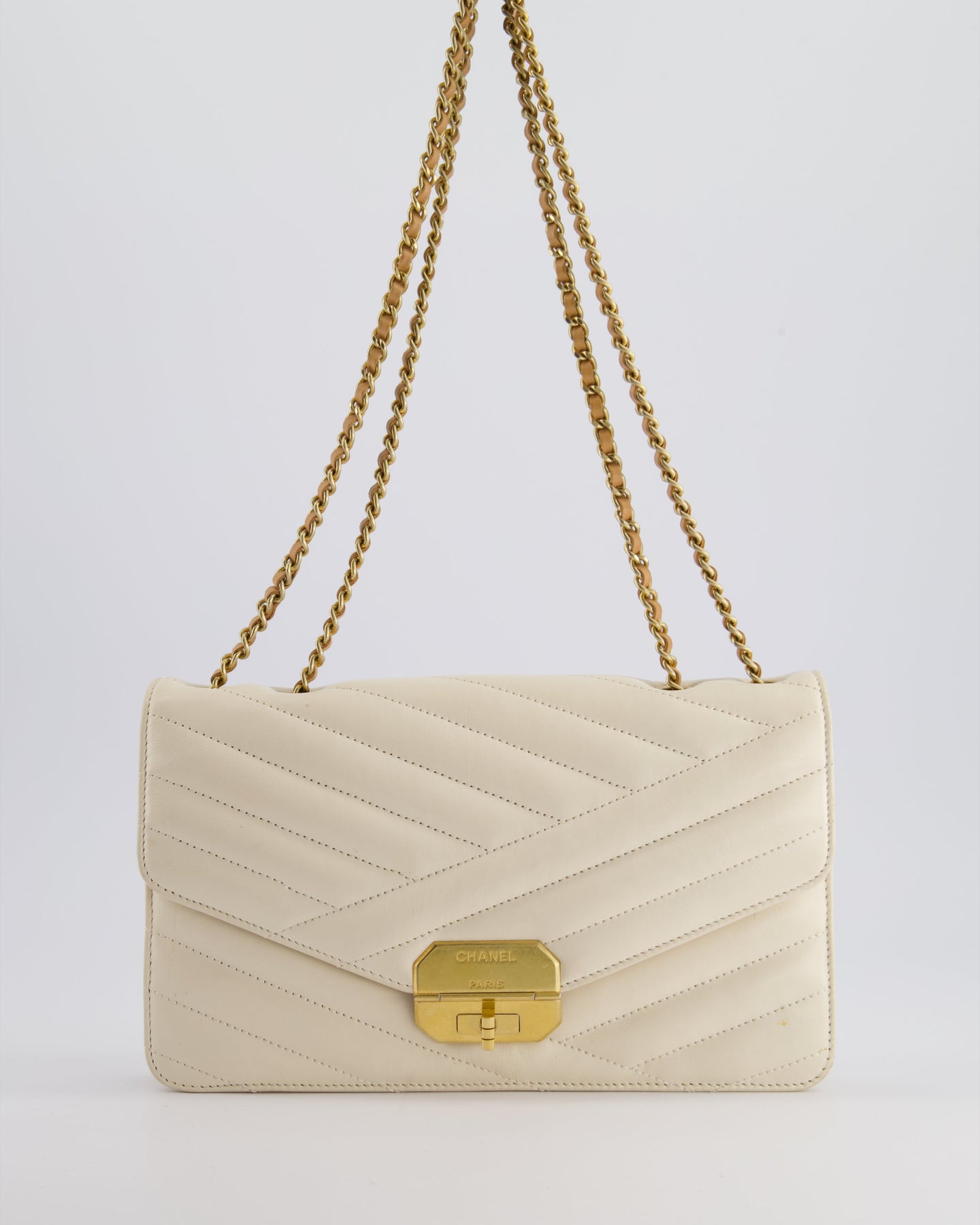 Chanel Cream Gabrielle Quilted Calfskin Bag with Antique Gold Hardware