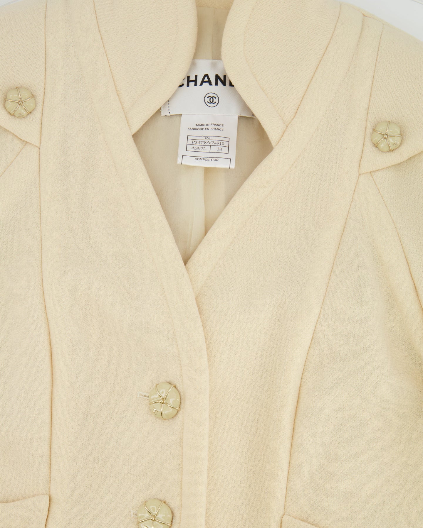 Chanel Cream Wool Jacket with Textured CC Button Details Size FR 38 (UK 10)