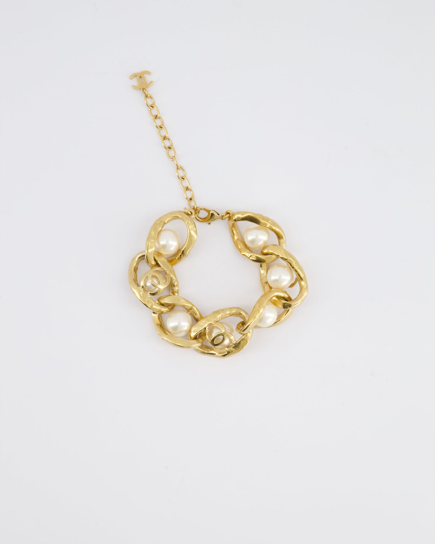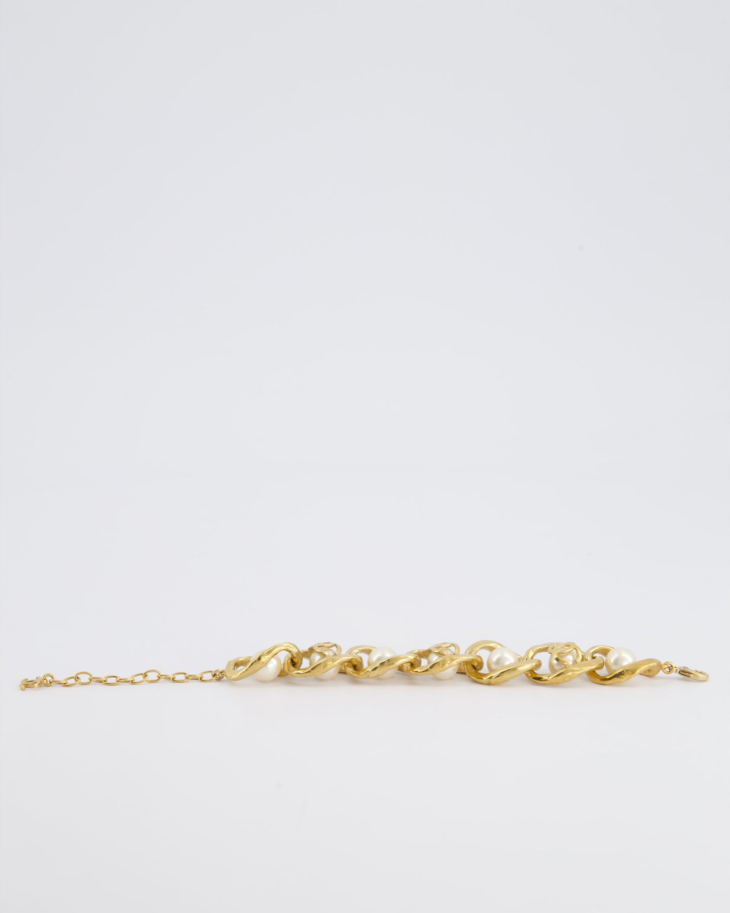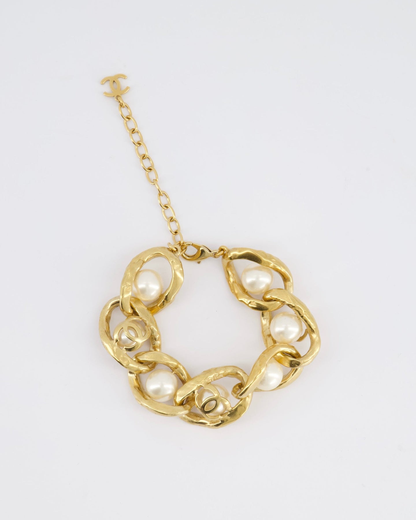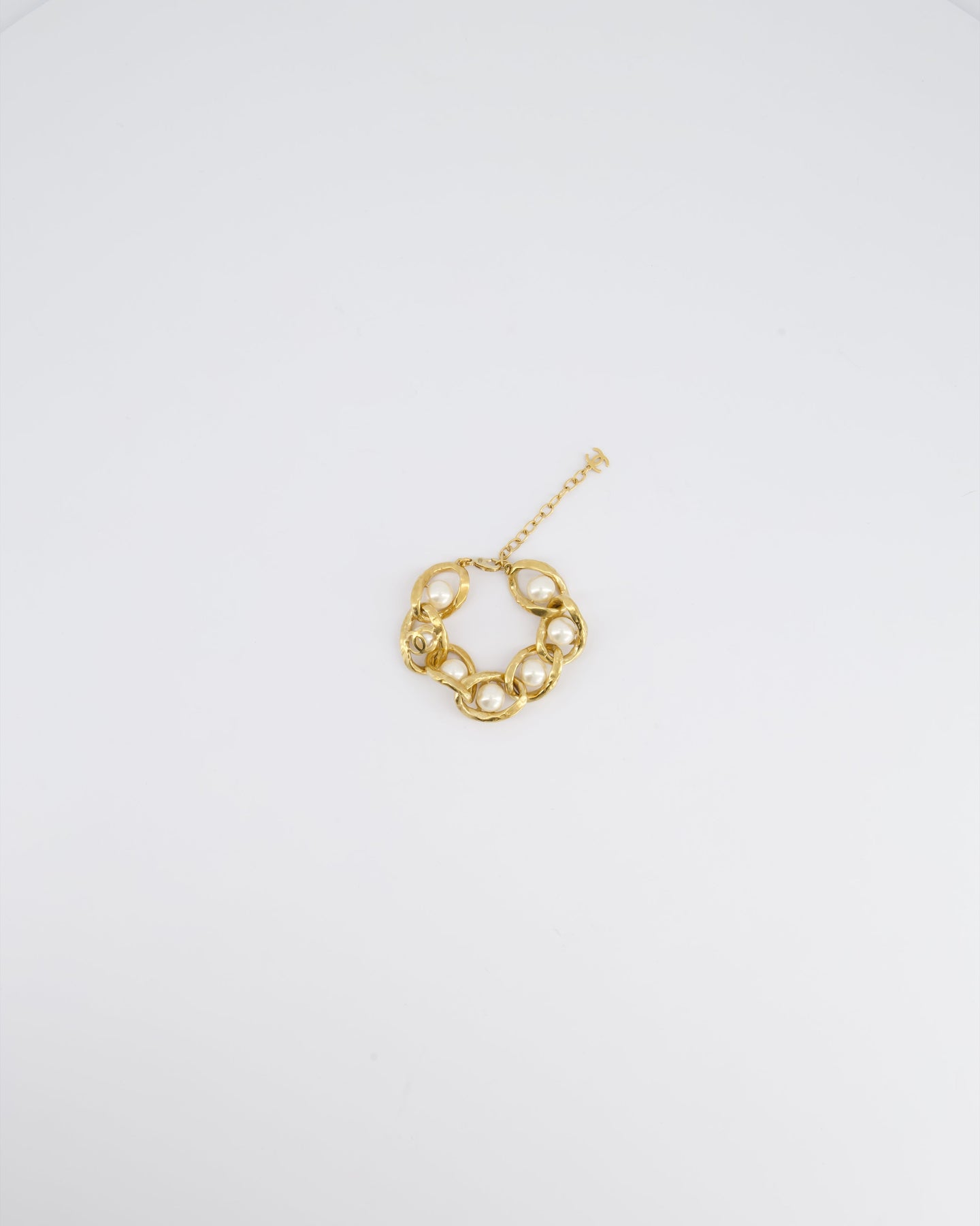 *HOT* Chanel Cruise 2020 Champagne Gold CC Link Bracelet with Pearl Detail