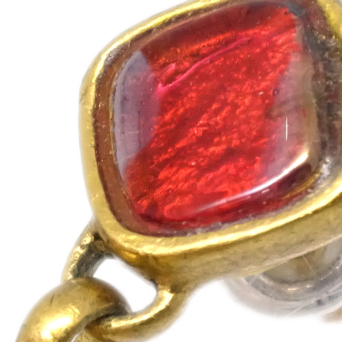 Chanel Dangle Pierced Earrings Gripoix Gold 99A Engraved / Number 99A Size(Inch) W 0.8 x H 1.2 " Size(cm) W 2.0 x H 3.0 cm Color / Material Gold, Red / Gold-plated, Gripoix Accessory - SKU Number 123463 Damage Exterior Very New Condition