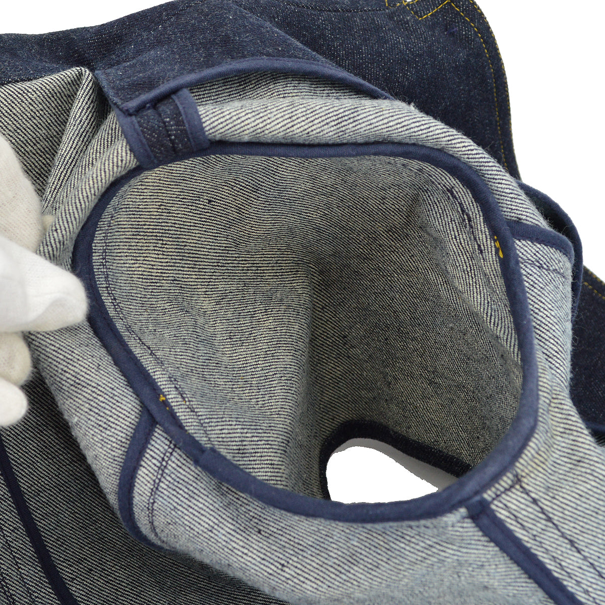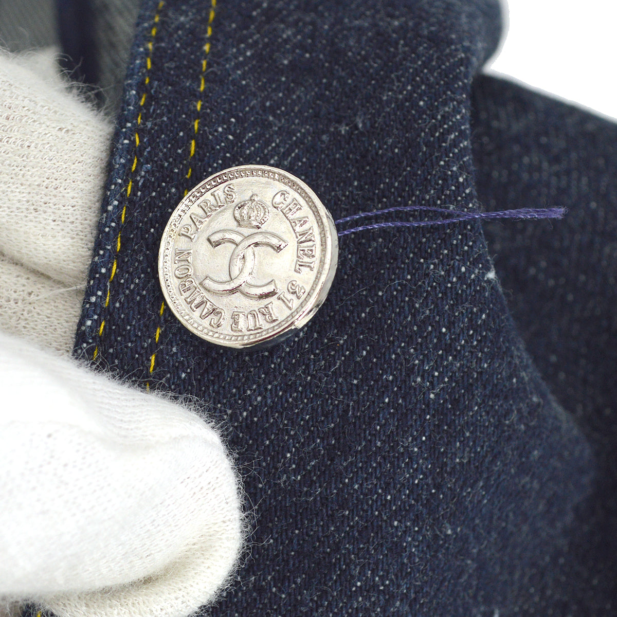 Button has frayed.