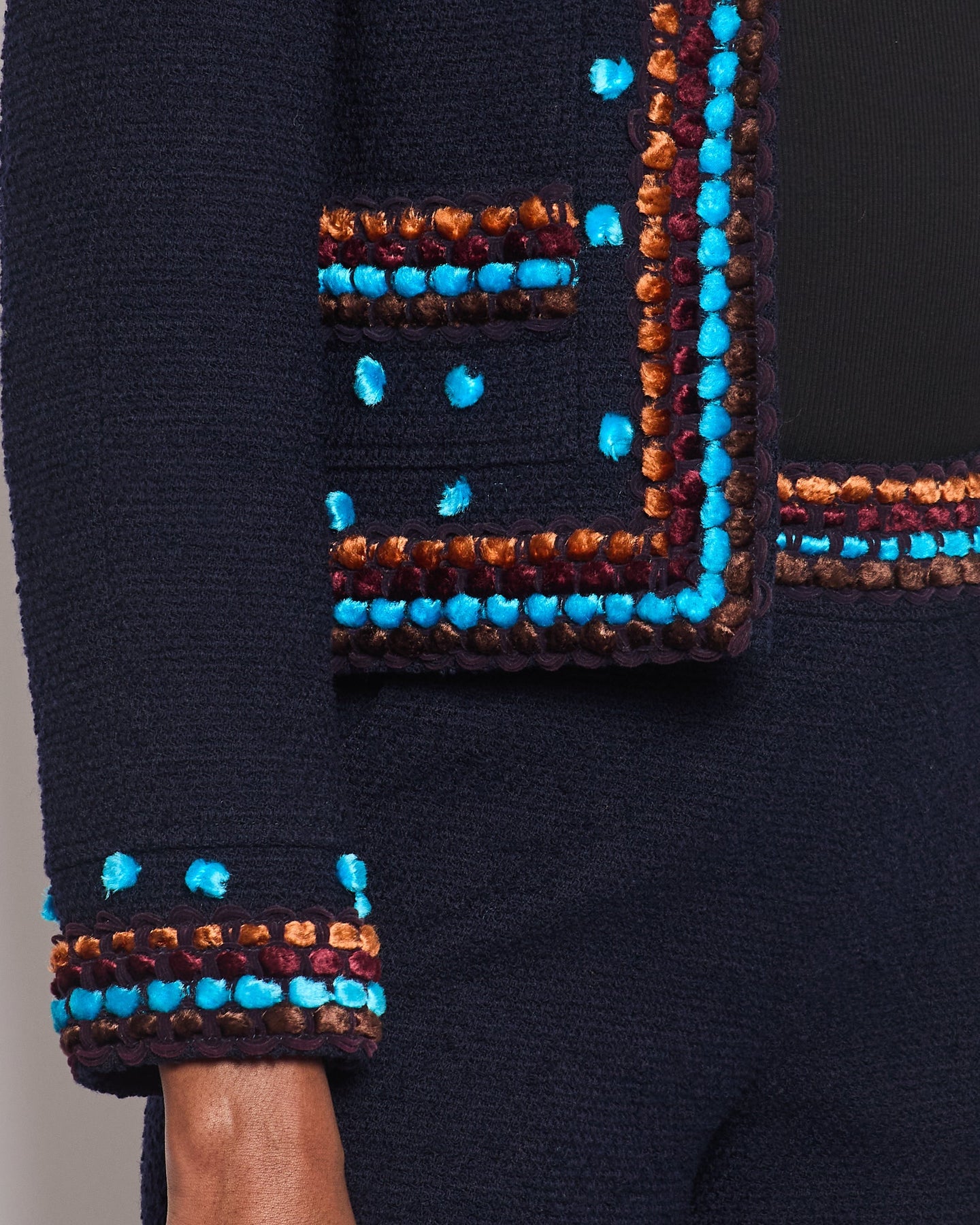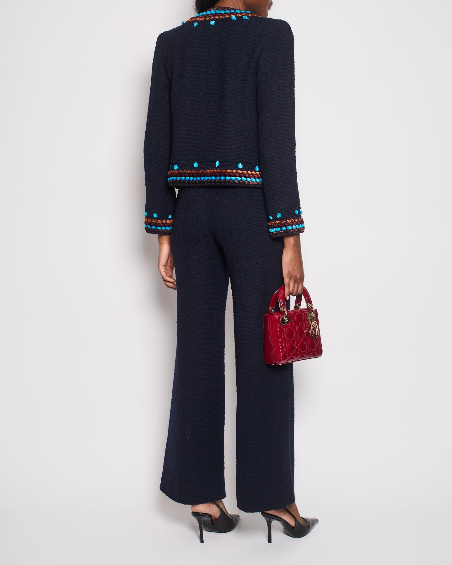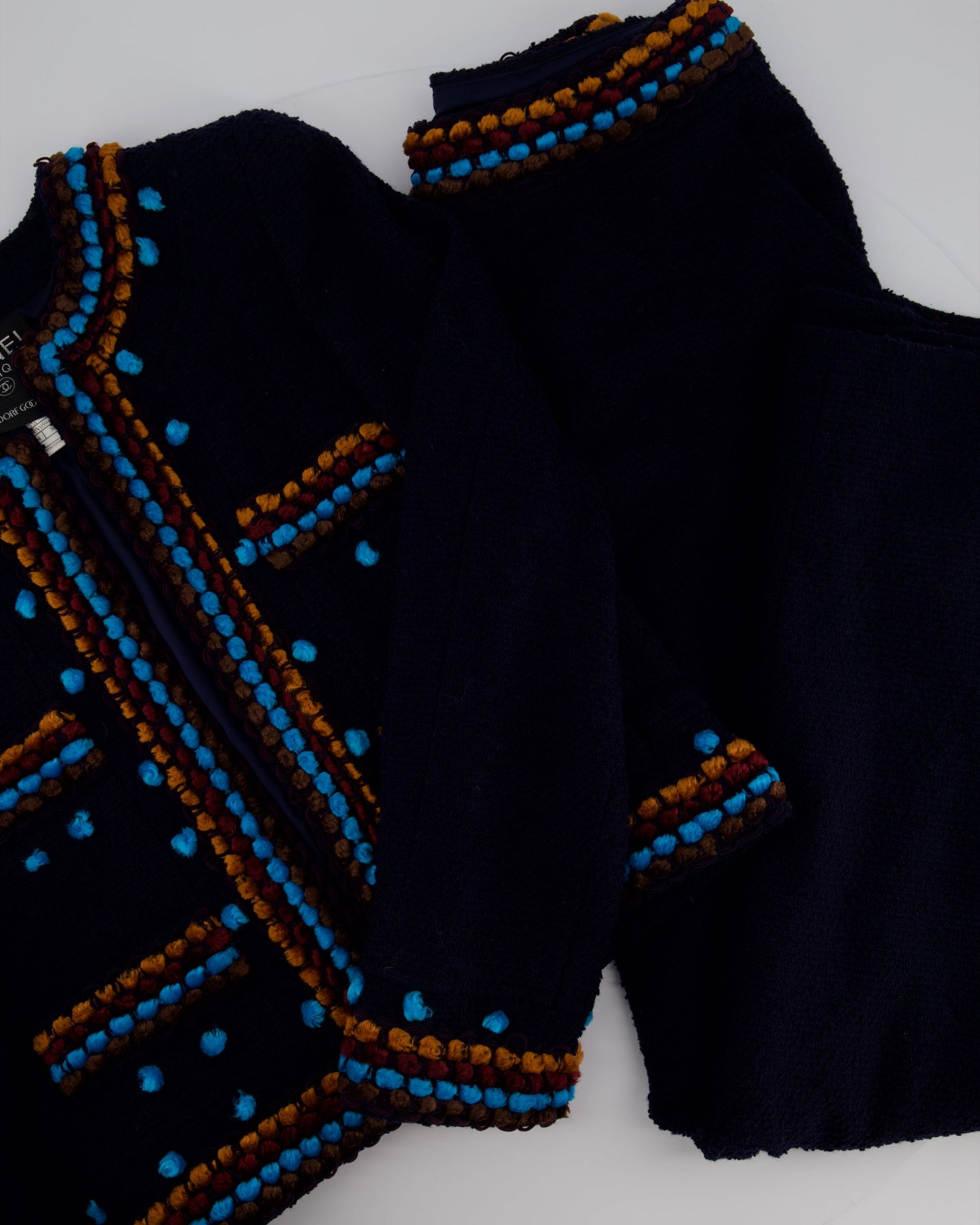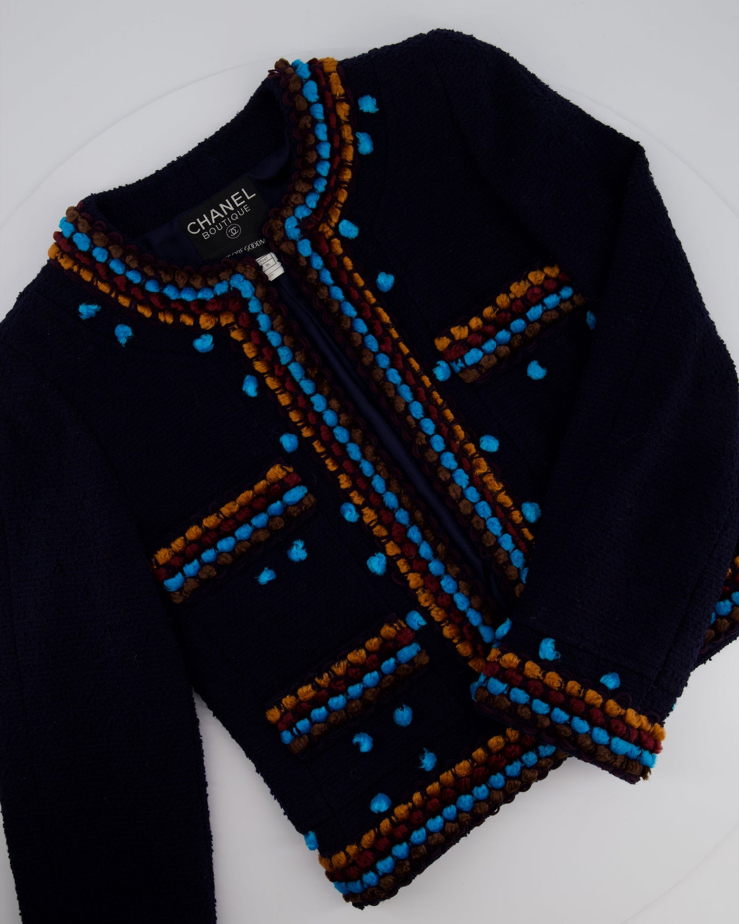 Chanel for Bergdorf Newman AW/97 Navy Boucle Cropped Jacket with Matching Trousers Size FR 36 (UK 8)
