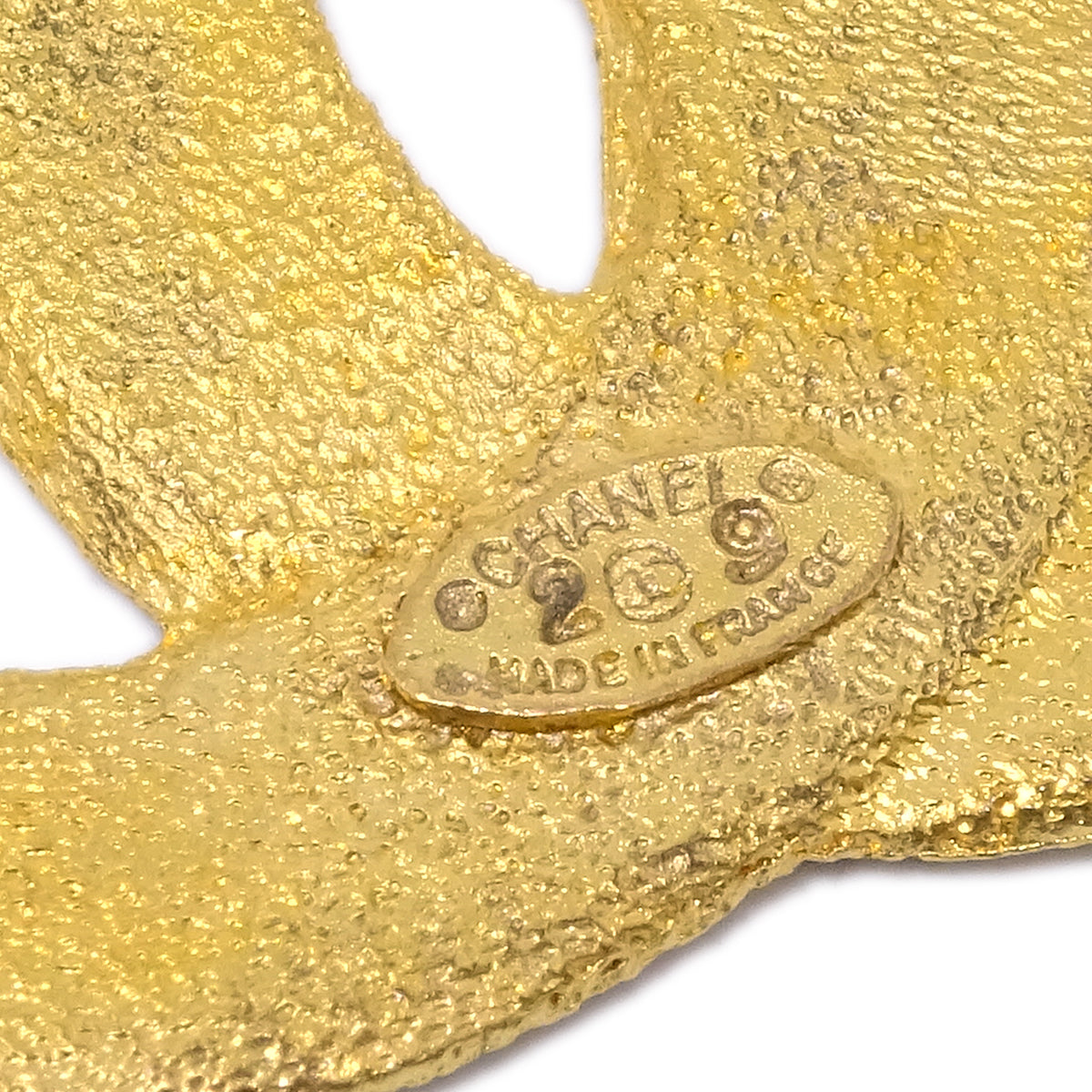 Chanel Gold CC Brooch Pin 29/1265 Engraved / Number 29 / 1265 Size(Inch) W 1.7 x H 1.4 " Size(cm) W 4.3 x H 3.5 cm Color / Material Gold / Gold plated Accessory - SKU Number 142750 Damage Exterior New condition