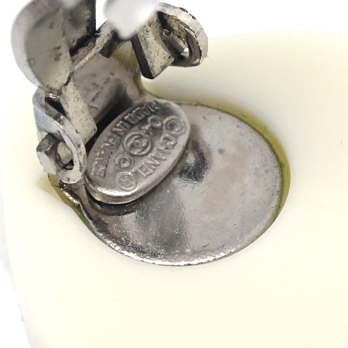 Chanel Earrings Clip-On White 04C Engraved / Number 04C Size(Inch) W 0.7 " x H 0.5 " Size(cm) W 1.7 x H 1.2 cm Color / Material Silver, White / Silver Plated, Acrylic Accessory - SKU Number 142738 Damage Exterior Fair Condition
