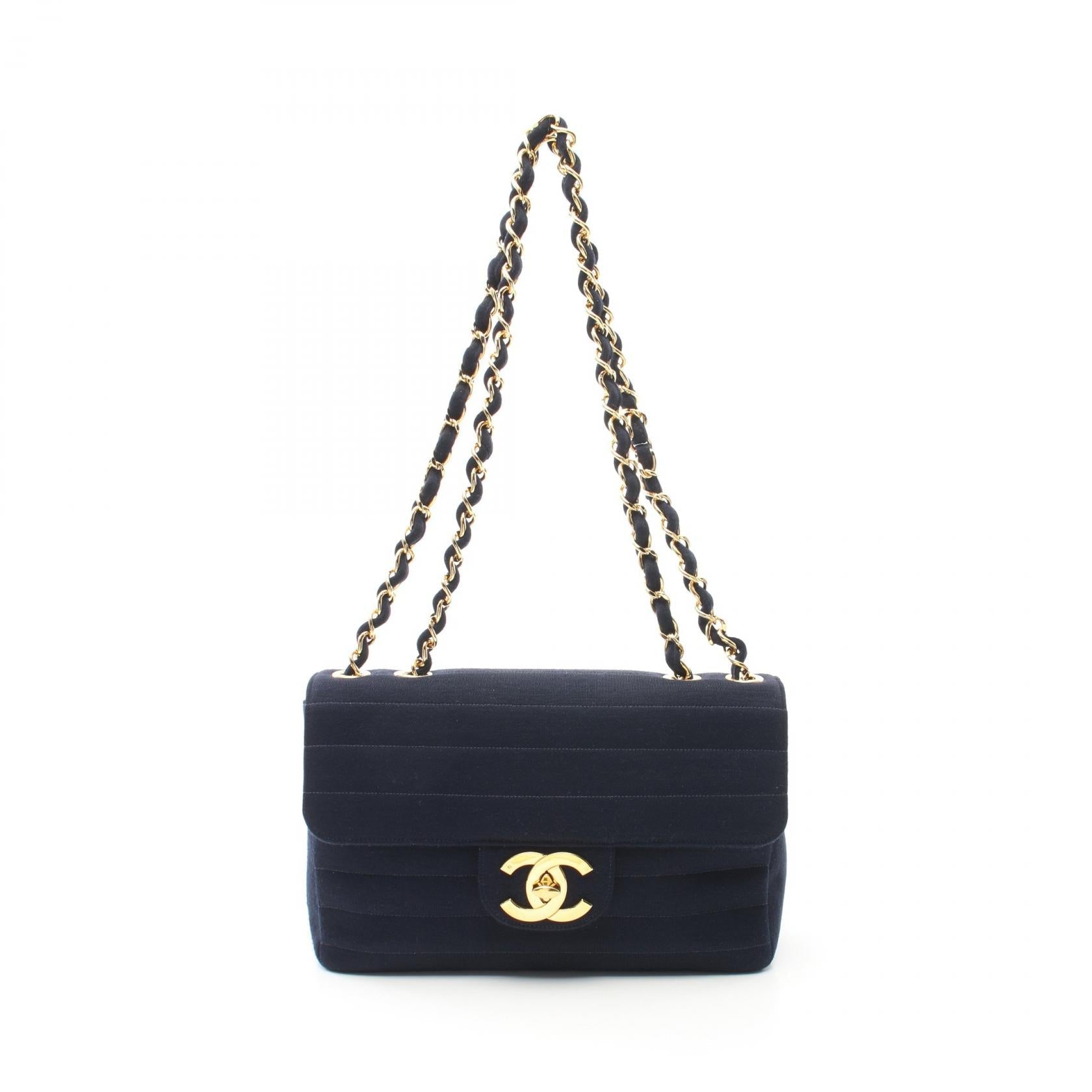 Item name : Chanel Jersey Shoulder Bag Navy