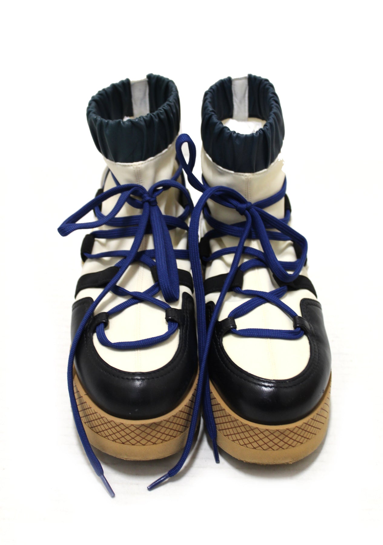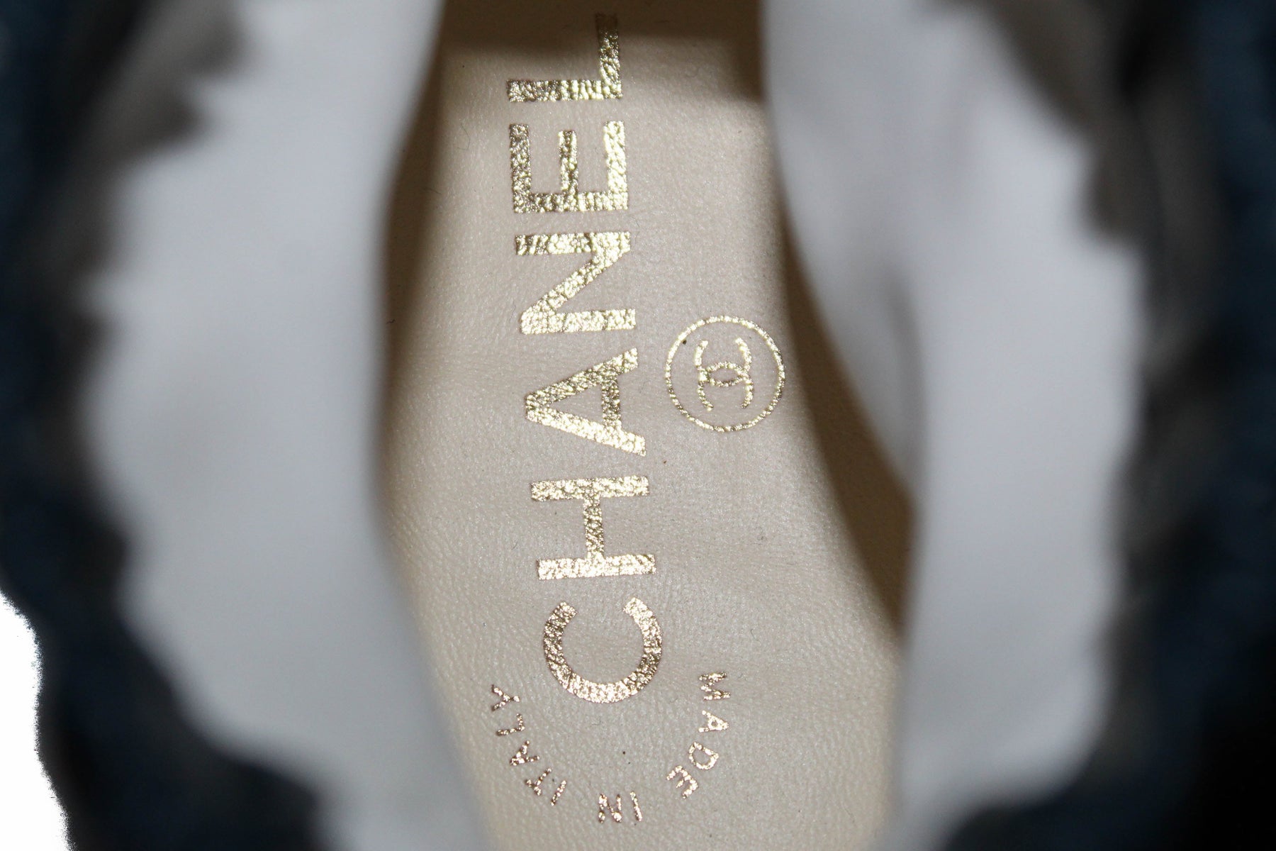 Chanel Lambskin & Mixed Fibers Ivory, Rose, Blue & Black Lace Up Platform Size 35.5 C