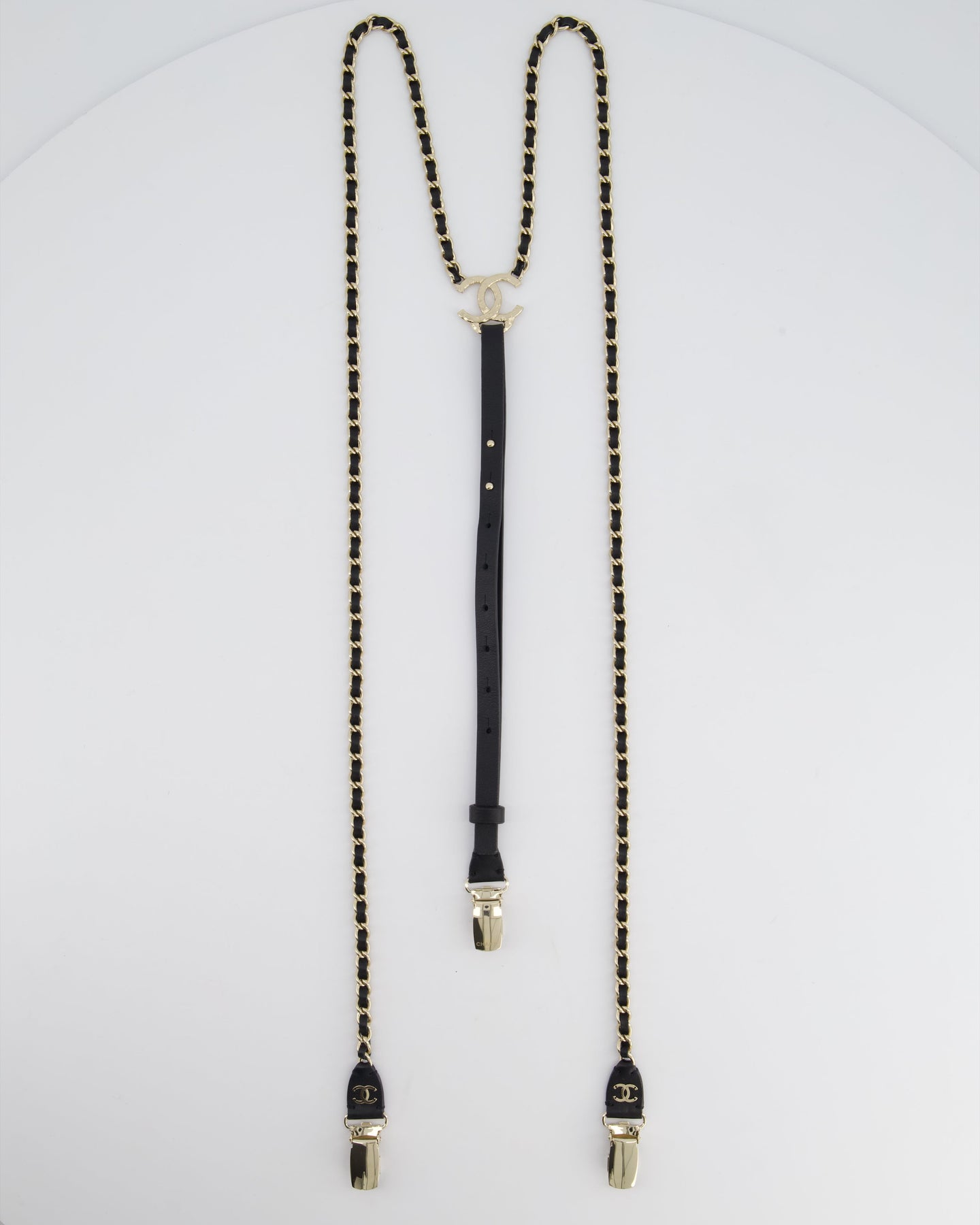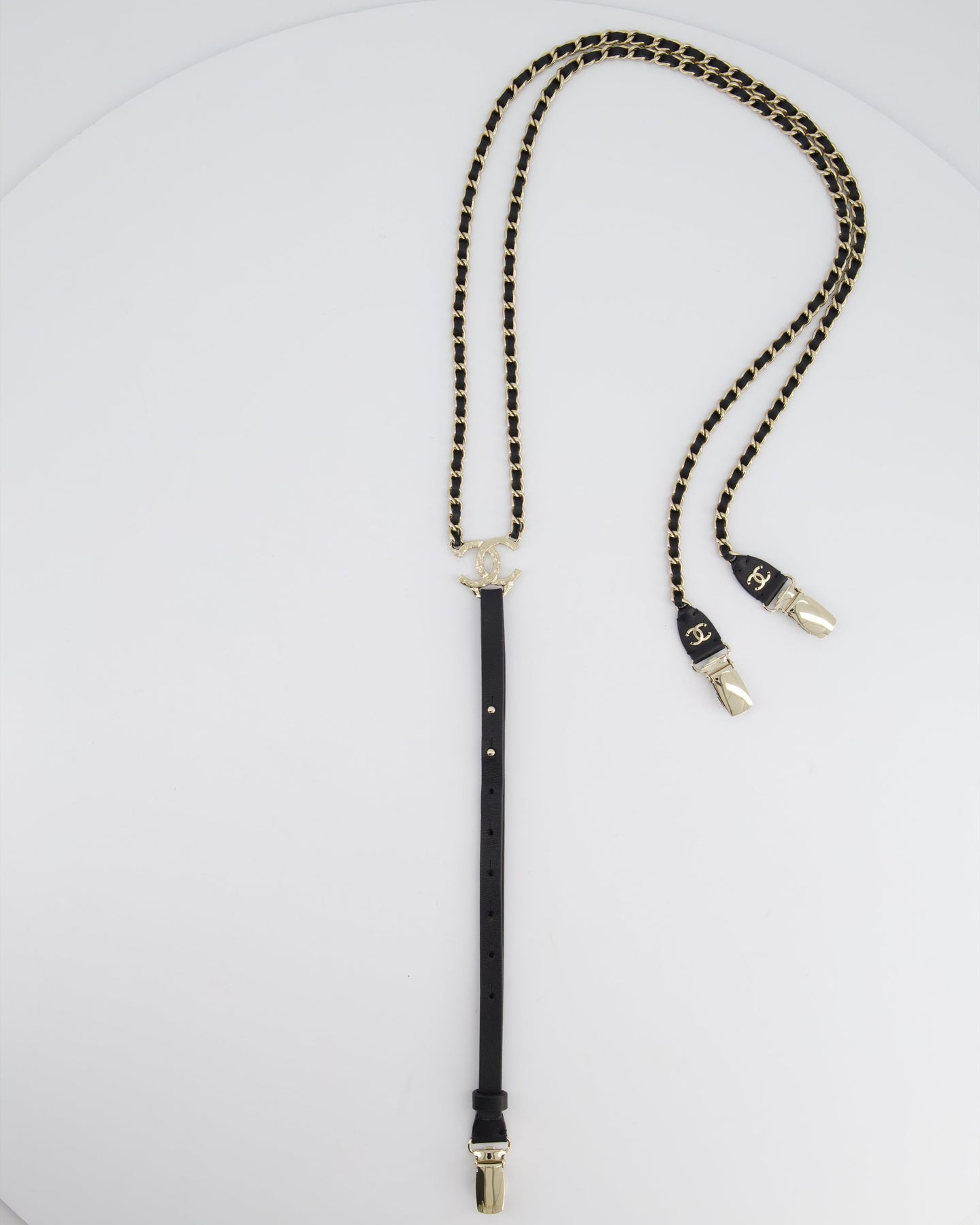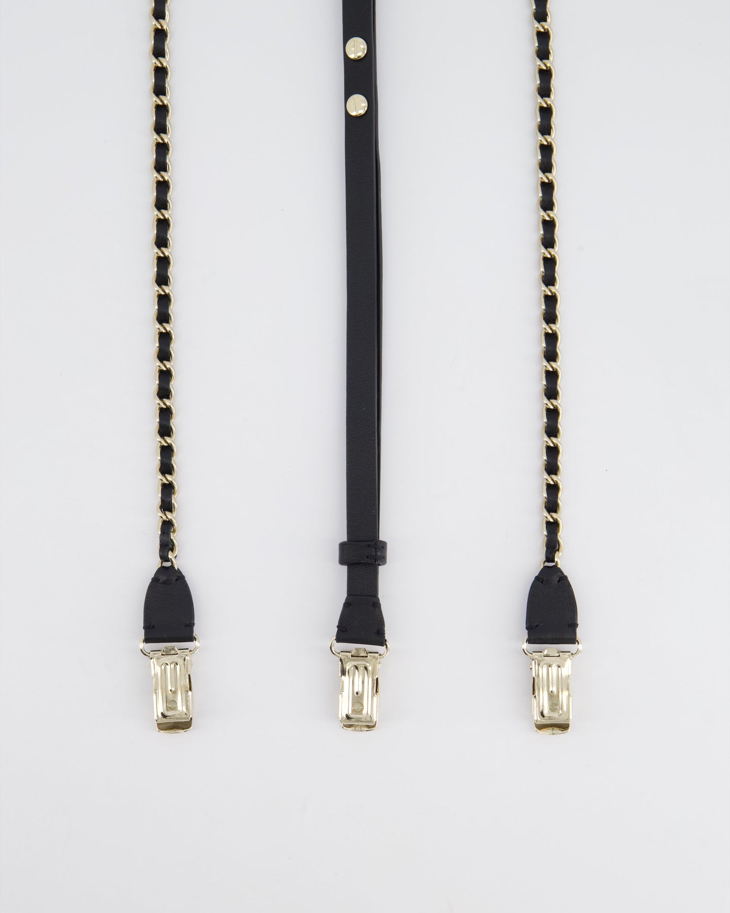 Chanel Leather and Silver Chain Suspenders With CC Logo Detail